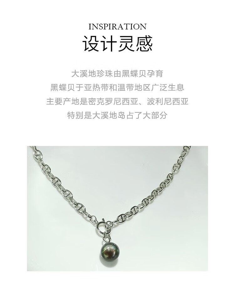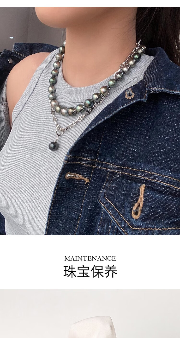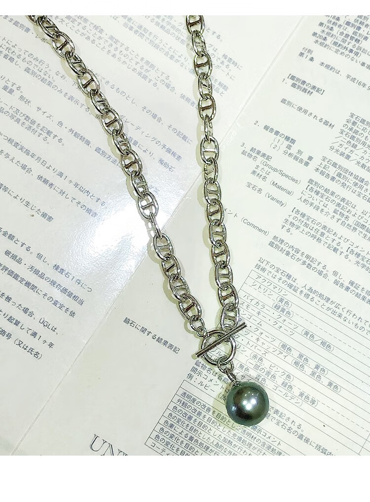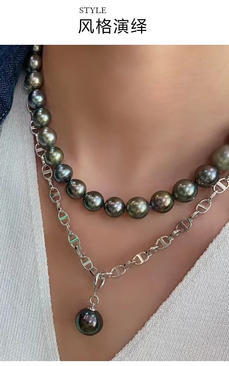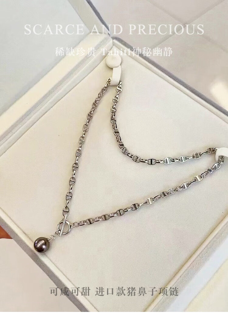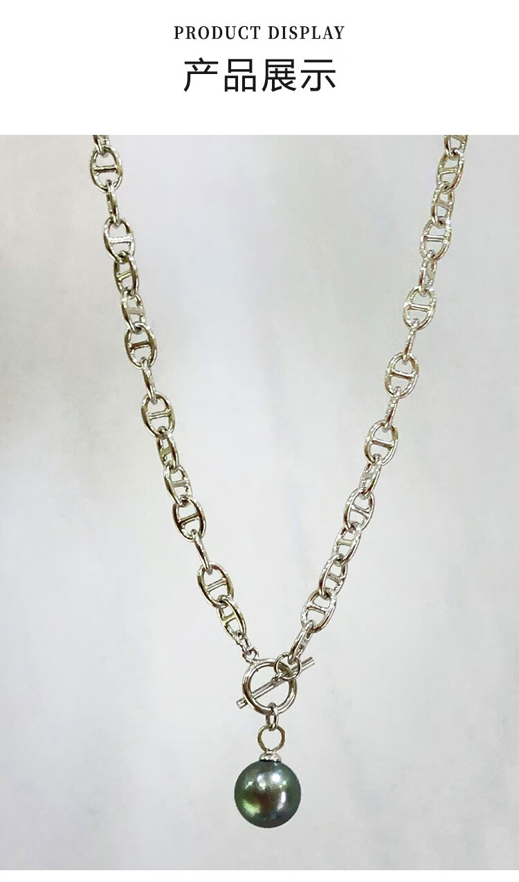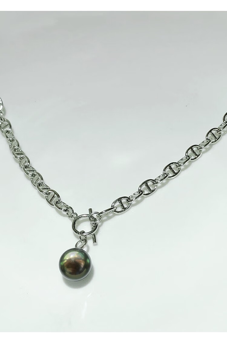 Green Pig Nose Necklace Natural Tahitian Black Pearl Bracelet Sweater Chain Round Strong Light Imported Pendant Lock Bracelet 11-12mm