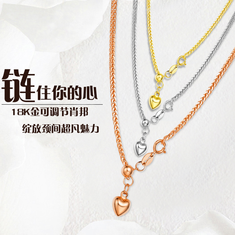 An Feng choose the right color 18K gold necklace for women Au750 love adjustable Chopin color gold sweater chain 18K gold white adjustment 2.7g ~ 2.75g (about 1.3mm thick 50cm