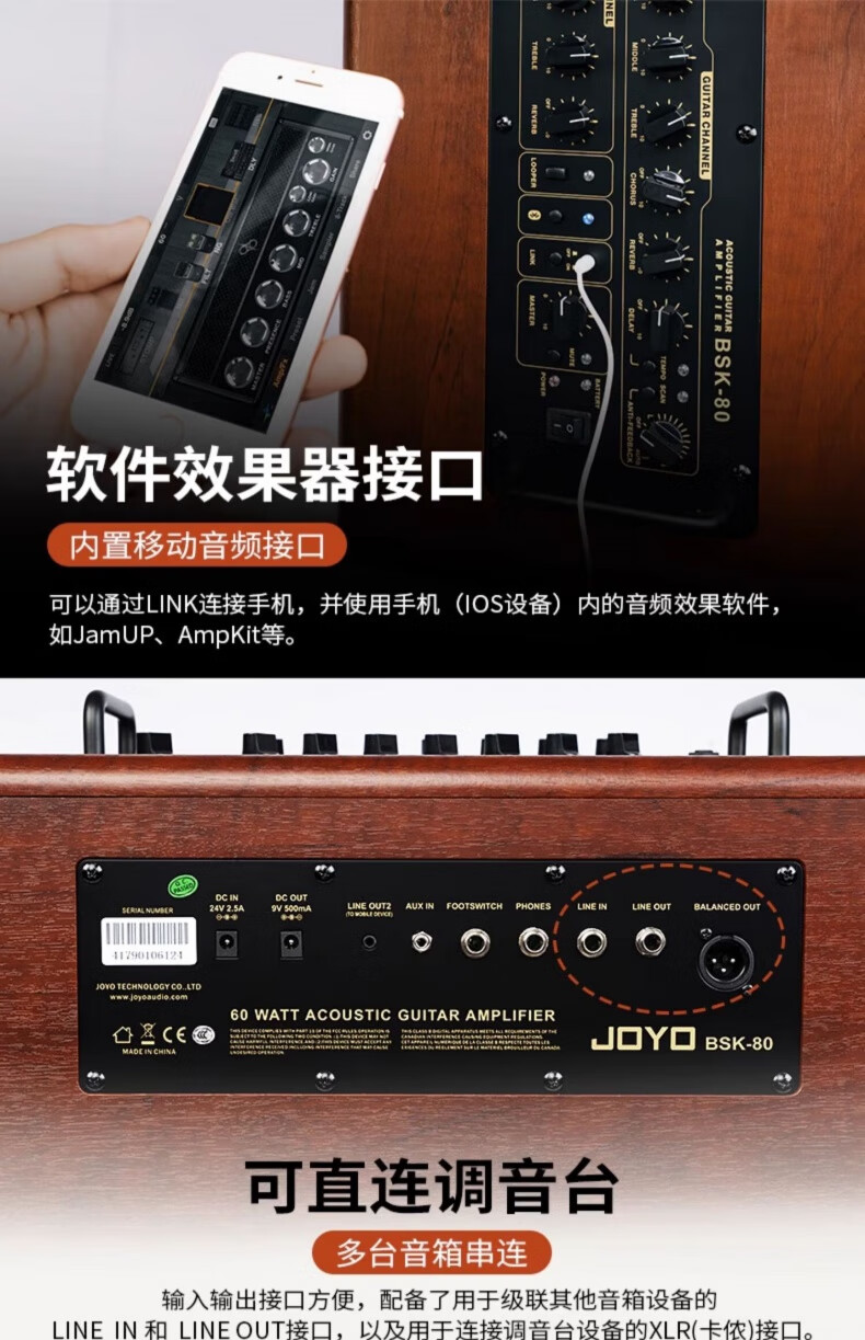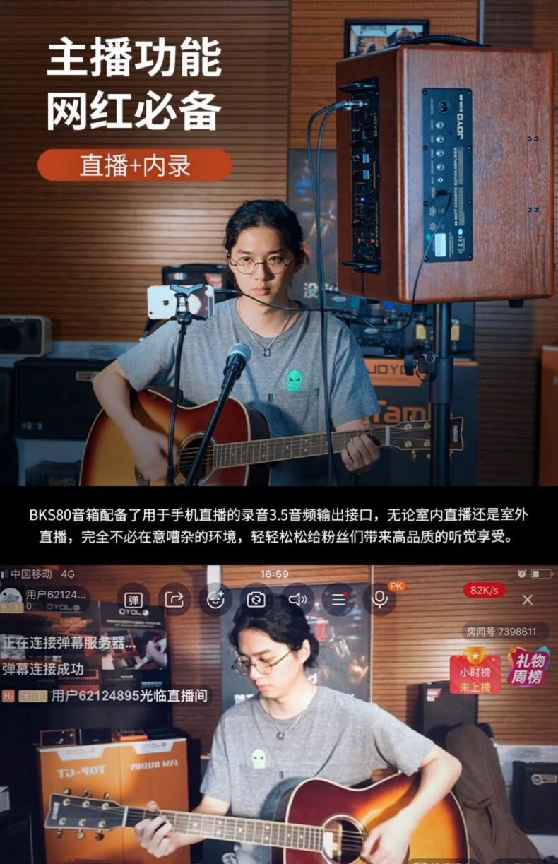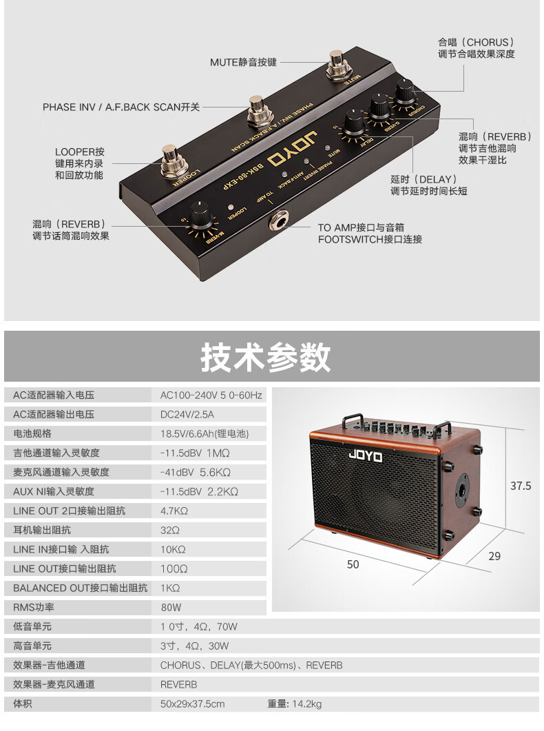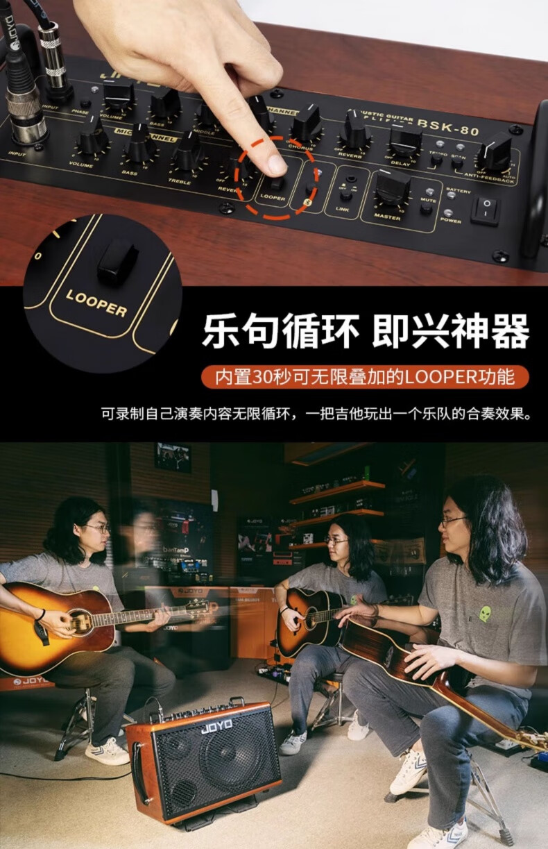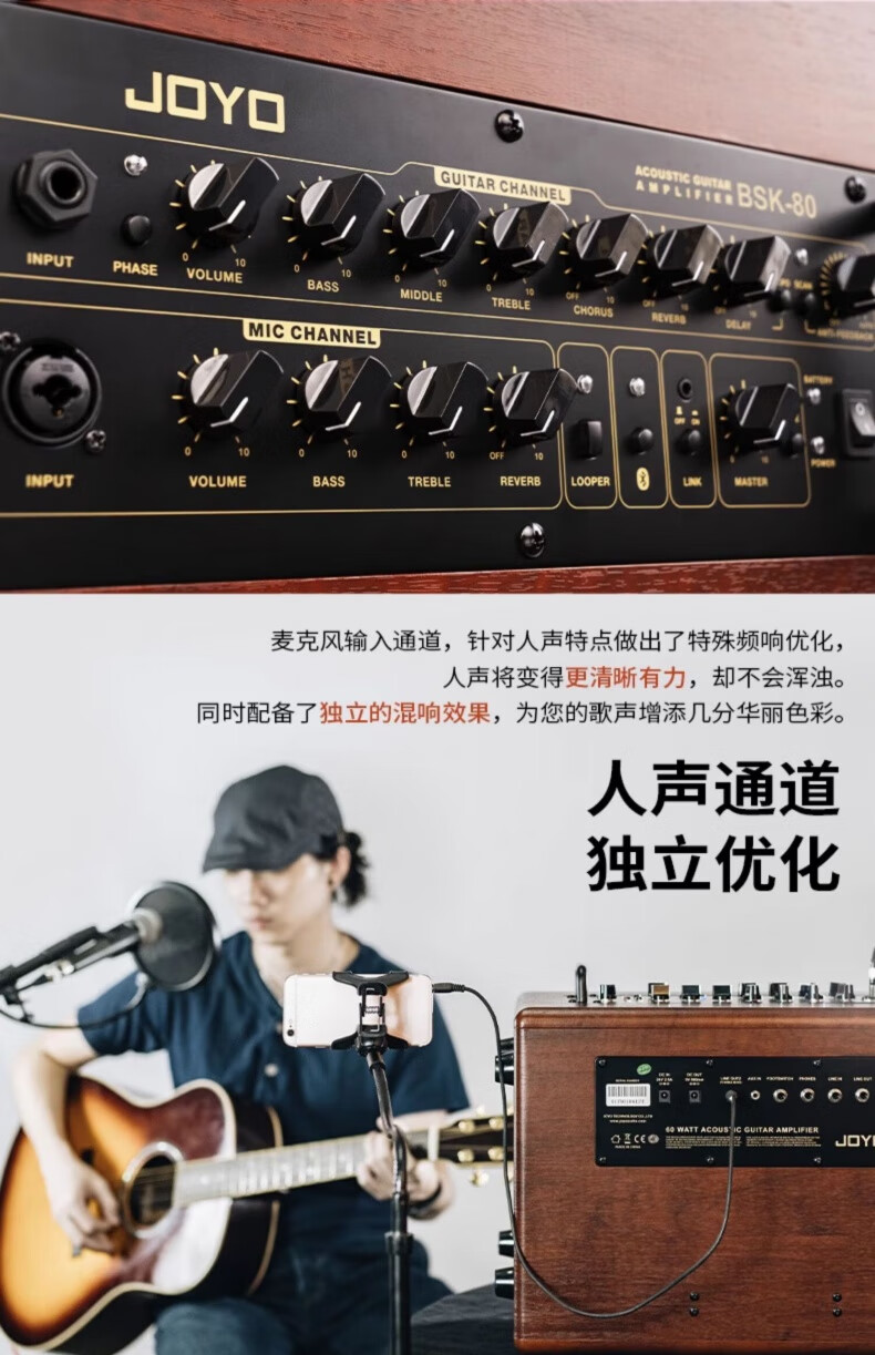 JOYO BSK-80 electric acoustic guitar singing speaker bass electric blowpipe folk music general live outdoor audio BSK-80+DM-03 one-to-two wireless microphone