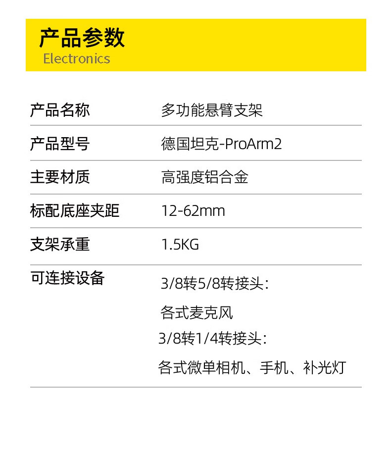 German tank-specific microphone cantilever bracket live recording studio desktop universal ceiling mic telescopic stand cool black