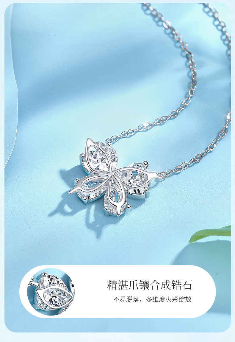 Lao Fengxiang ice crystal butterfly sterling silver necklace women's niche high-end jewelry wedding anniversary gift for girlfriend and wife ice crystal butterfly set chain-brand gift box