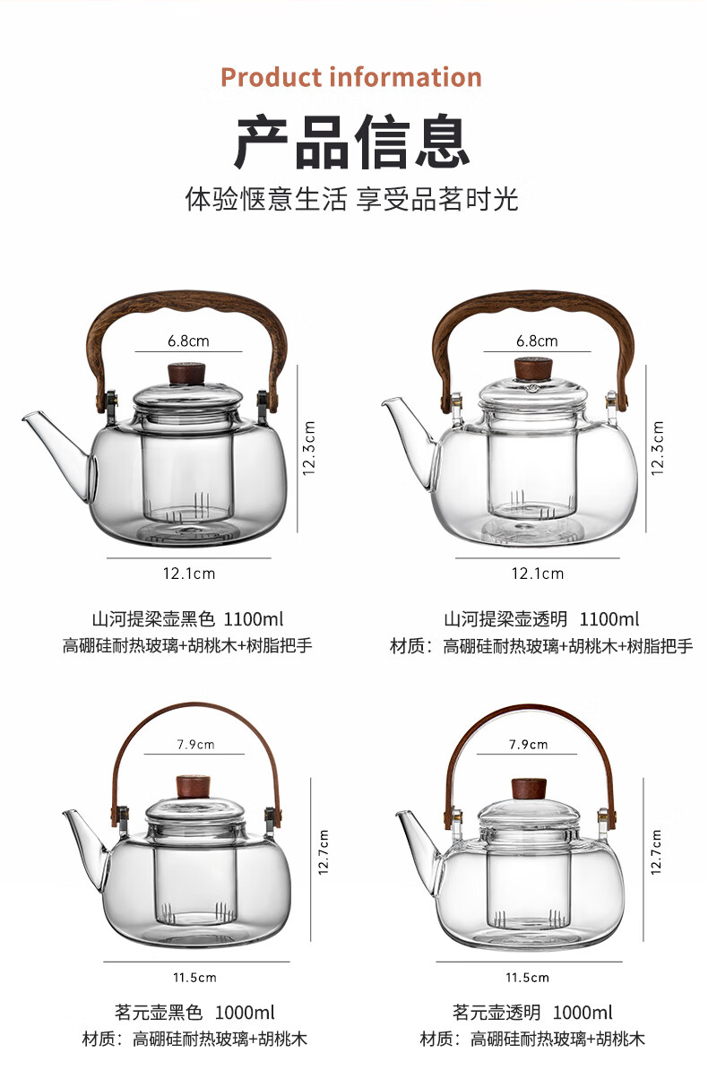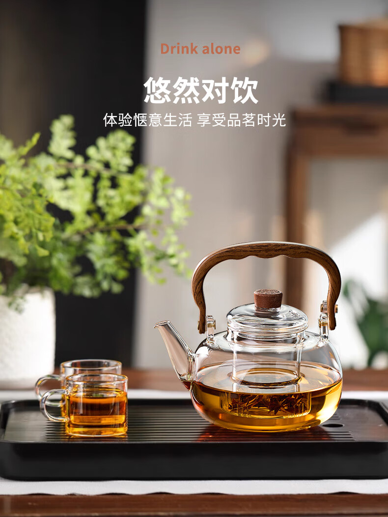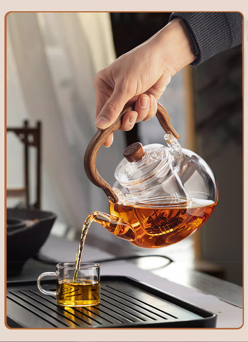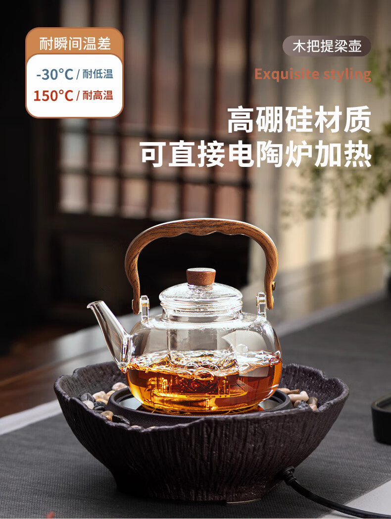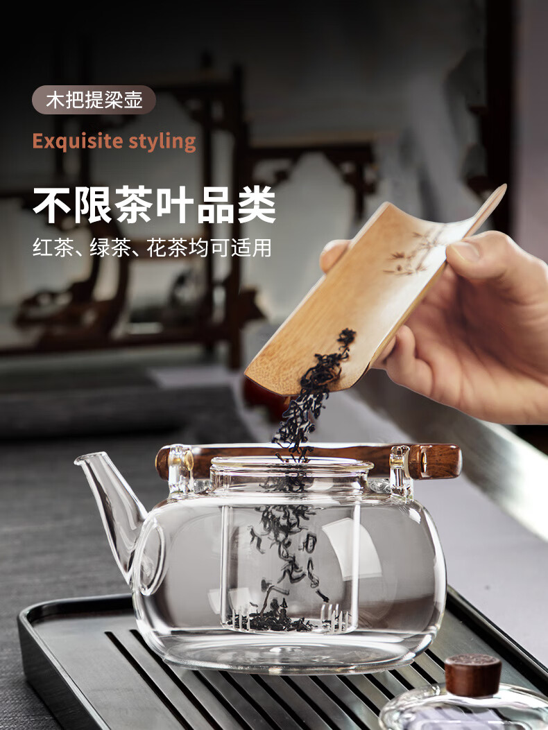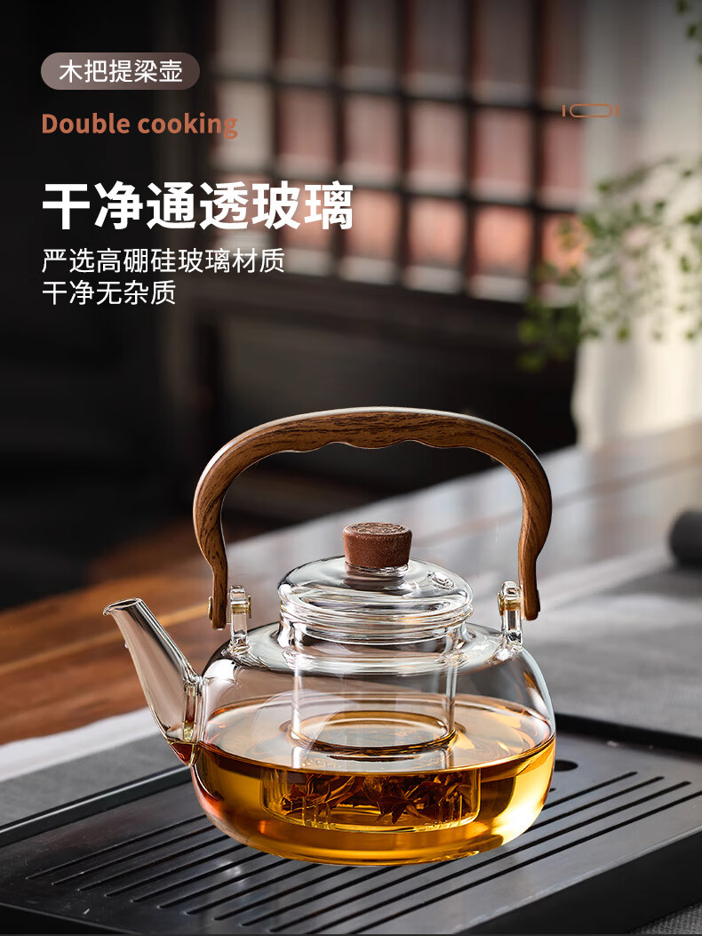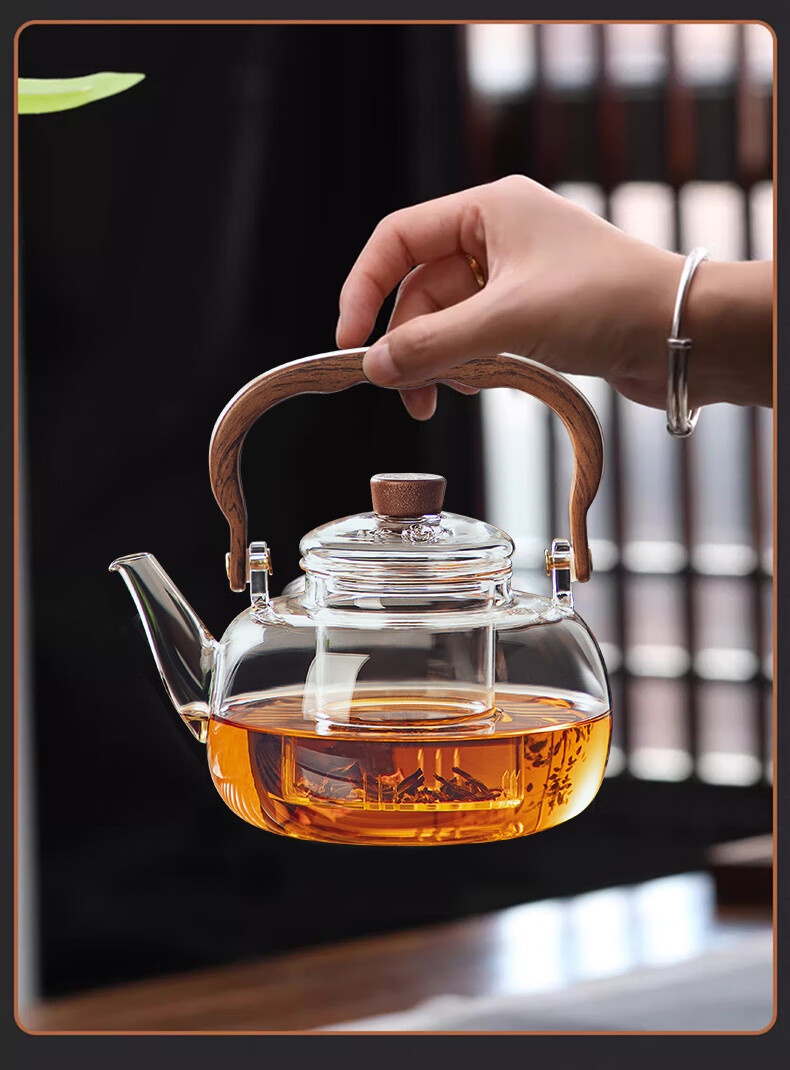 YIHUTEA Teapot Glass Tea Kettle Tea Maker Large Capacity High Borosilicate Glass Kettle Electric Ceramic Stove Tea Water Separator Kettle Thickened Lift Shanhe Kettle - Transparent 1100ml