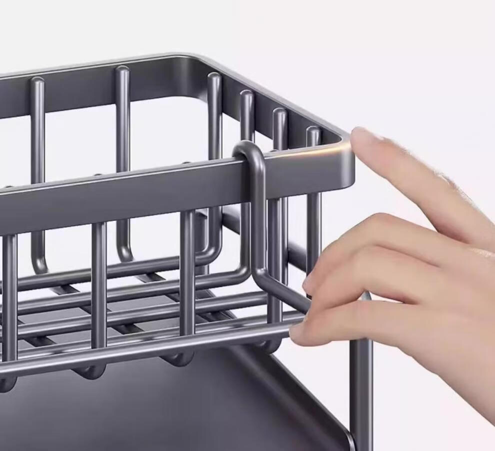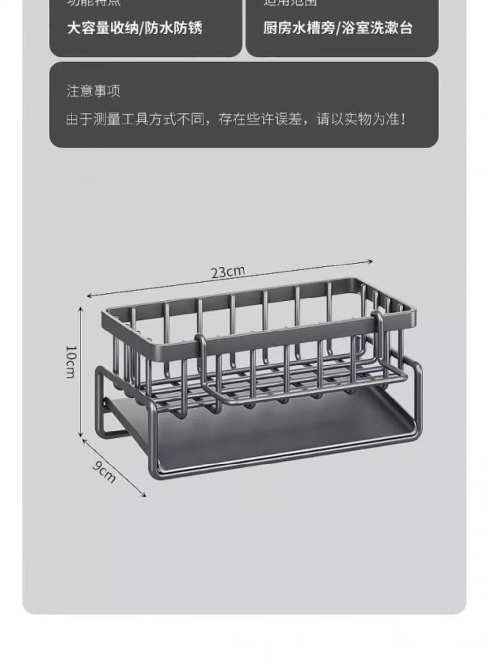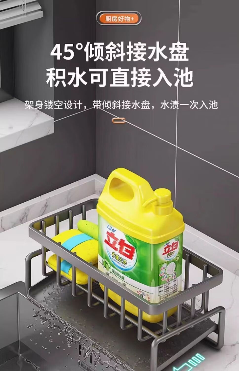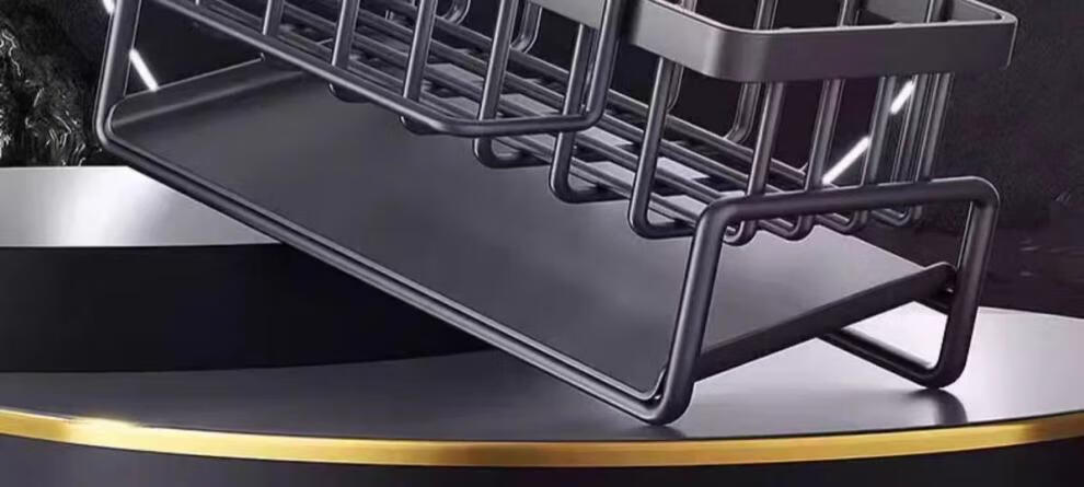 Yunmian kitchen rag drain pool storage rack artifact kitchen drain rack dishwashing liquid wire storage rack upgraded with rod model gun gray + with slope drain