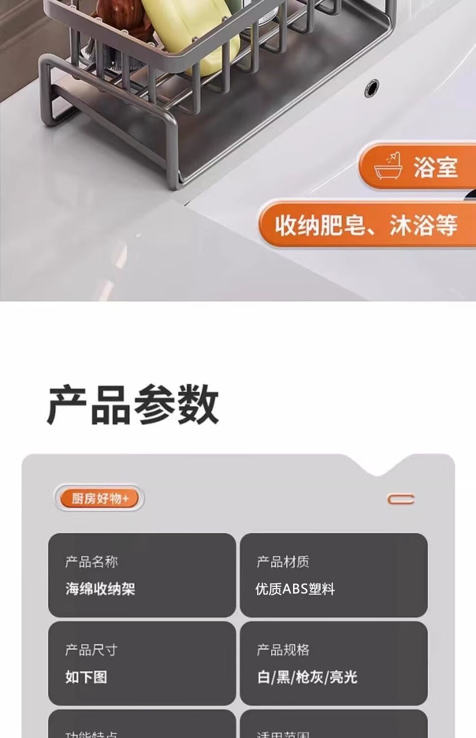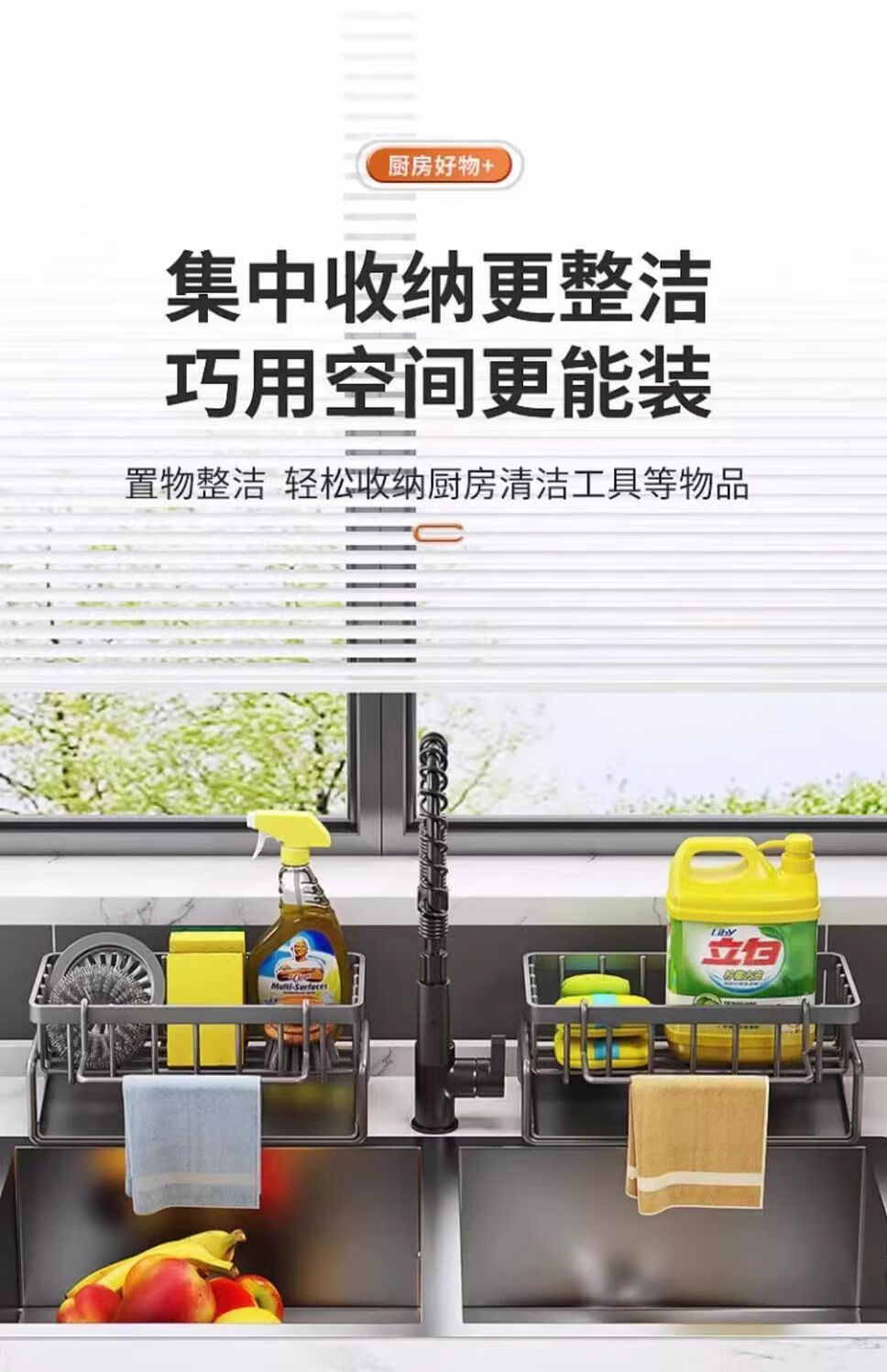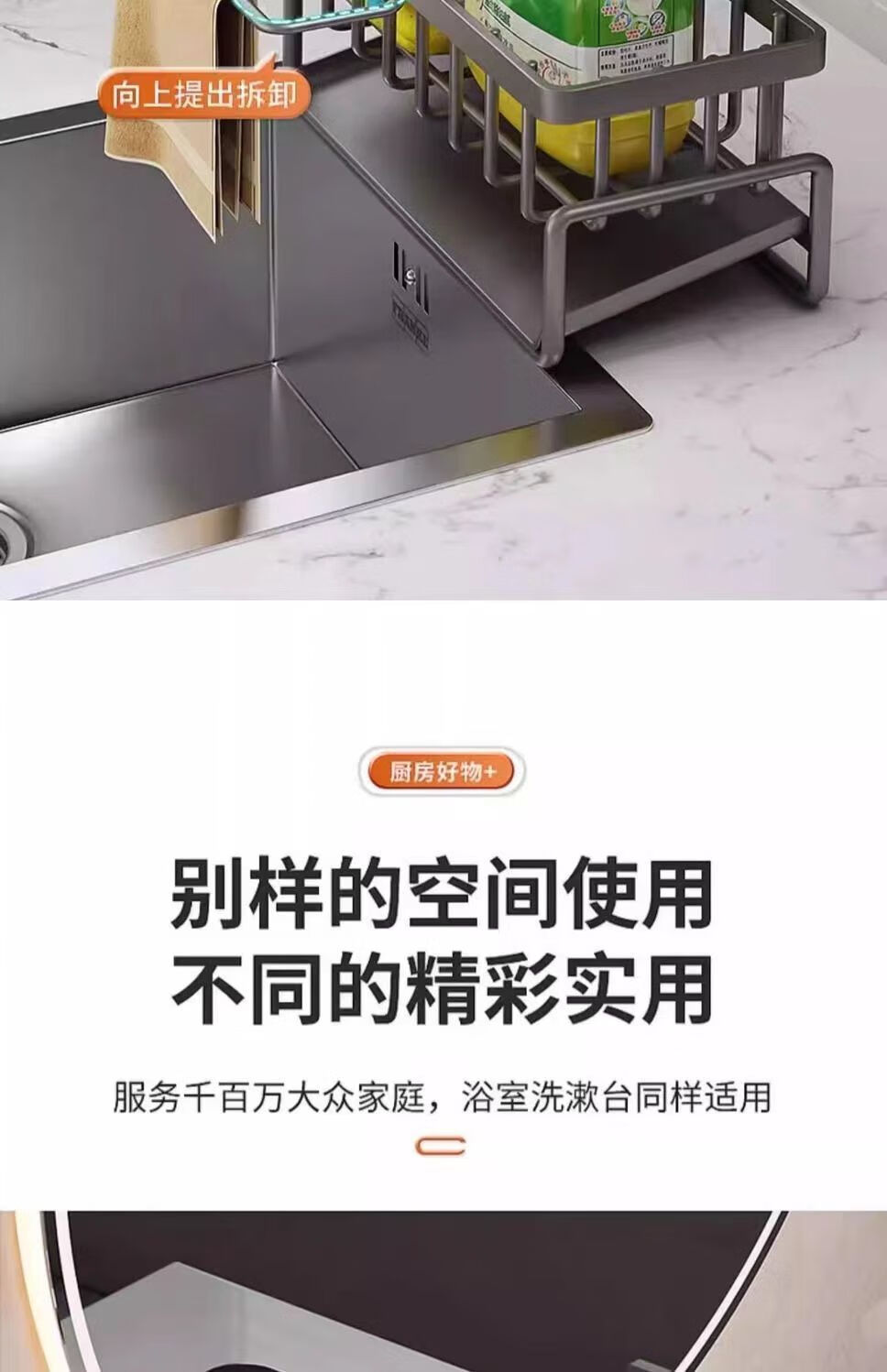 Yunmian kitchen rag drain pool storage rack artifact kitchen drain rack dishwashing liquid wire storage rack upgraded with rod model gun gray + with slope drain