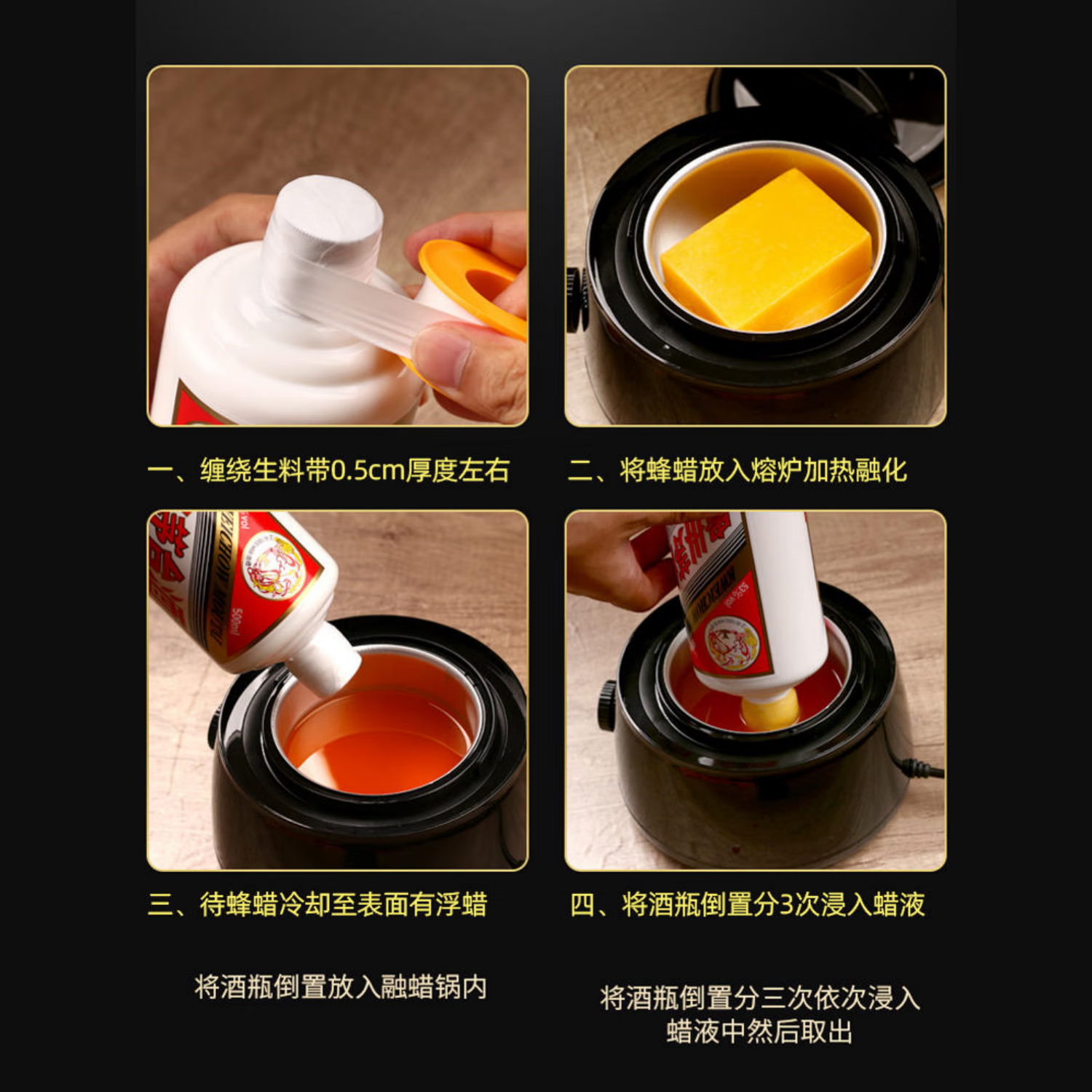 Aoyanlai wine jar Moutai anti-wine escape bottle sealing film sealing wax sealing wine flying bottle sealing special set wine sealing device 100 grams of beeswax + 2 rolls of raw material tape + wine bottle film 10
