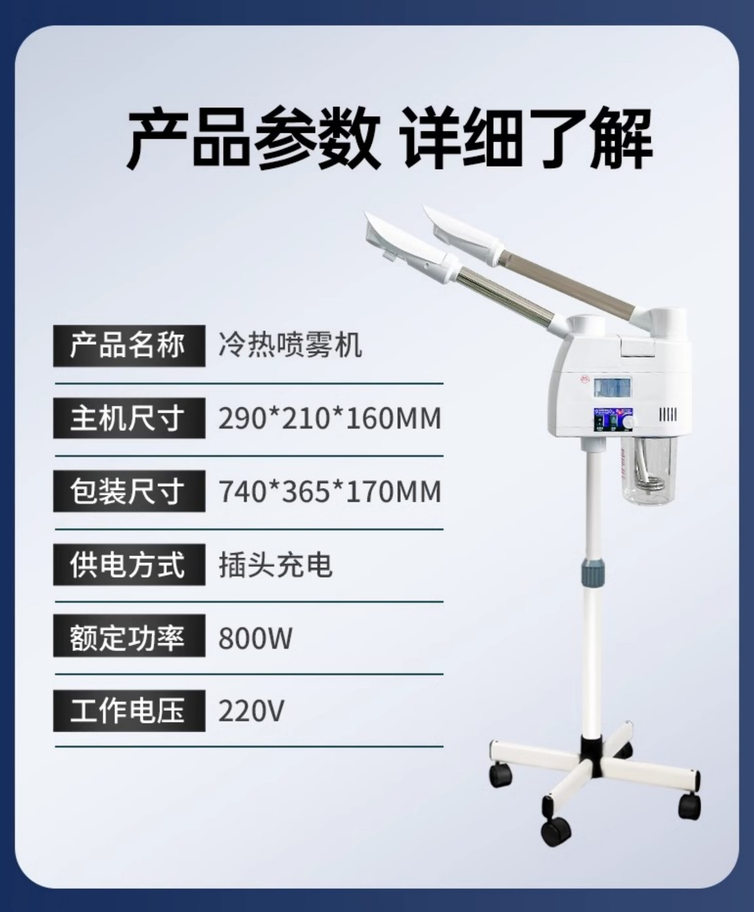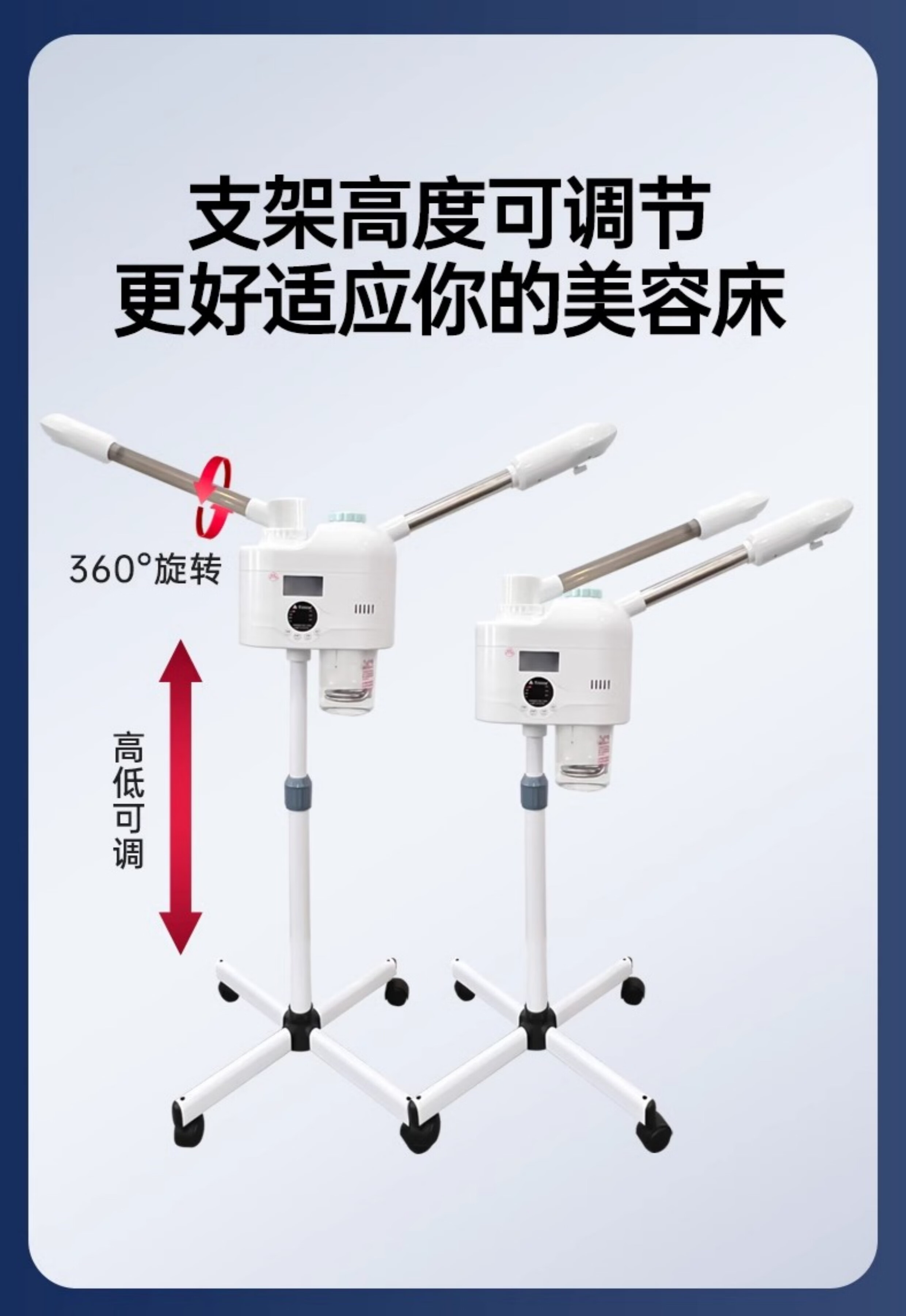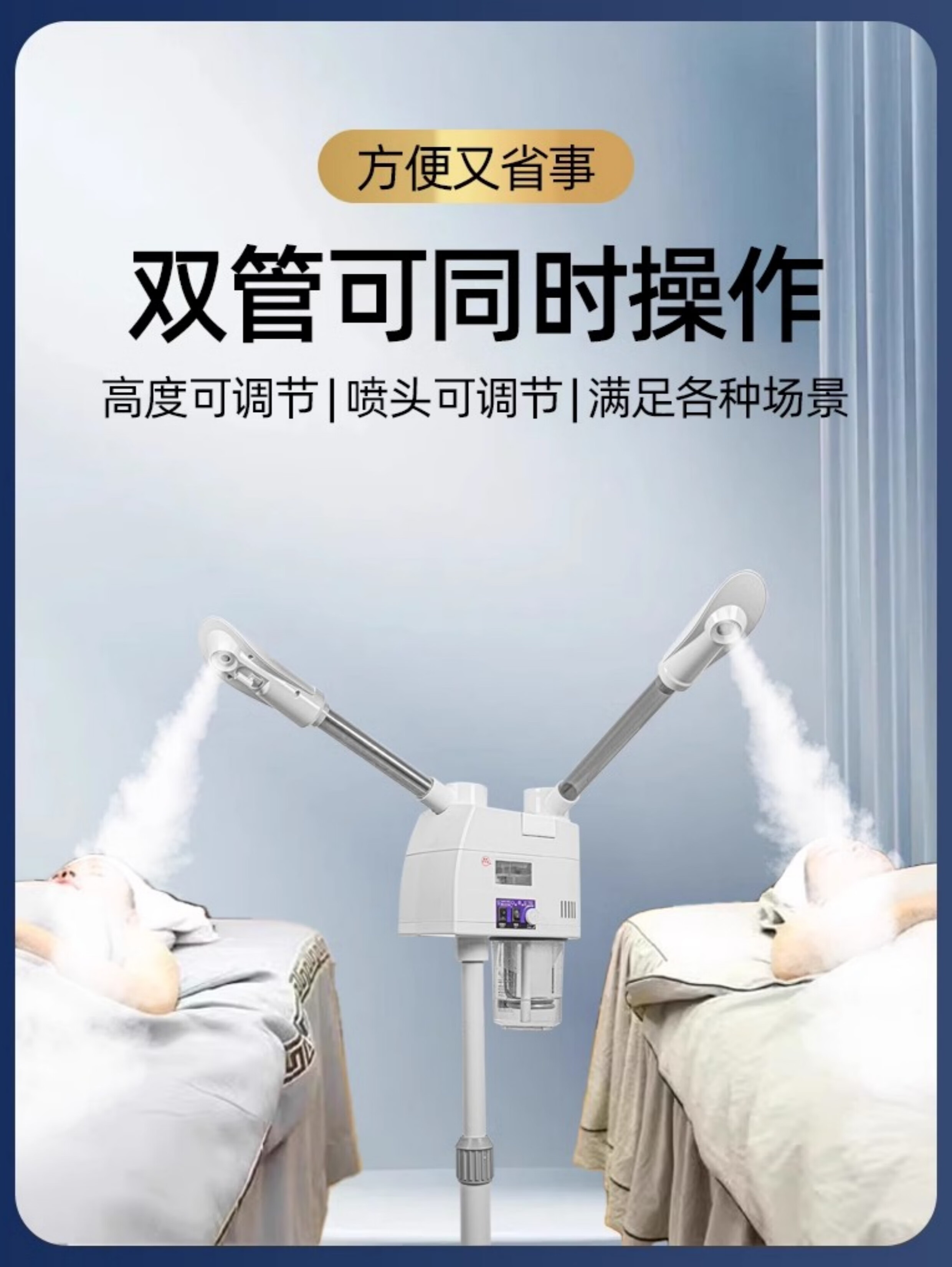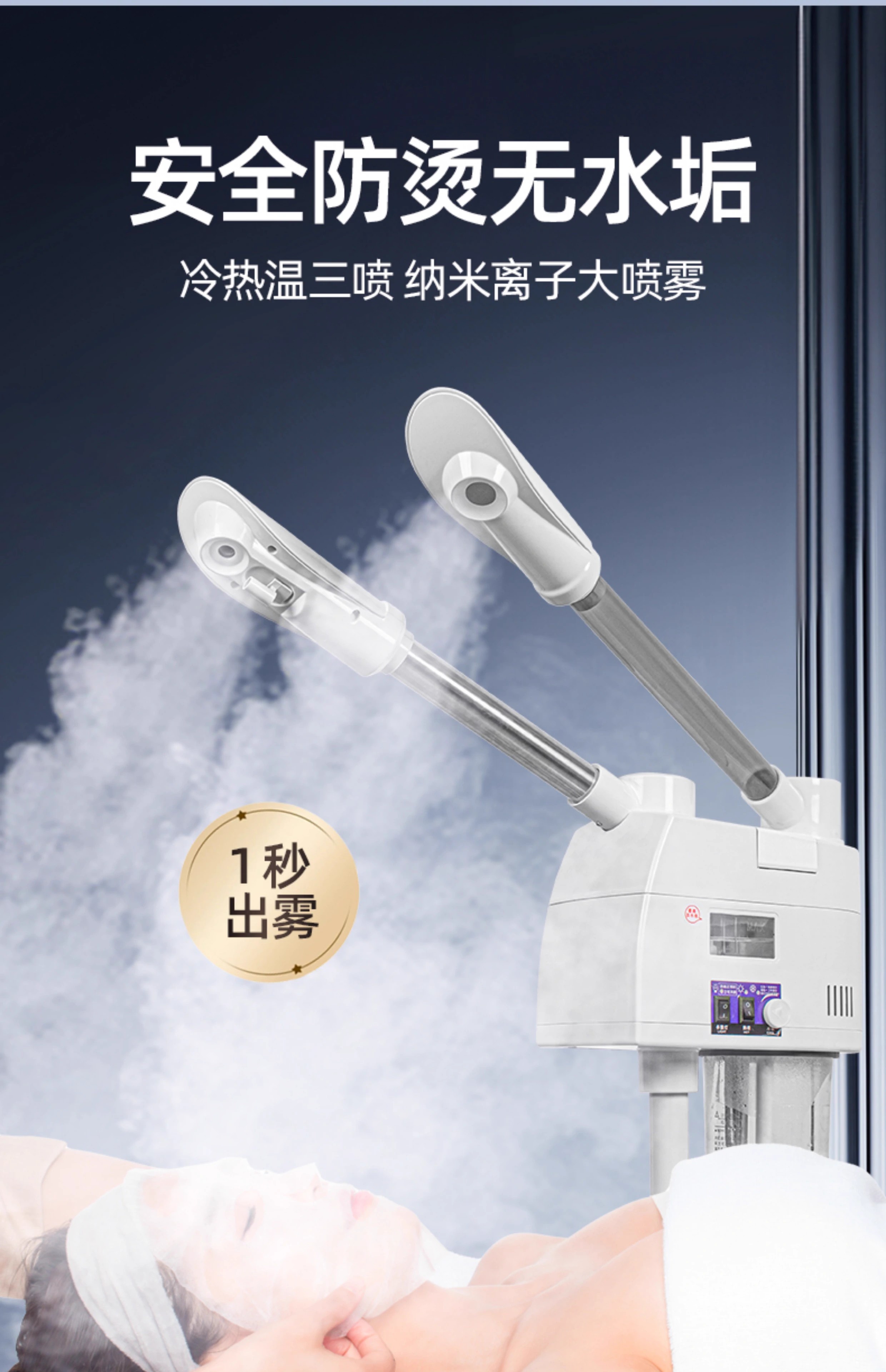 Vaporizador en spray frío y caliente, vaporizador facial, luz de agua facial, spray nanométrico de molécula pequeña, poros hidratantes faciales, especial para salones de belleza, spray frío y caliente de doble tubo + lámpara de aumento 8x + luz ajustable