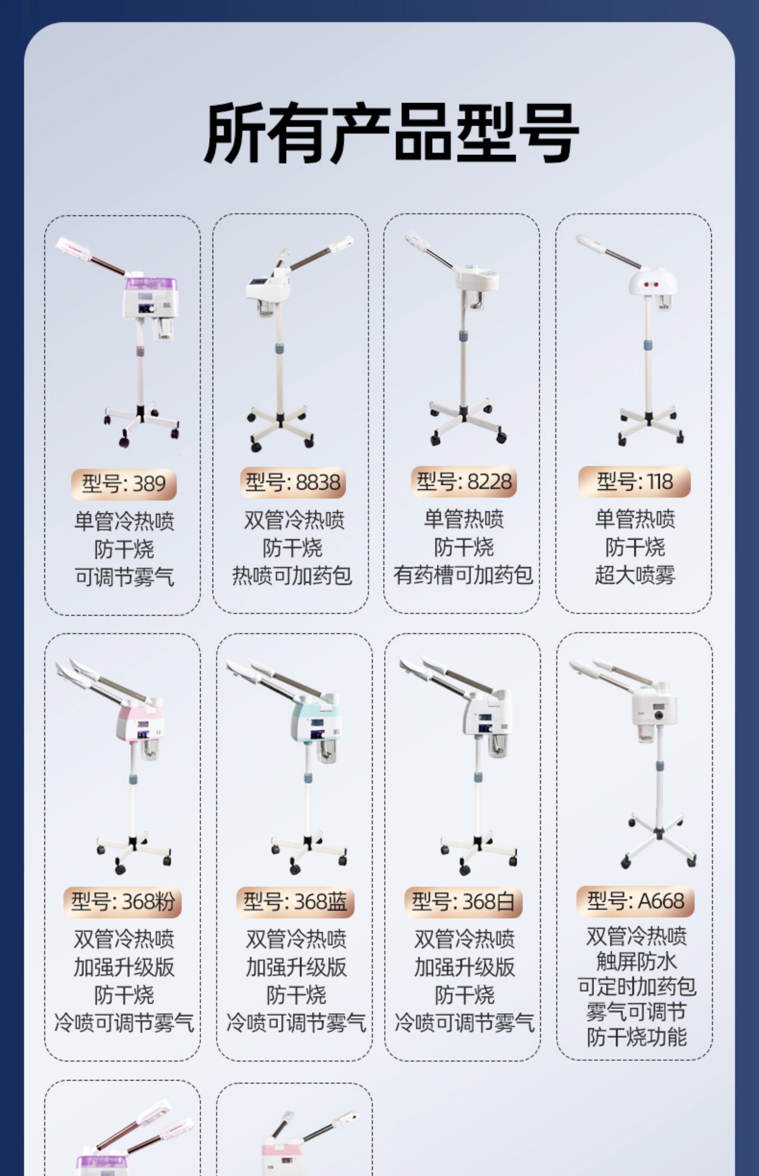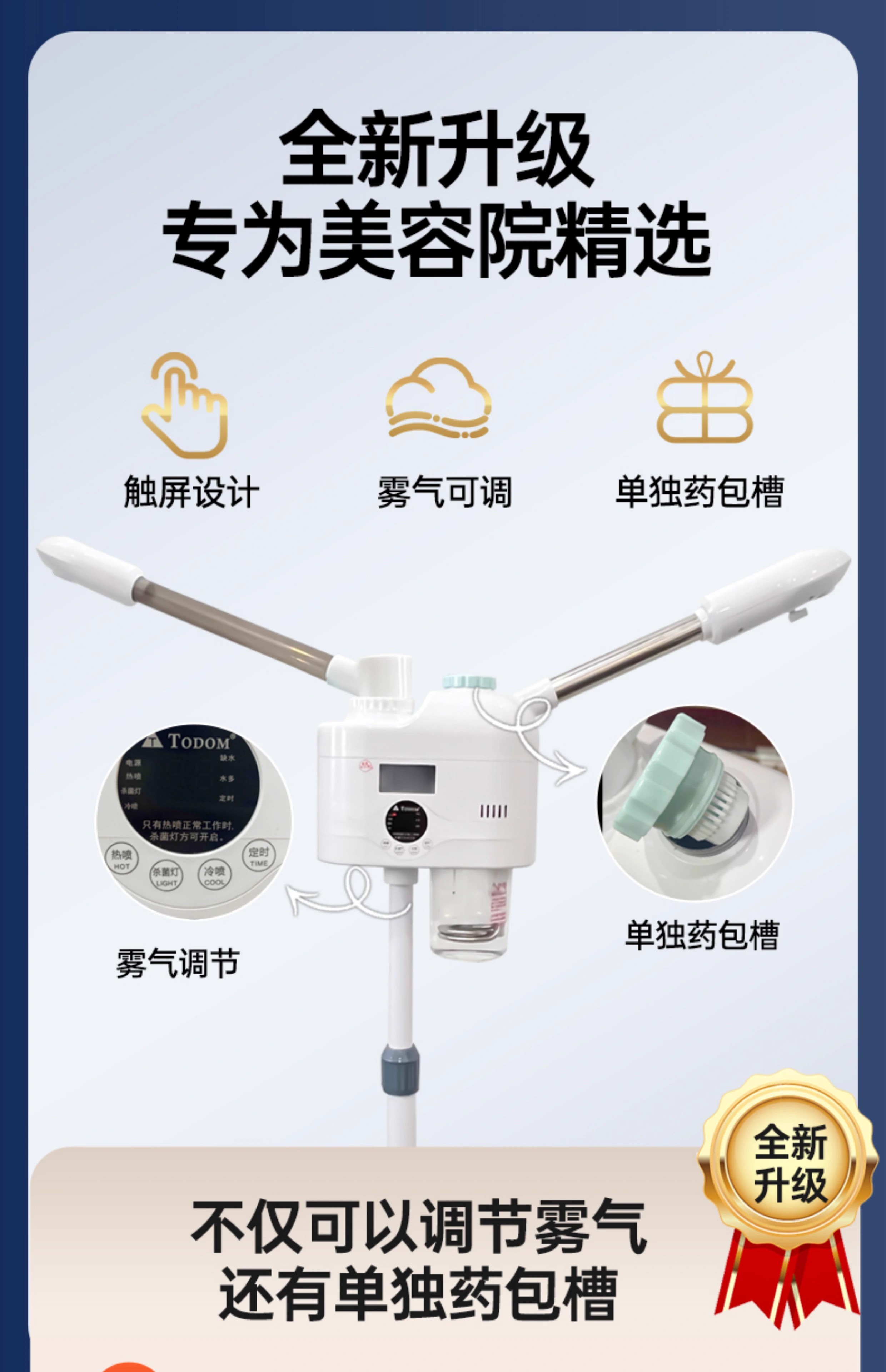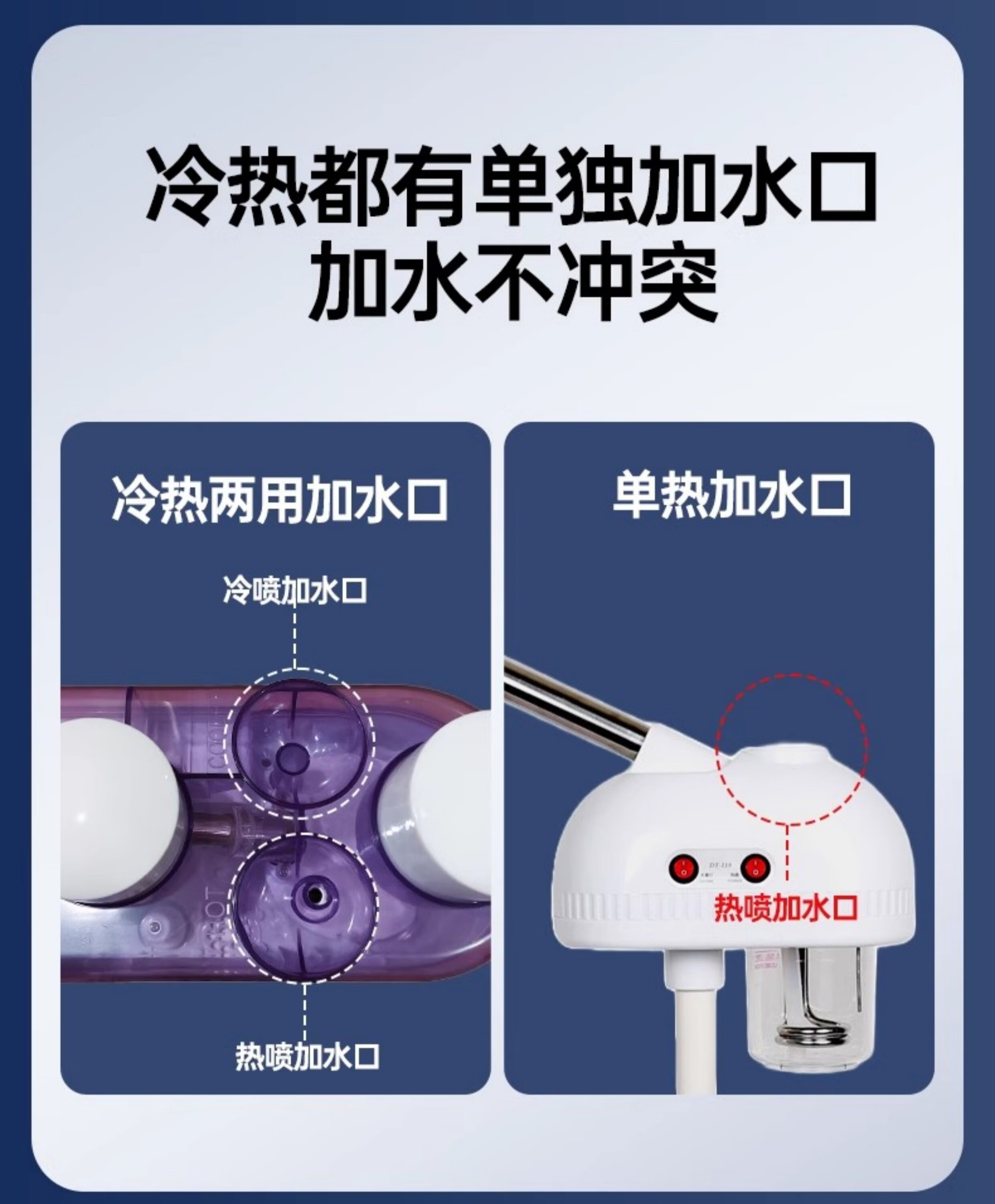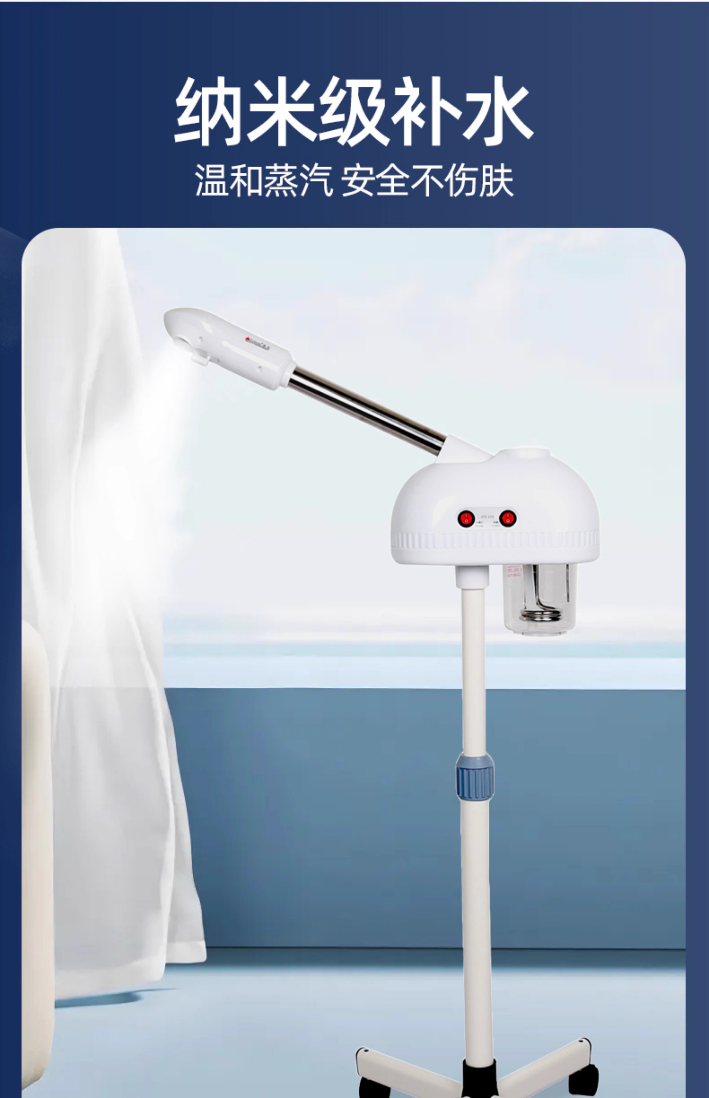 Vaporizador en spray frío y caliente, vaporizador facial, luz de agua facial, spray nanométrico de molécula pequeña, poros hidratantes faciales, especial para salones de belleza, spray frío y caliente de doble tubo + lámpara de aumento 8x + luz ajustable