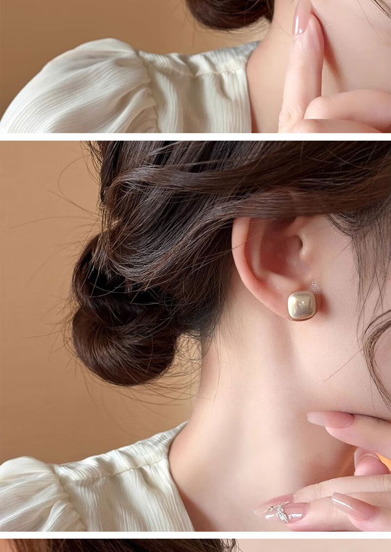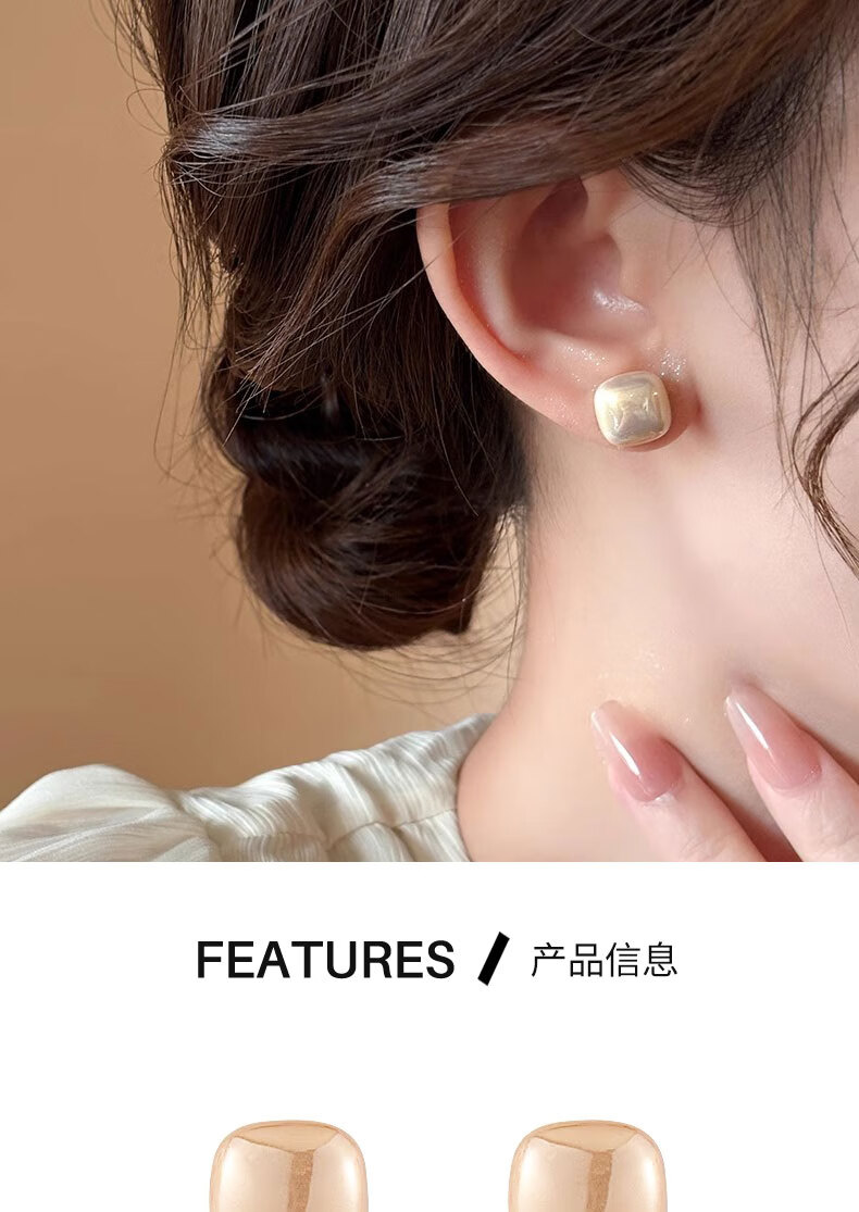 Bai Qixin Small Sugar Cube Pearl Earrings Ear Clip Women's Light Luxury High-Quality Temperament Earrings 2024 New Autumn and Winter Earrings Small Sugar Cube Pearl Earrings Champagne Color