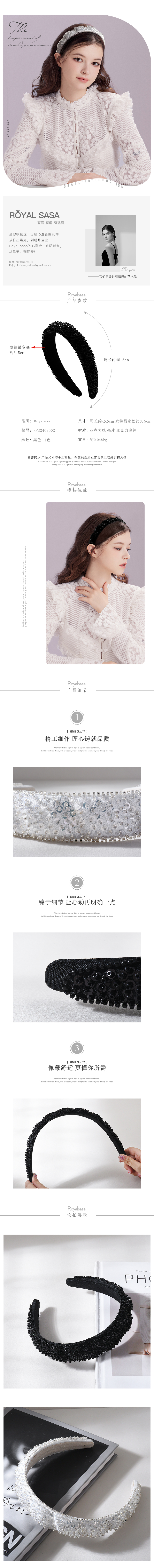 Royal sasa royal salsa heavy industry beaded sequin headband fashion versatile outdoor departure card French lady temperament headband black BL