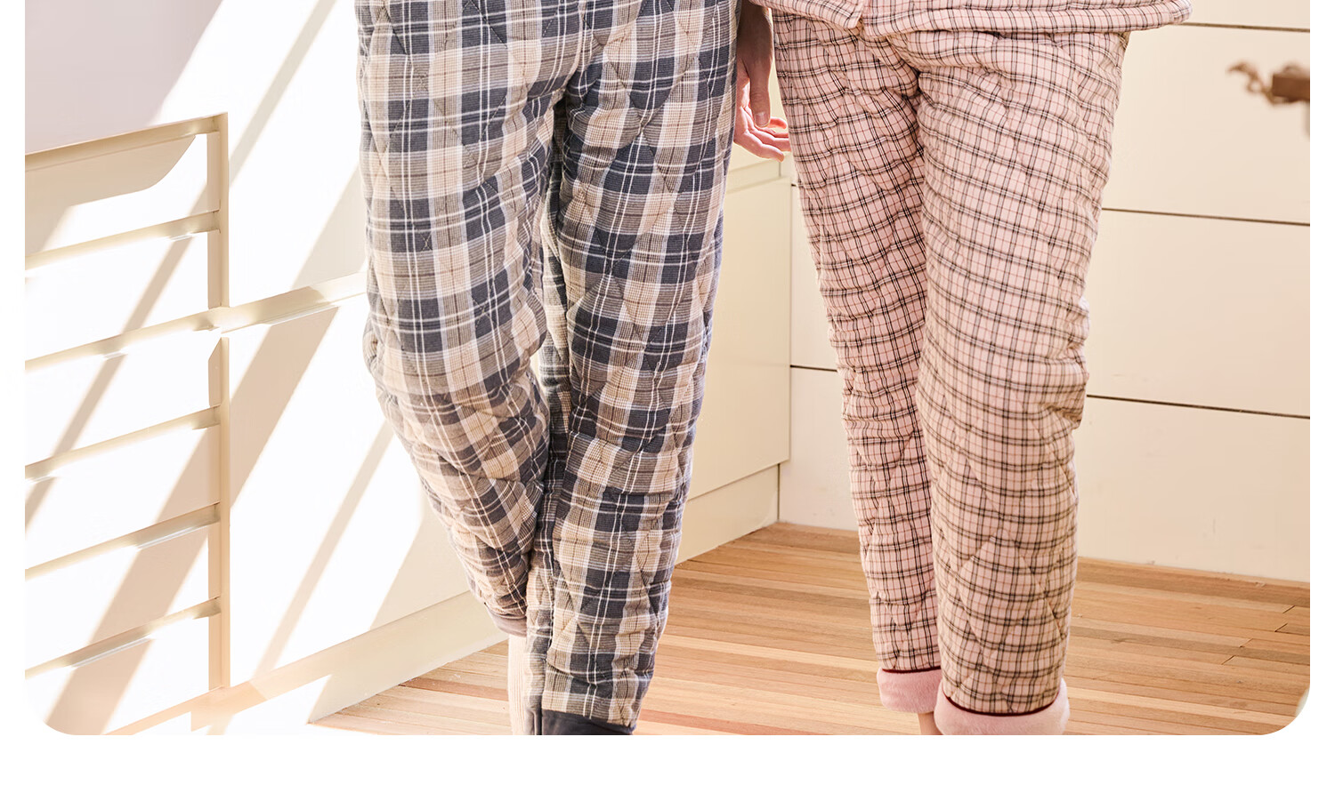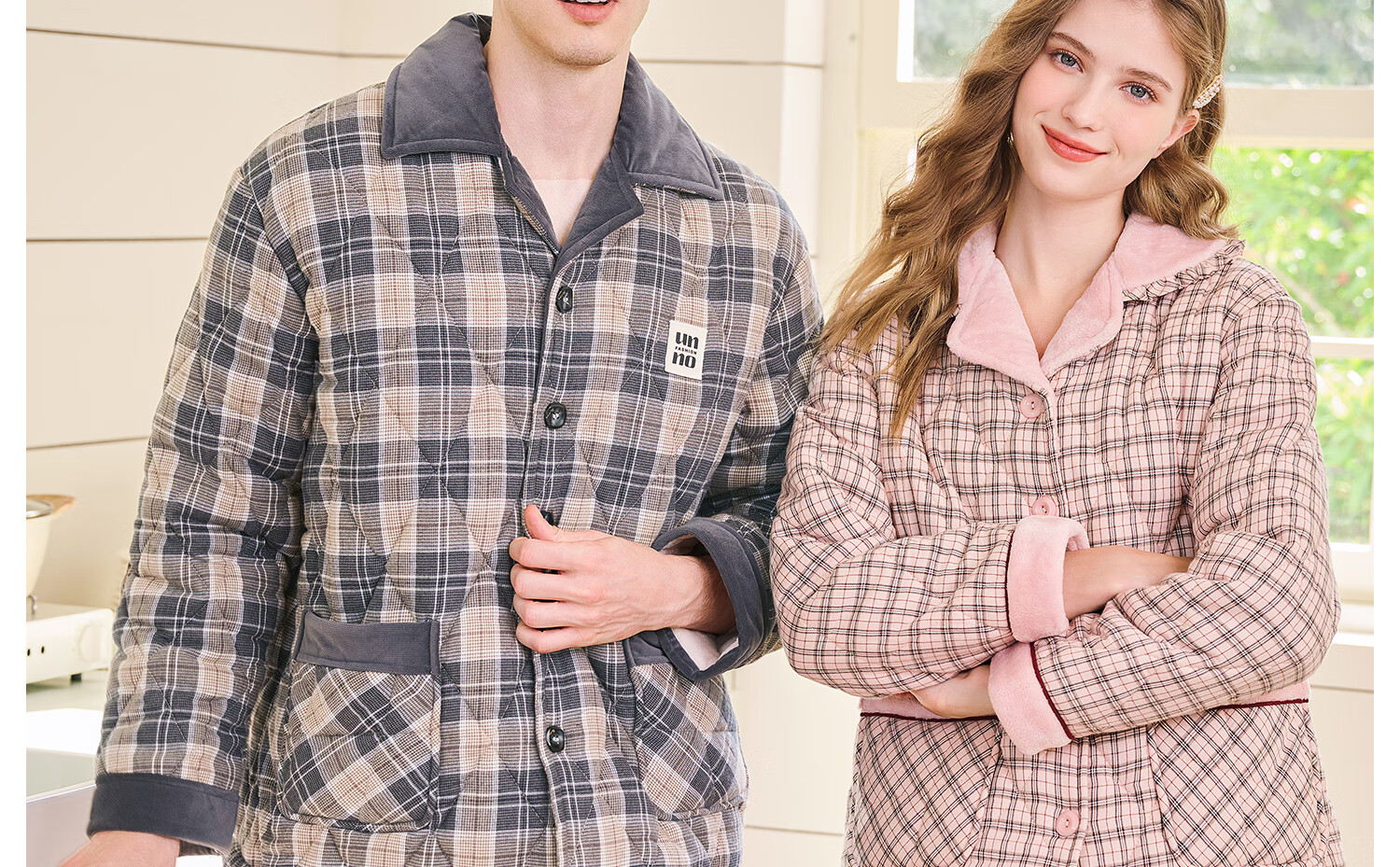 American Standard Gifts Winter New Couple Pajamas Thickened Three-layer Cotton Warm Men's and Women's Casual Plaid Can Be Weared Outer Home Clothes Dark Gray (Coral Velvet Inner Layer) XL