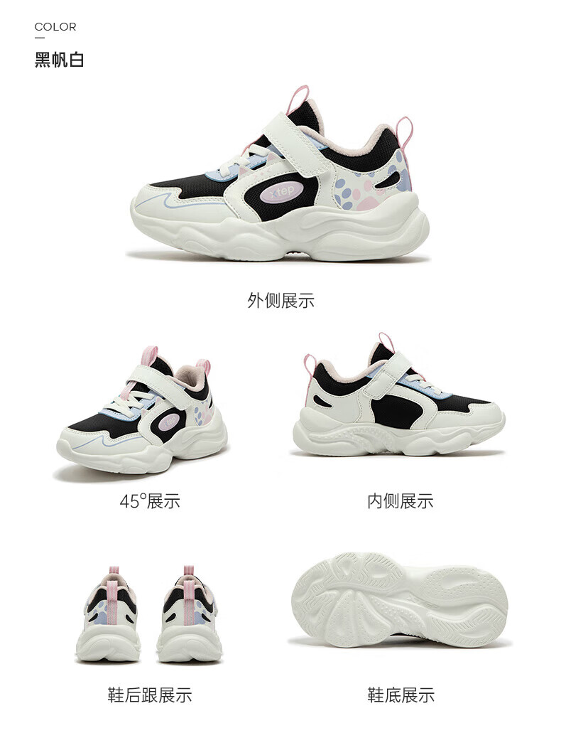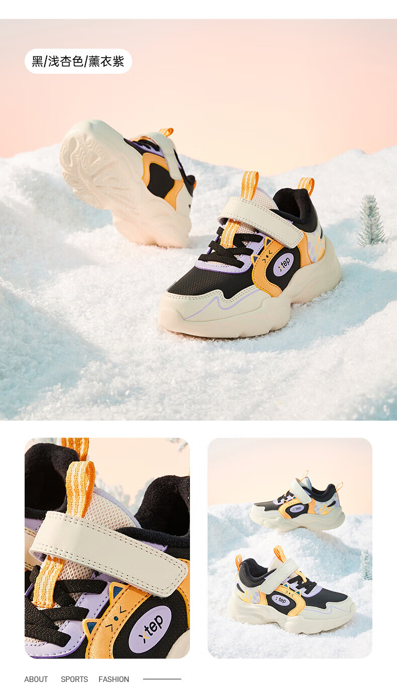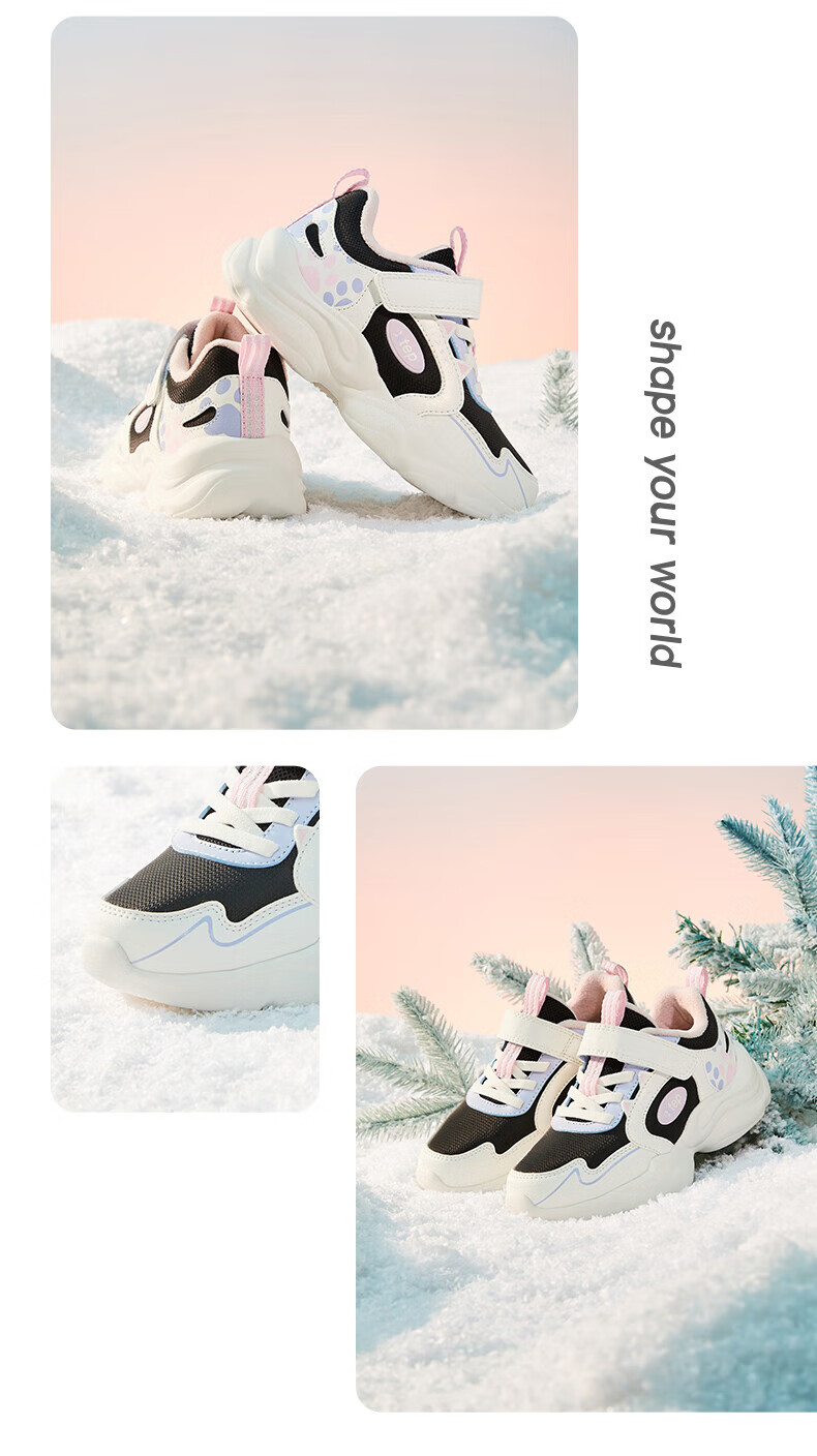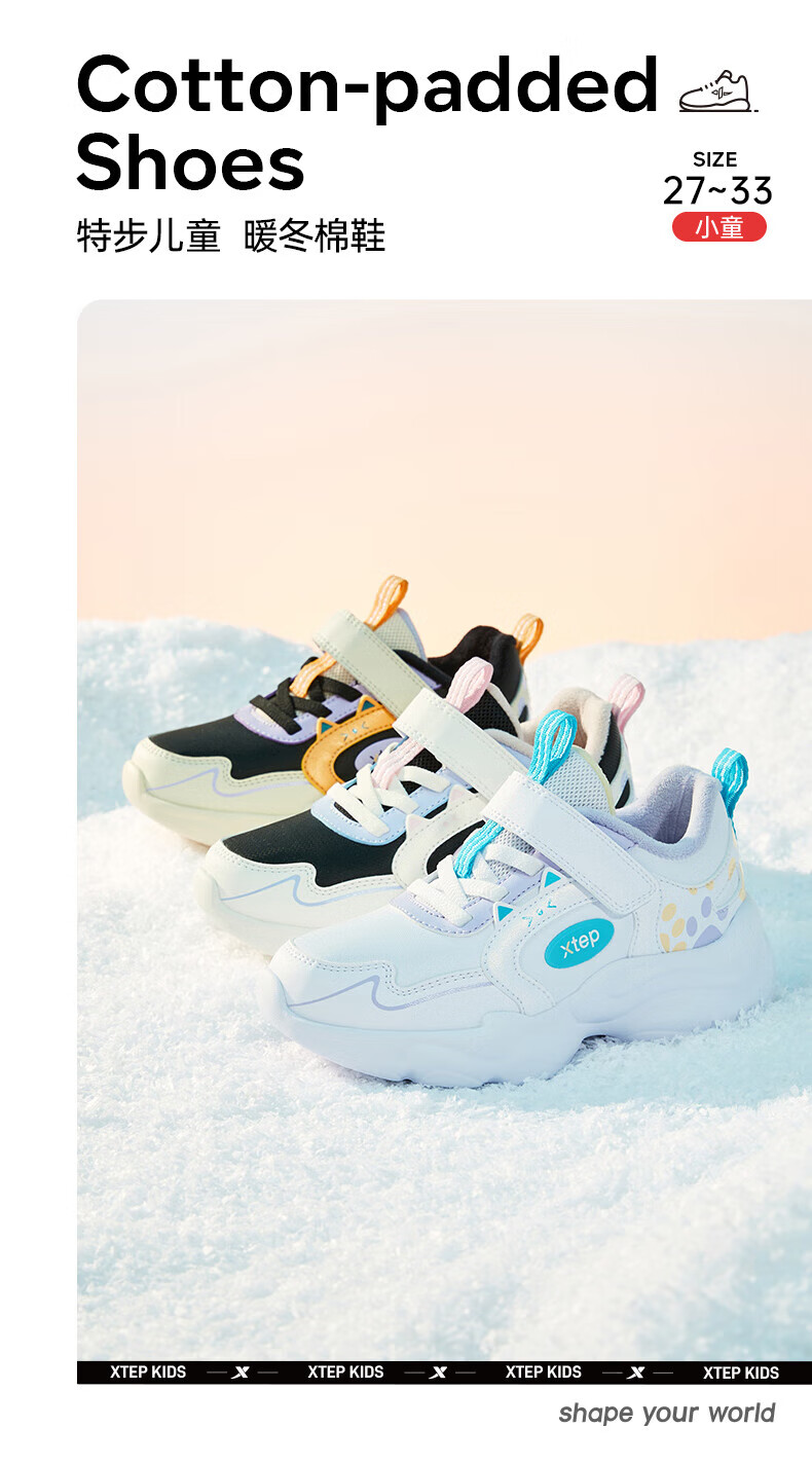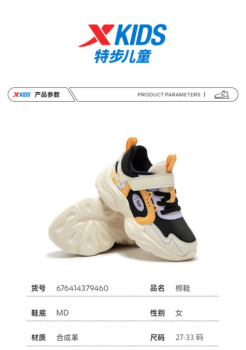 Xtep children's cotton shoes for girls and toddlers, leather cat pattern, cotton lining, warm and cushioning cotton shoes, black/sail white 27