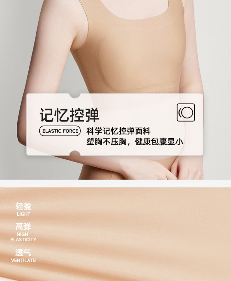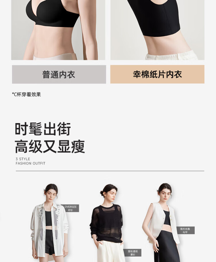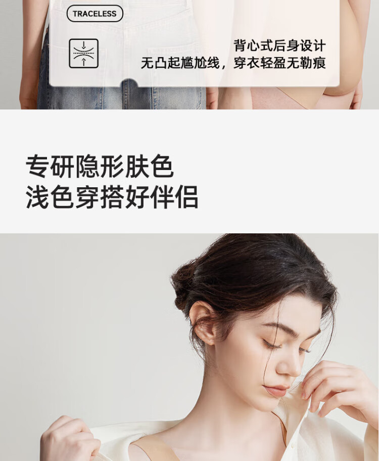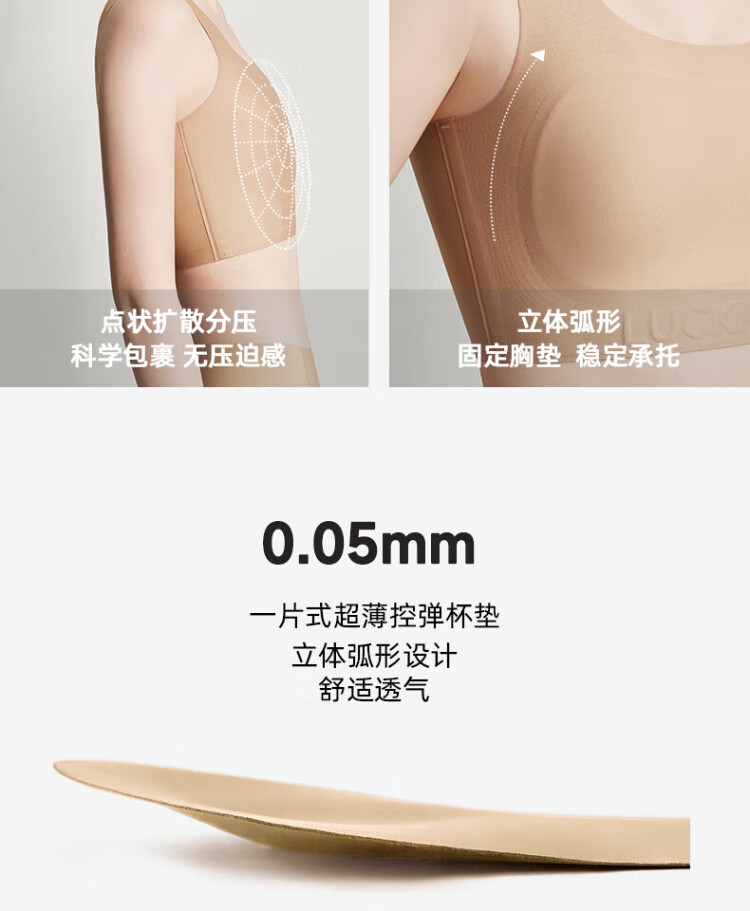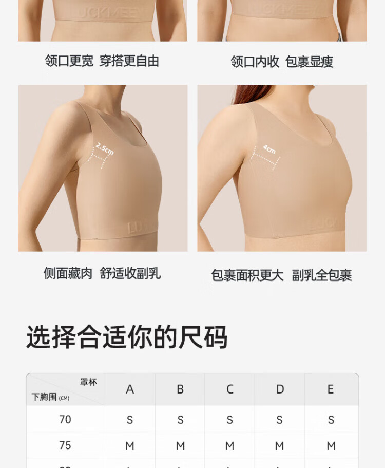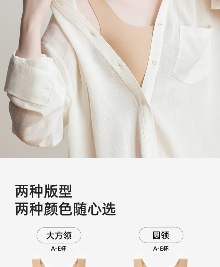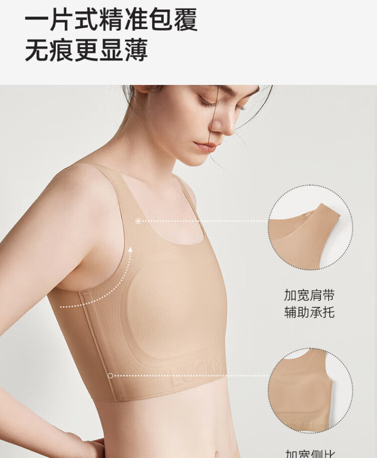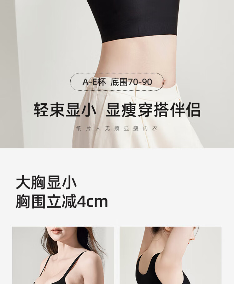 幸棉秀场同款文胸显瘦神器显小无感薄背显瘦超薄无痕束胸纸片人内衣 肤色 M (方领75A-E)