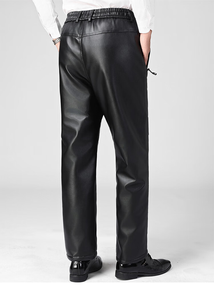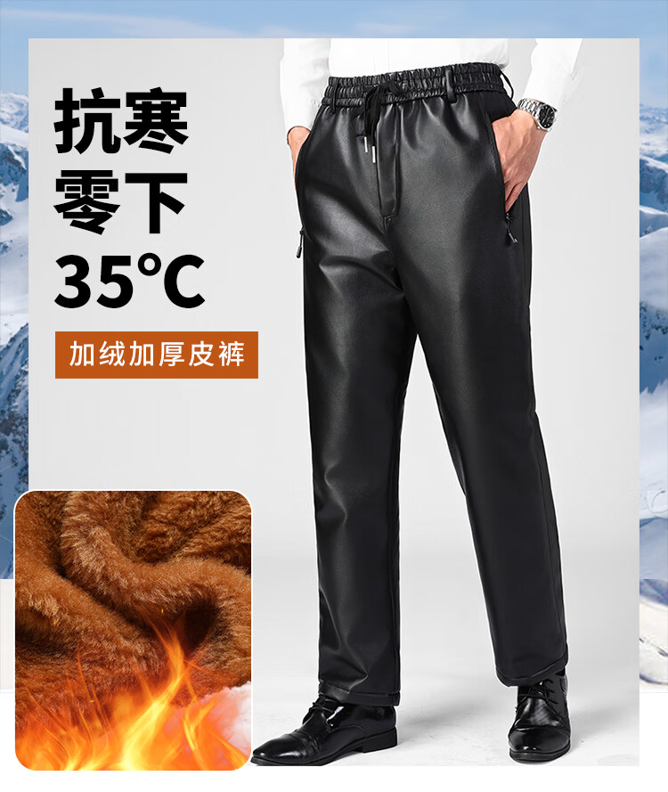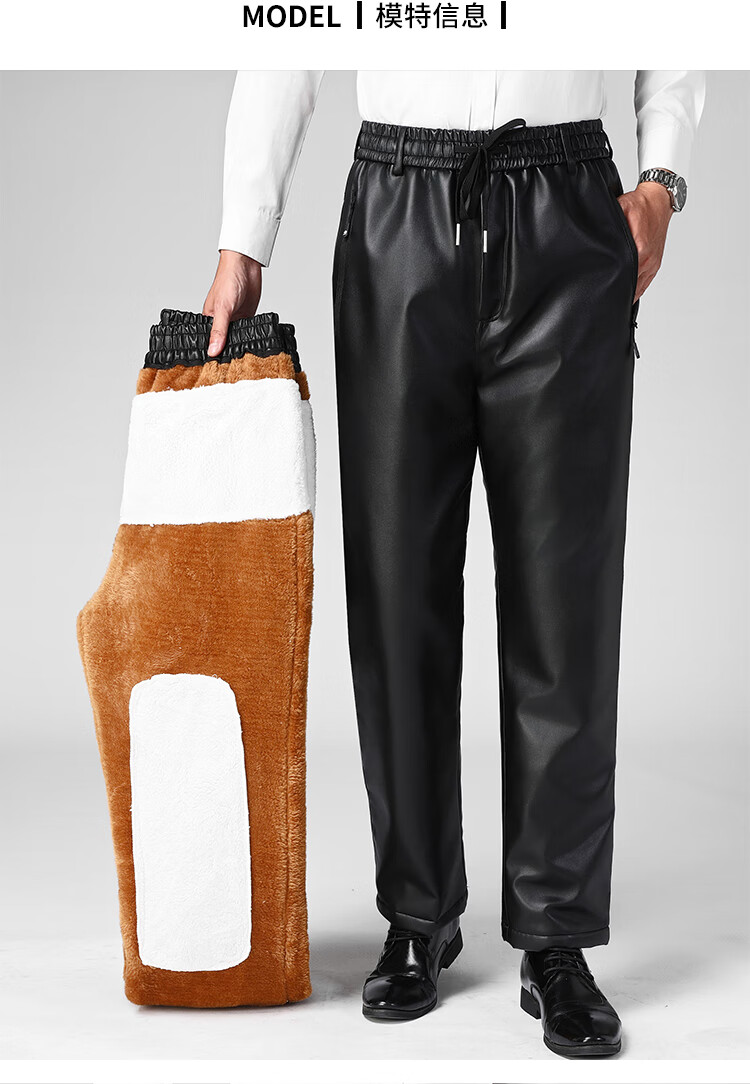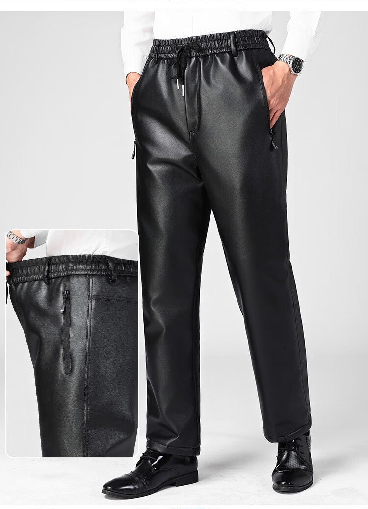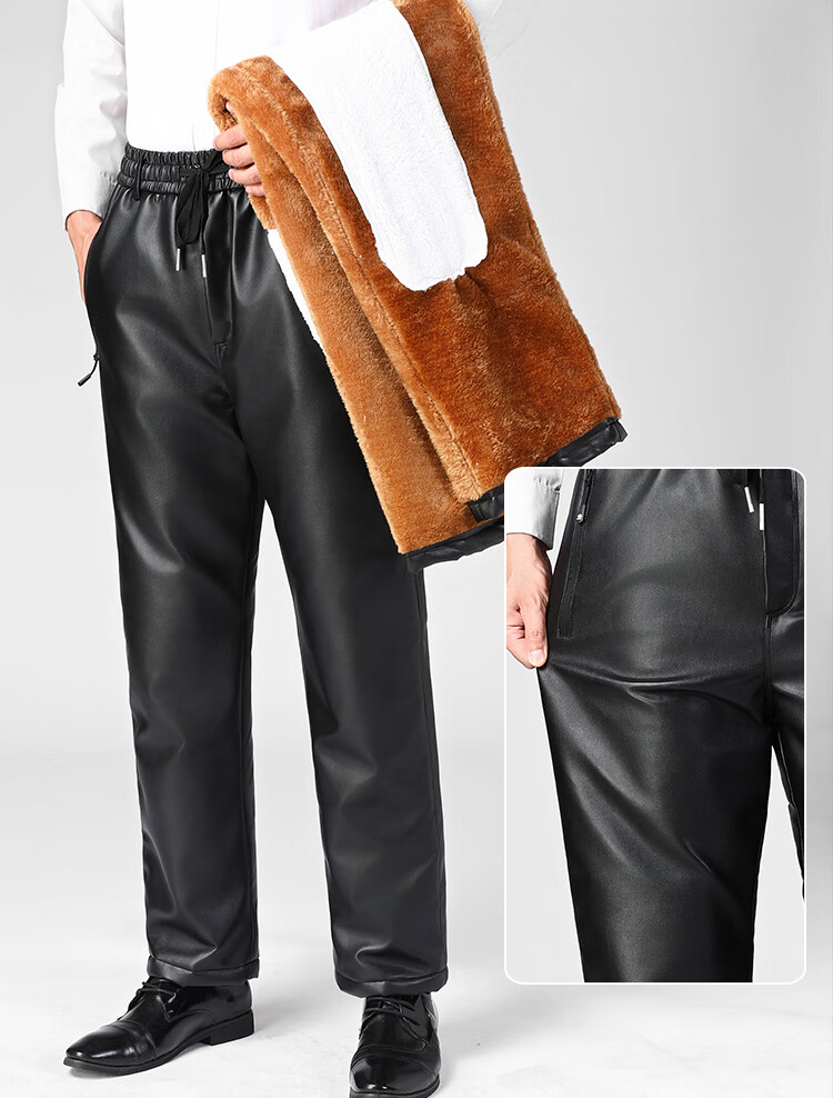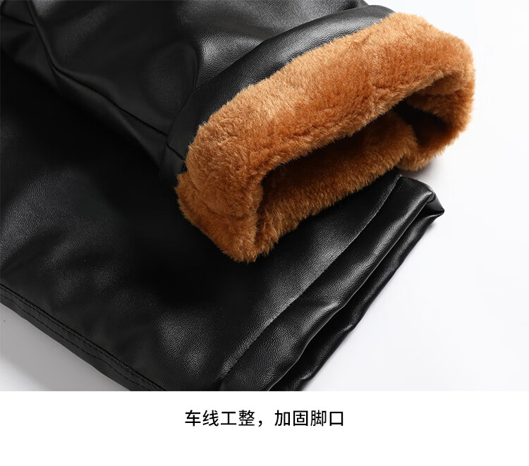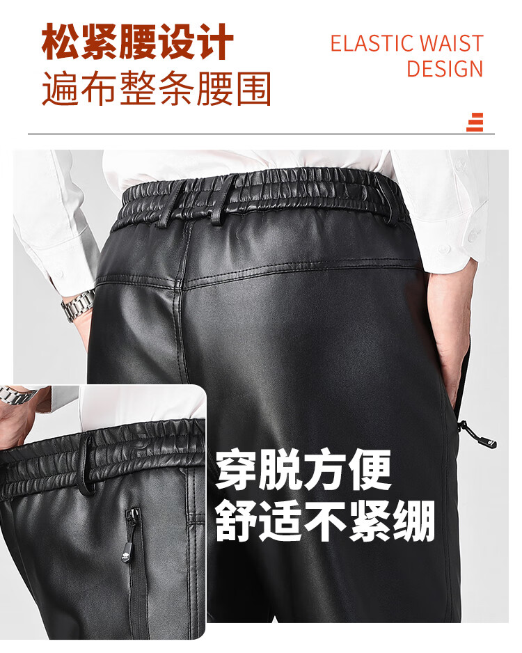 Woodpecker (TUCANO) Winter Leather Pants Men's Velvet Thickened Takeaway Cycling Driving Windproof and Waterproof Leather Pants Loose Warm Cotton Pants Men 2107 Black Velvet 4XL Approximately 2'8-2'9 Waist