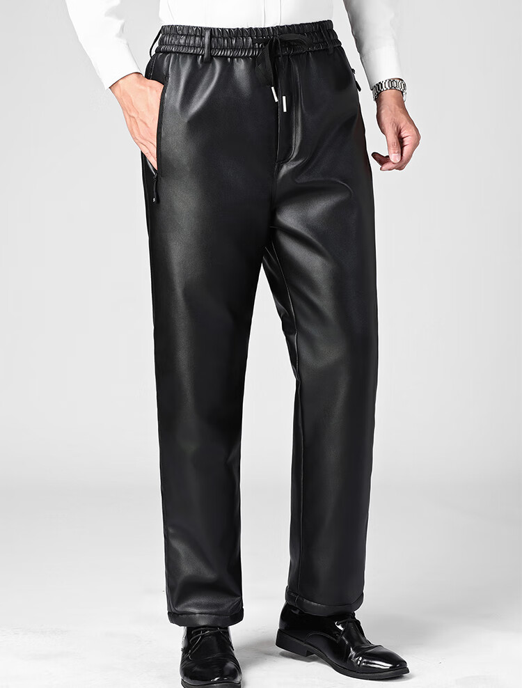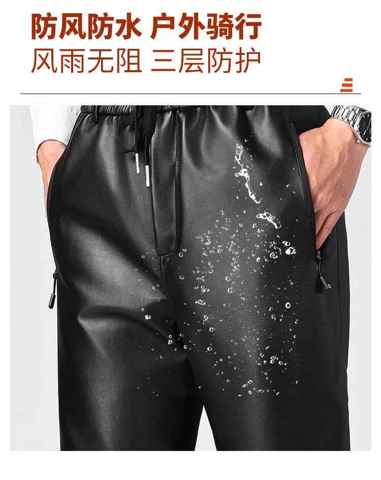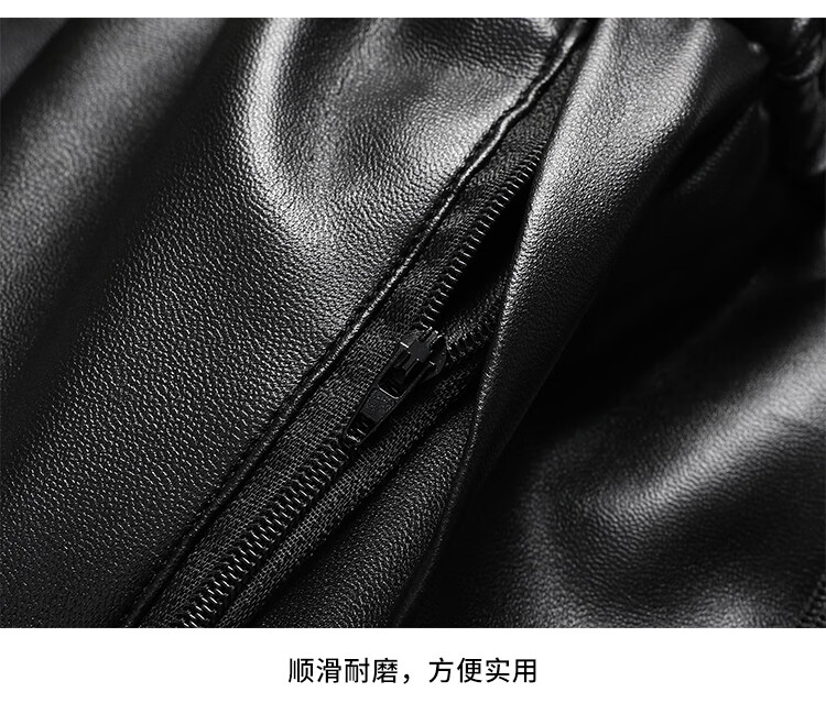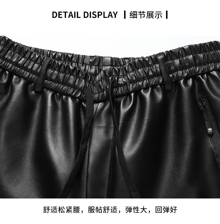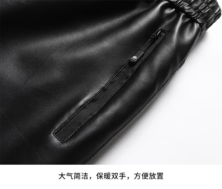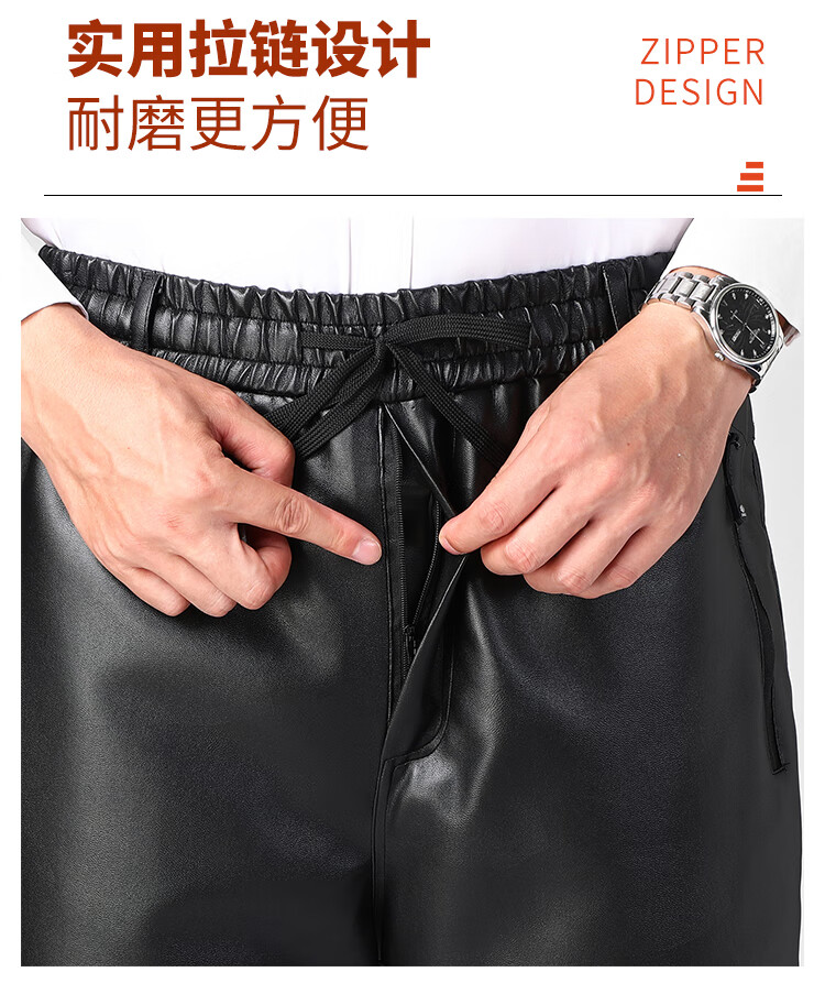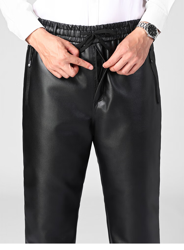 Woodpecker (TUCANO) Winter Leather Pants Men's Velvet Thickened Takeaway Cycling Driving Windproof and Waterproof Leather Pants Loose Warm Cotton Pants Men 2107 Black Velvet 4XL Approximately 2'8-2'9 Waist