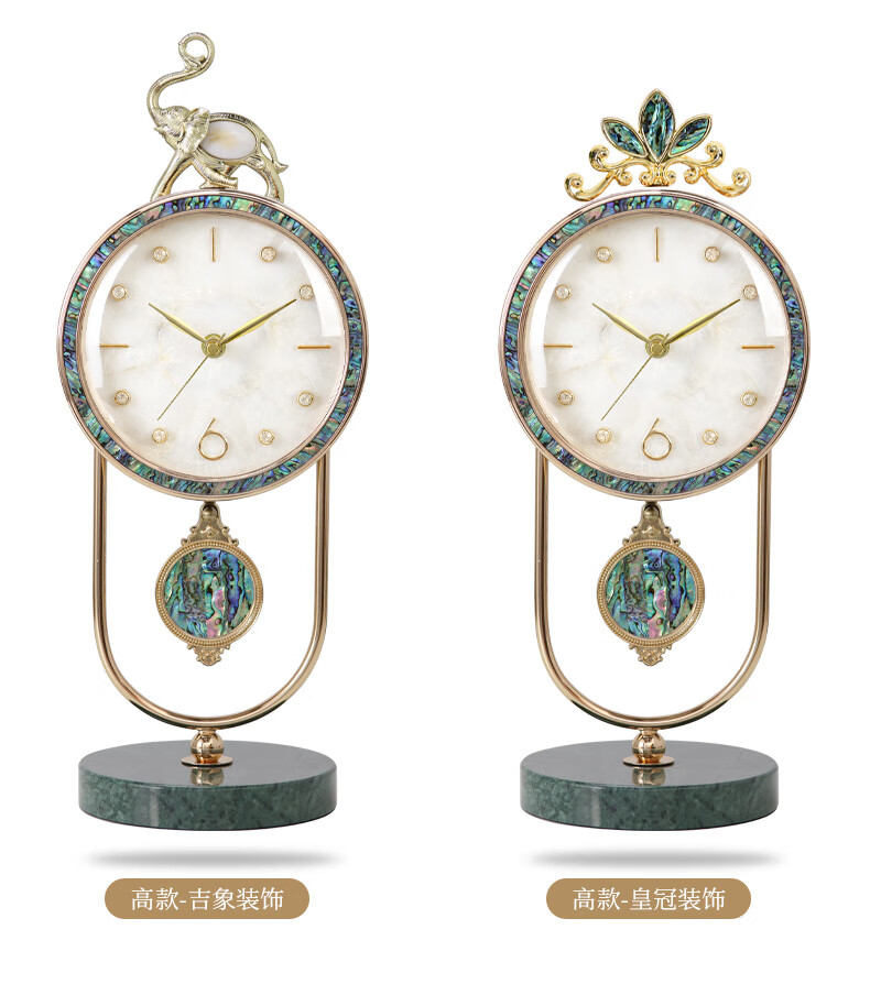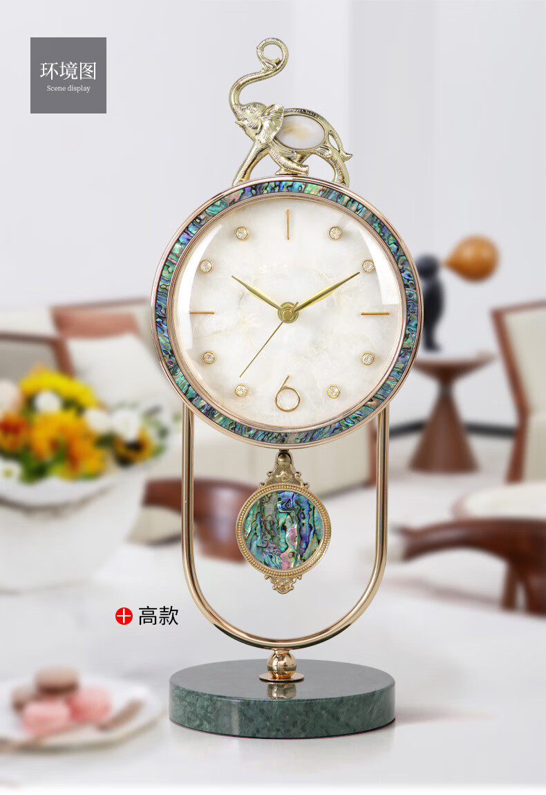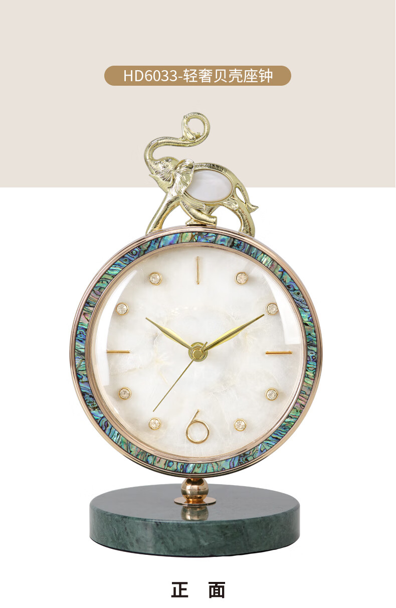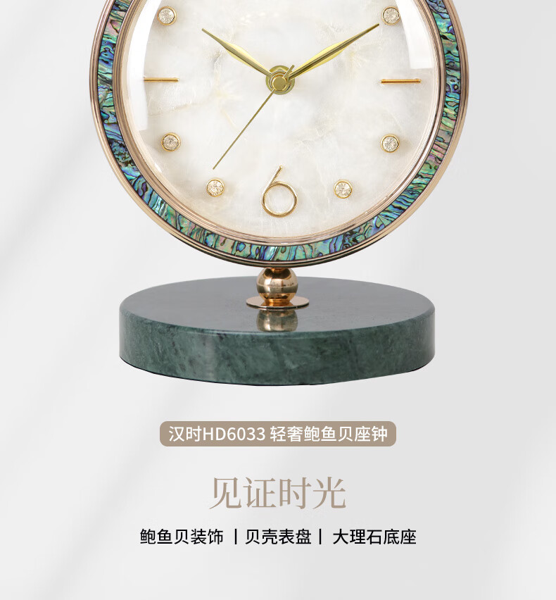 Hanshi (Hense) light luxury shell high-end desk clock living room desktop pendulum clock home decoration clock table clock quartz clock HD6033 Jixiang-short model