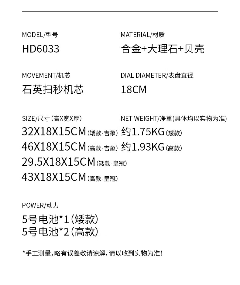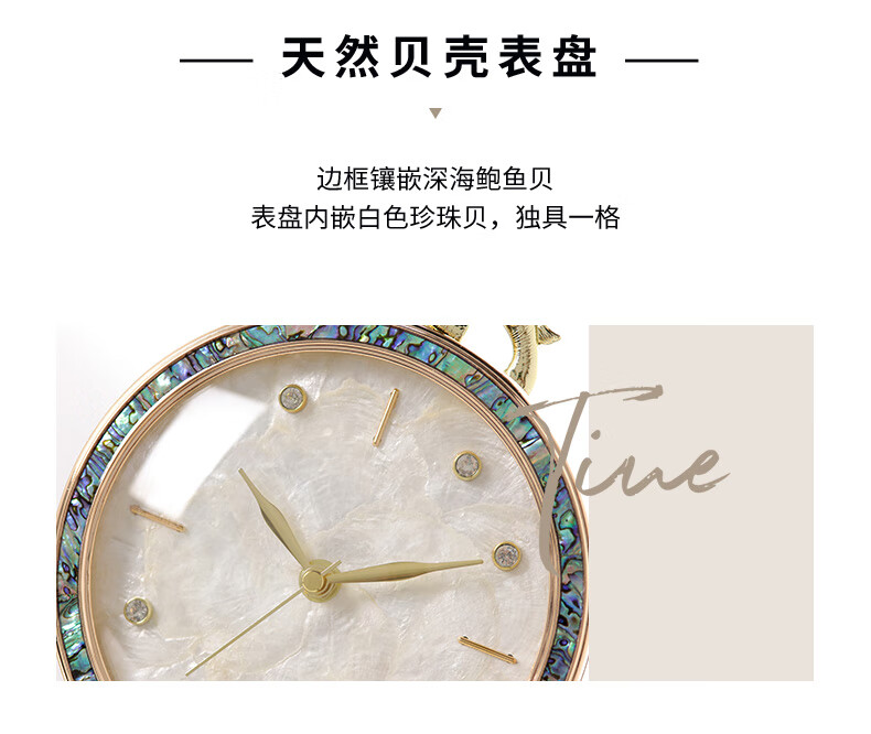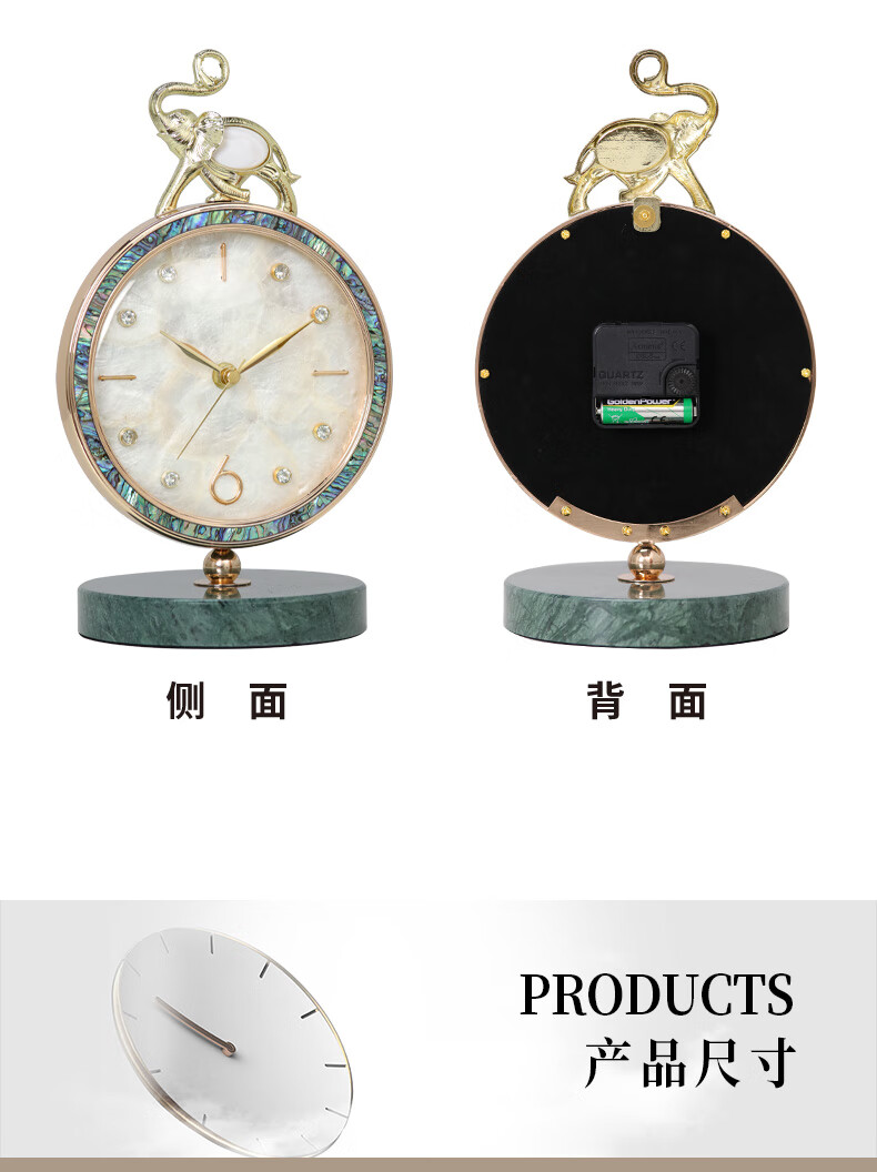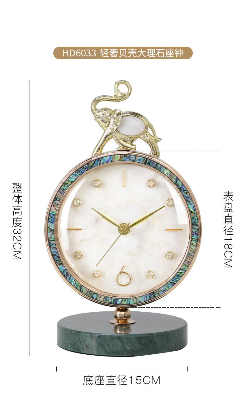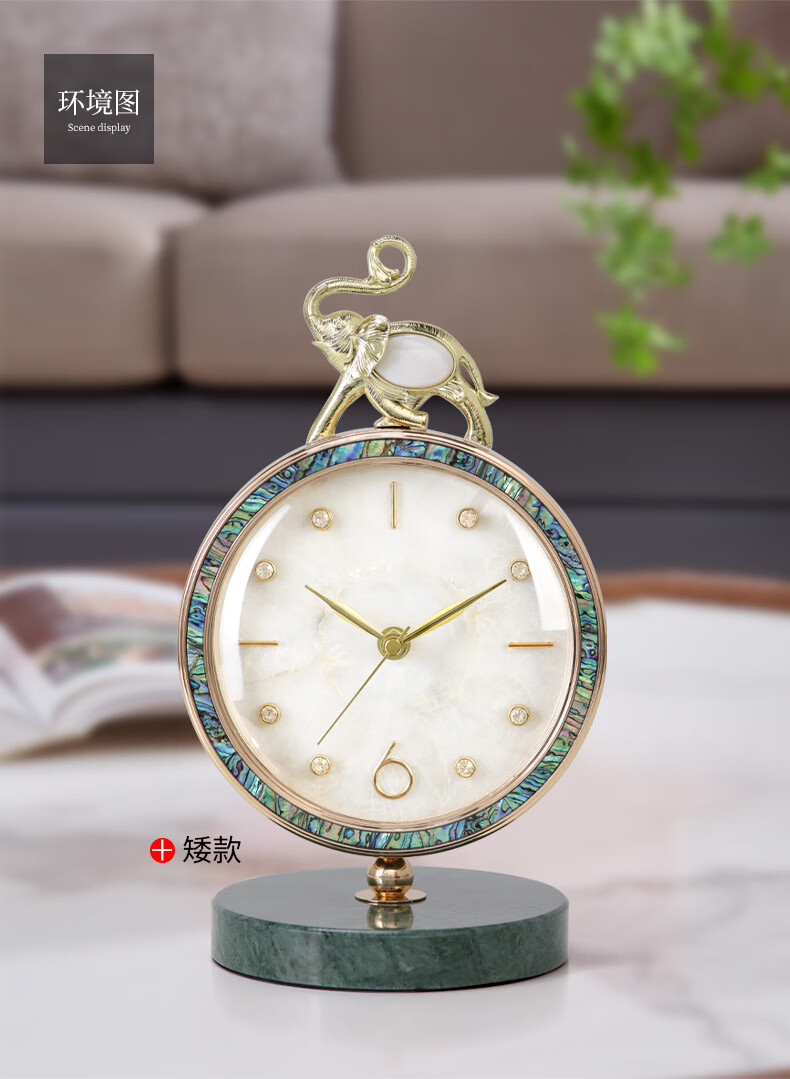 Hanshi (Hense) light luxury shell high-end desk clock living room desktop pendulum clock home decoration clock table clock quartz clock HD6033 Jixiang-short model