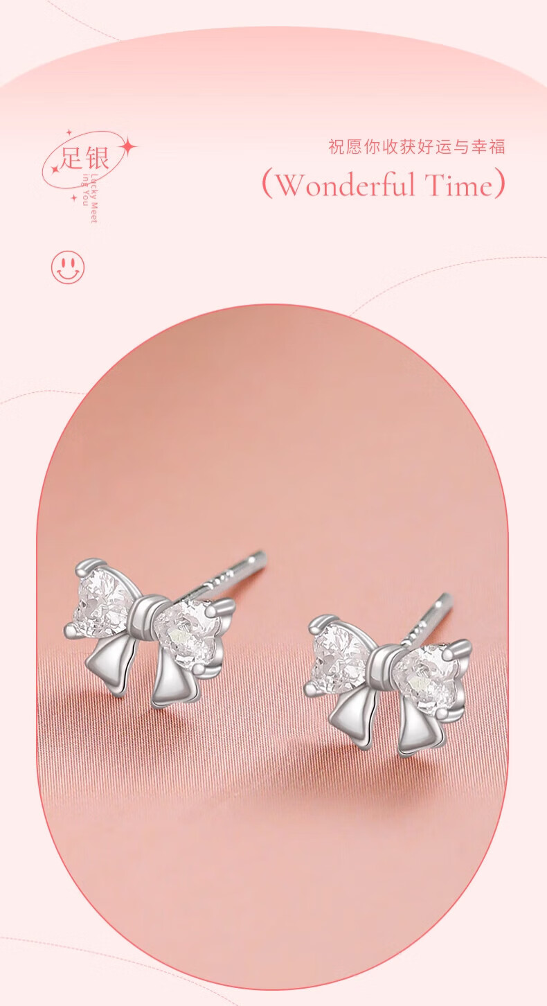 Lao Fengxiang Pure Silver Bow Earrings for Women, Niche Light Luxury Pure Silver Earrings, High-end Anniversary Gifts for Girlfriends and Wife, Today/Tomorrow Delivery*999 Silver* Bow Earrings, One Pair, Best Selling Top