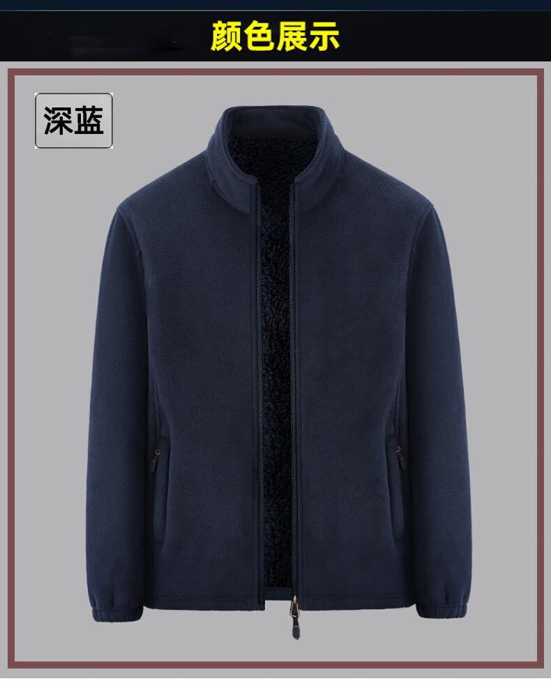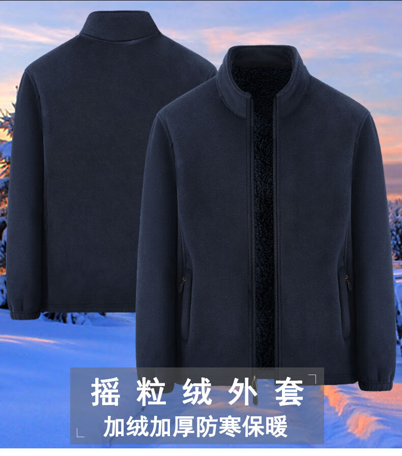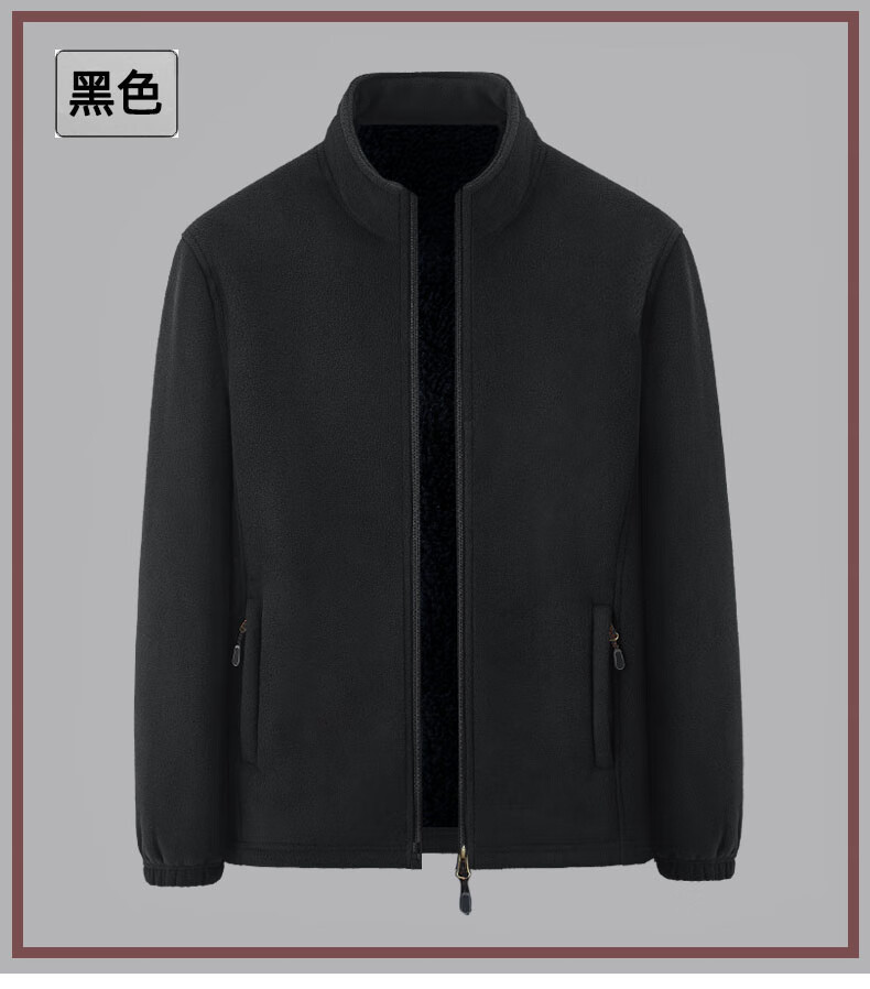 Pierre Cardin autumn and winter fleece dad jacket men's stand-up collar plus fleece thickened polar fleece sweatshirt men's middle-aged cardigan lambswool top black A (thickened) plus fleece 3XL suitable for 150165Jin Jin equals 0.5 kg