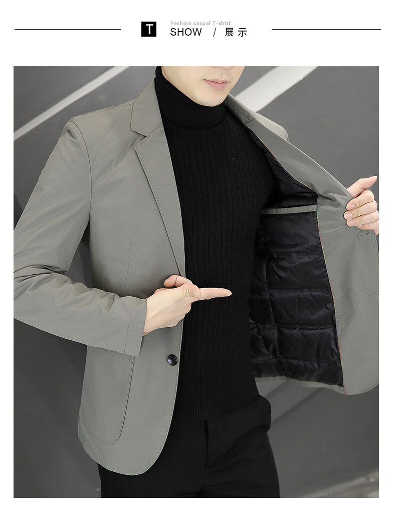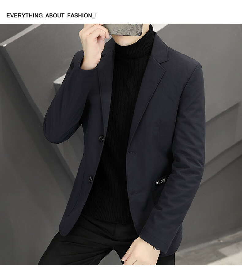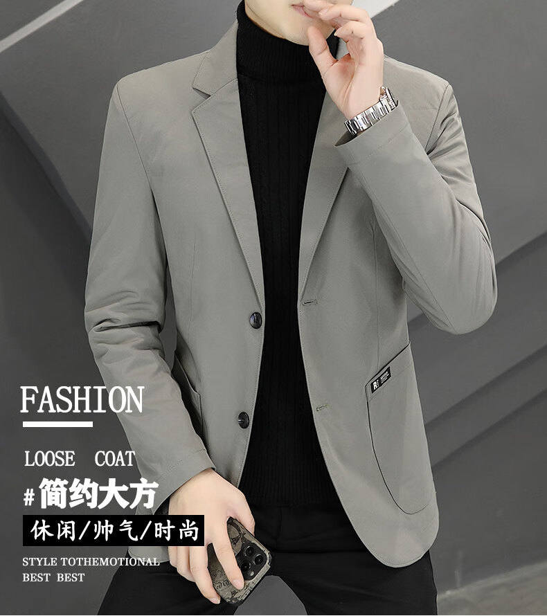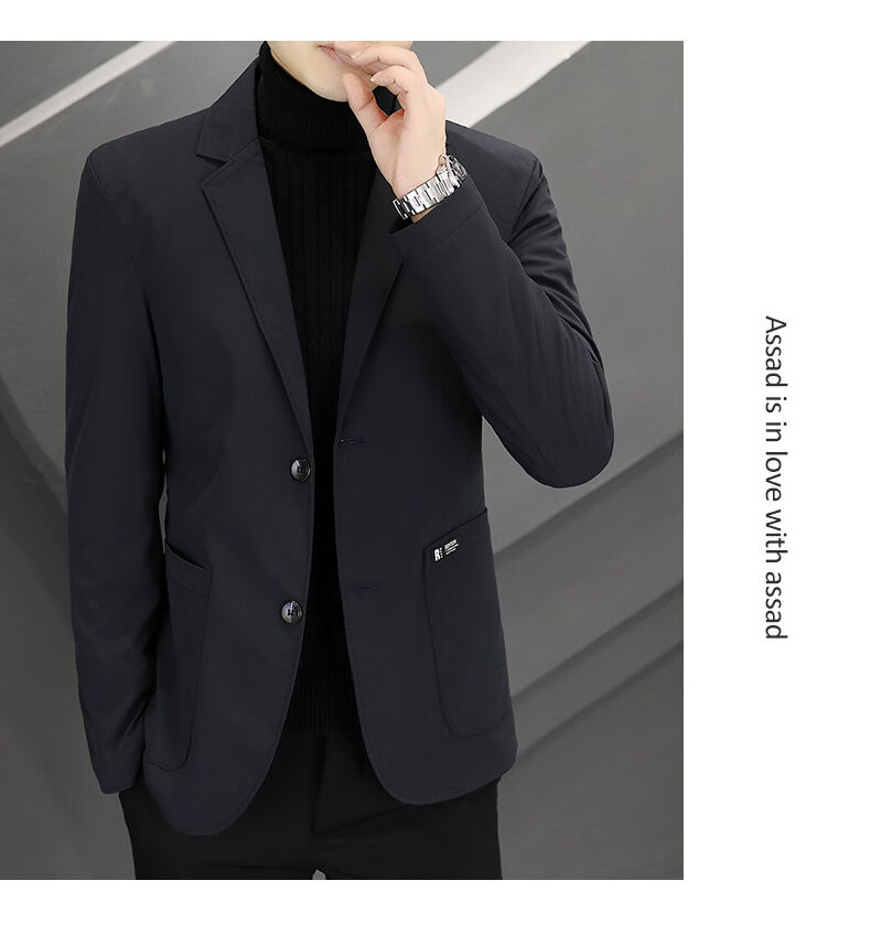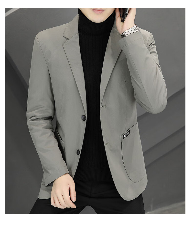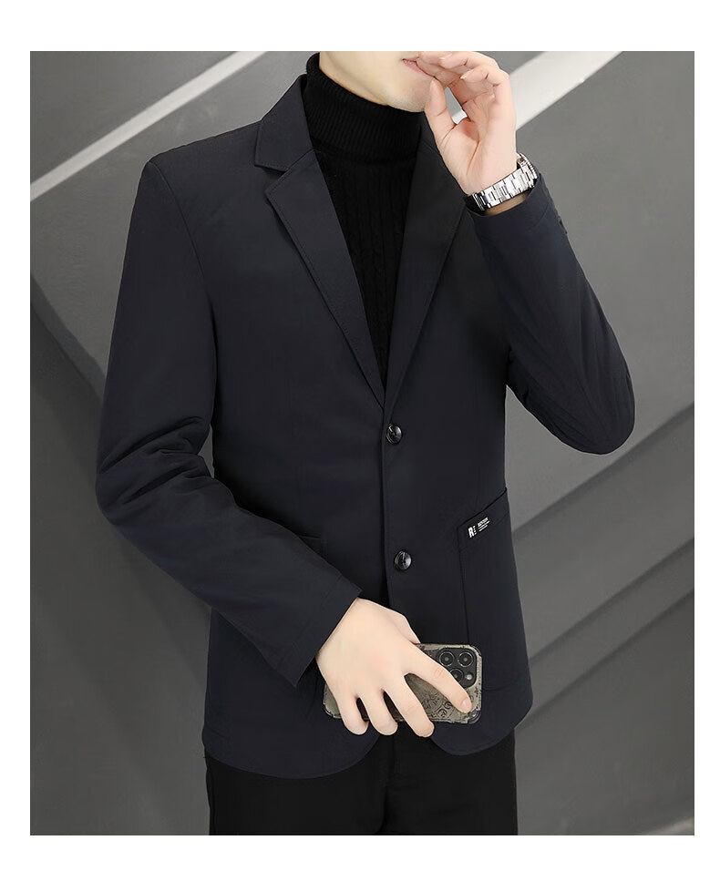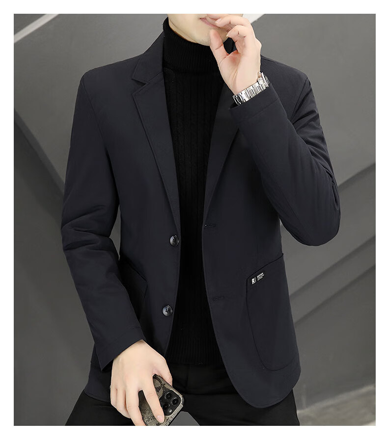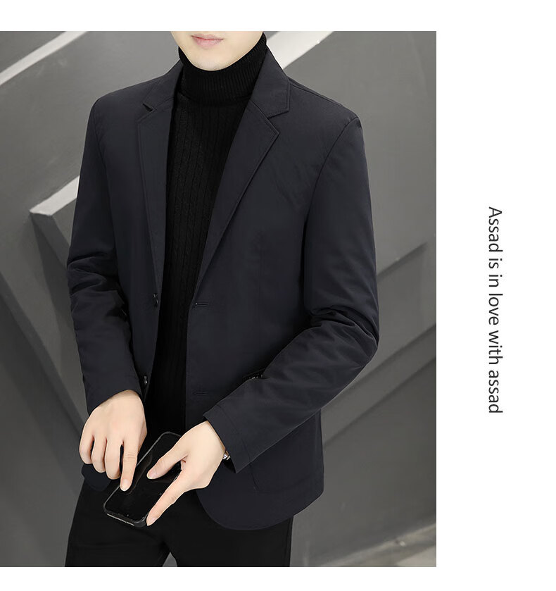 ROMON autumn and winter thickened down suit men's trendy Korean style casual, handsome, versatile, slim and high-end small suit jacket black (90 duck down lining) 3XL recommended 165-180Jin Jin equals 0.5 kg