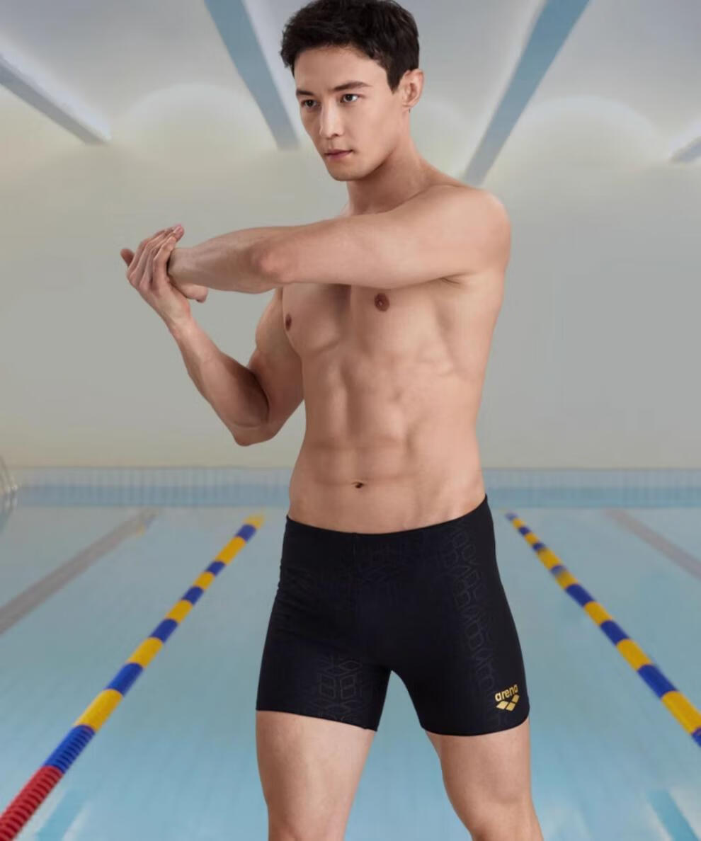 Arena (Arena) Offizieller Direktvertrieb Badehose Wettkampf Herren Boxer Knielang Sport Dunkles Muster Surf Triangel Spa Badeanzug Schwarz-Triangle 2XL