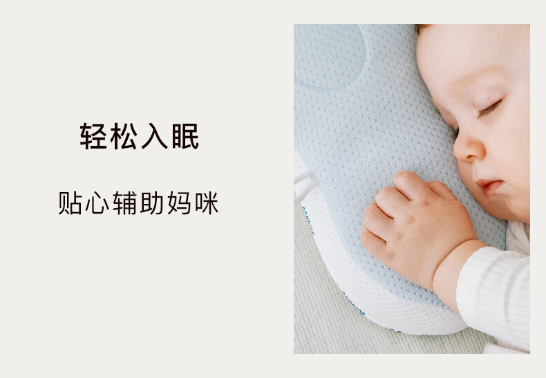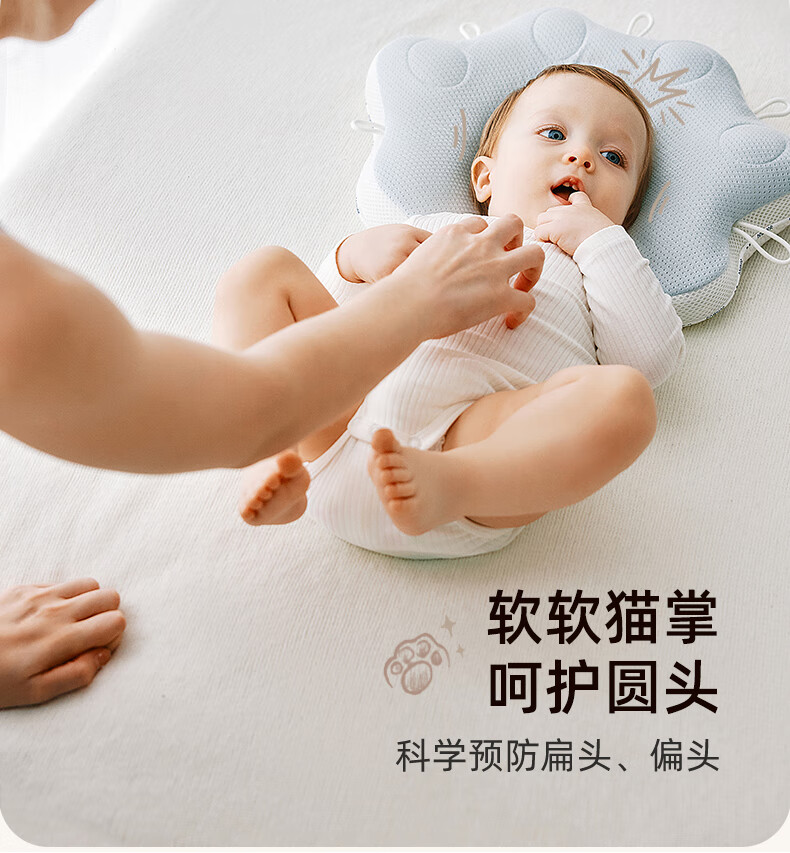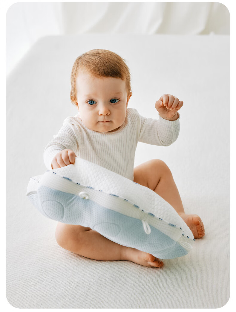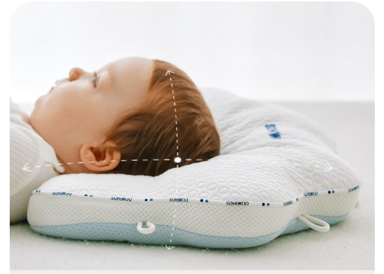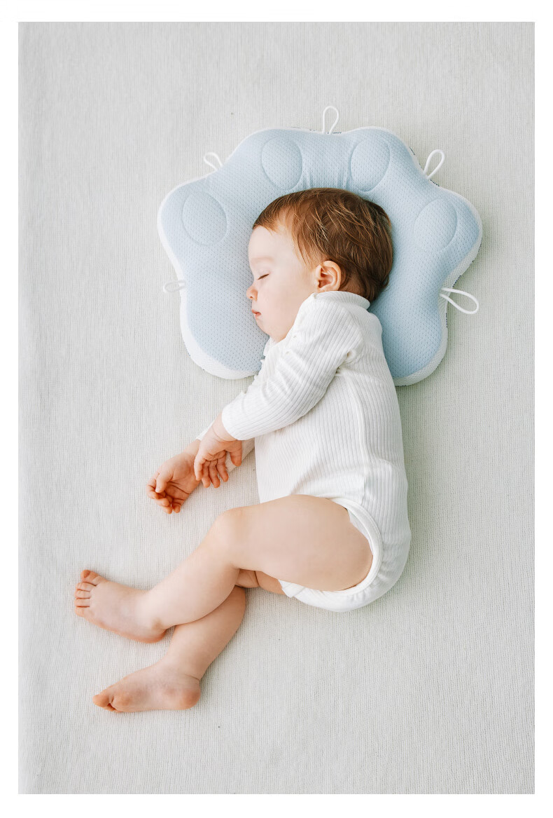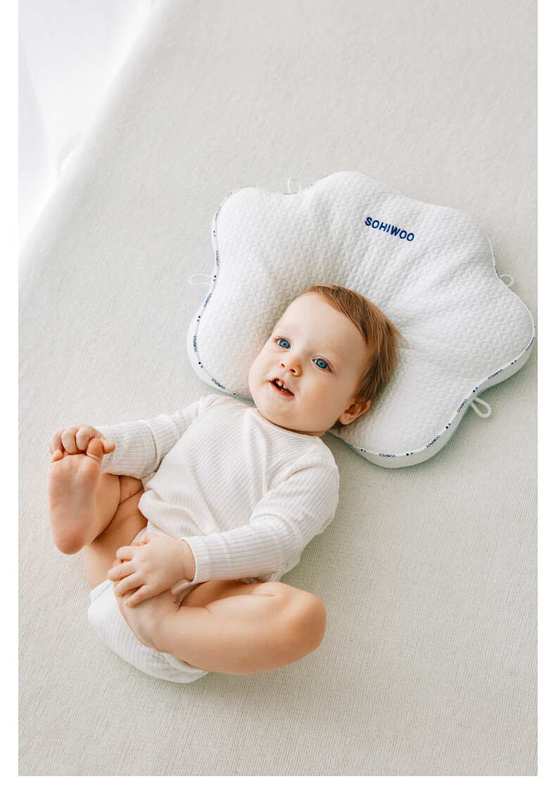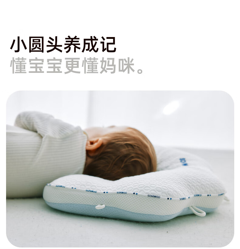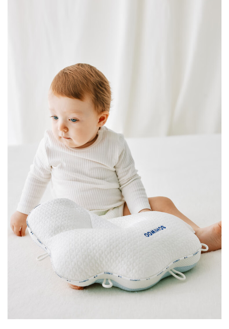 Sohiwoo Baby Shaping Pillow 0-6 Months Sleeping Round Head Pillow Corrects Newborn's Head Shape Breathable Prevents Flat Head Deviation Color Matching White Blue Upgraded Antibacterial and Anti-mite Style 40x29x9cm