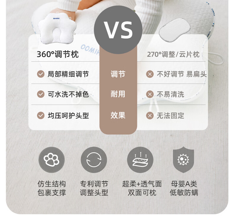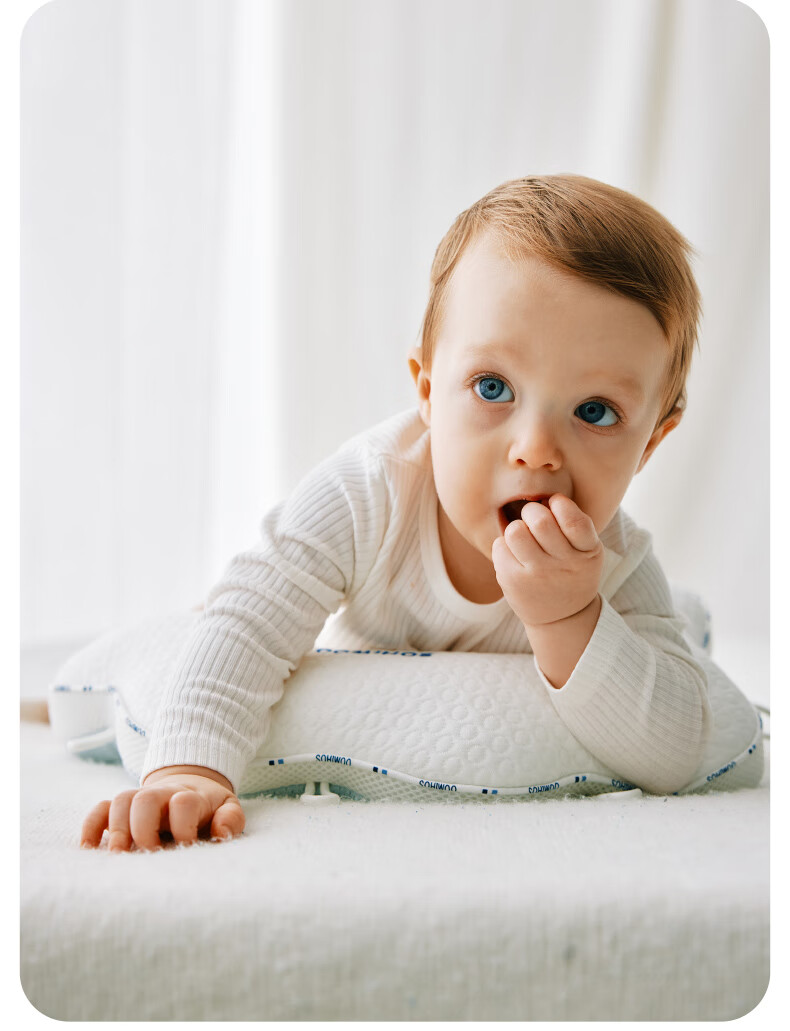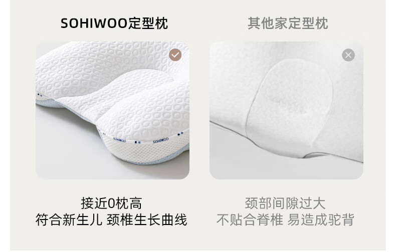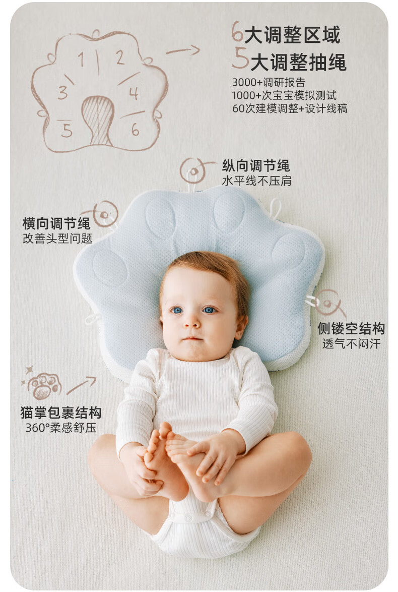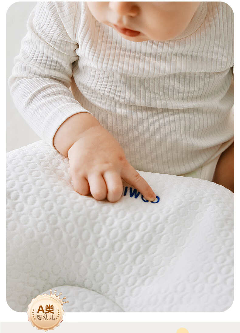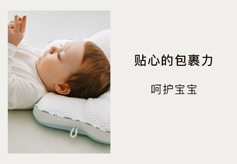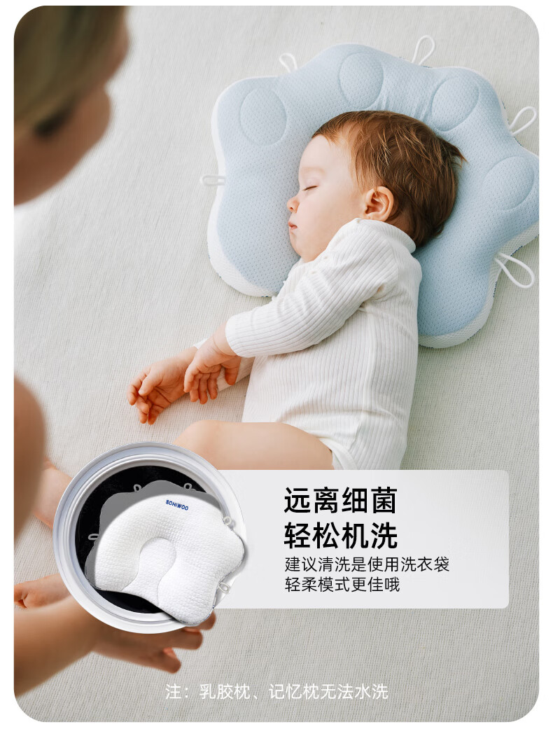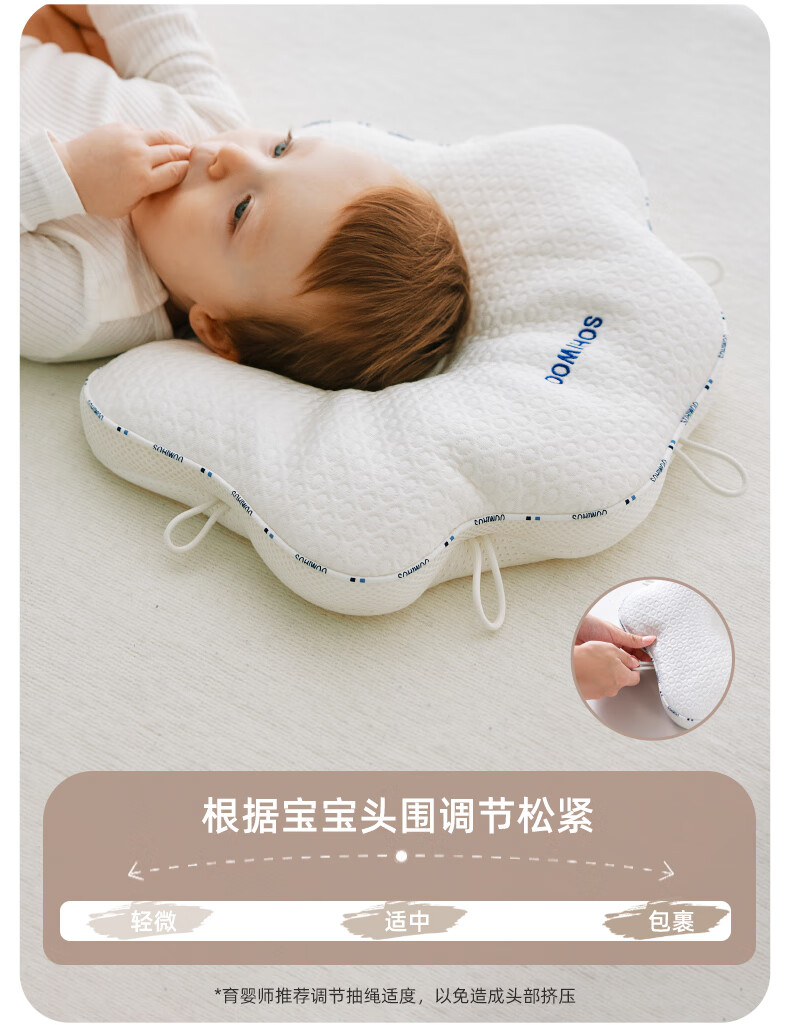 Sohiwoo Baby Shaping Pillow 0-6 Months Sleeping Round Head Pillow Corrects Newborn's Head Shape Breathable Prevents Flat Head Deviation Color Matching White Blue Upgraded Antibacterial and Anti-mite Style 40x29x9cm