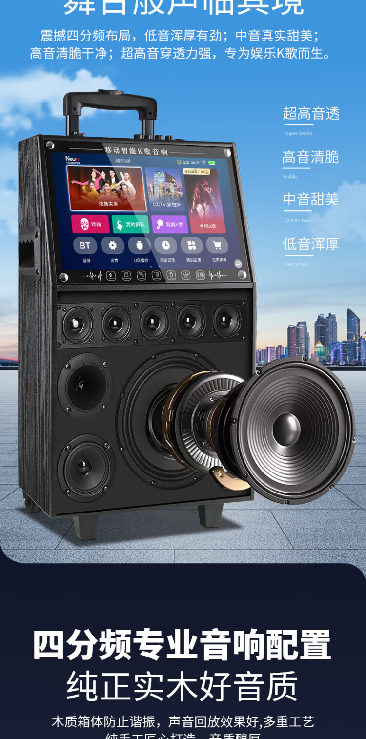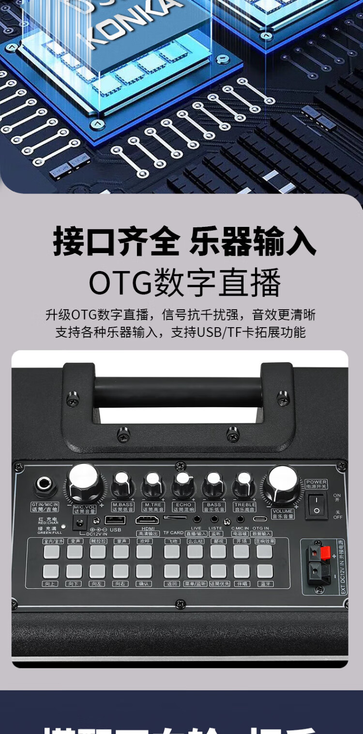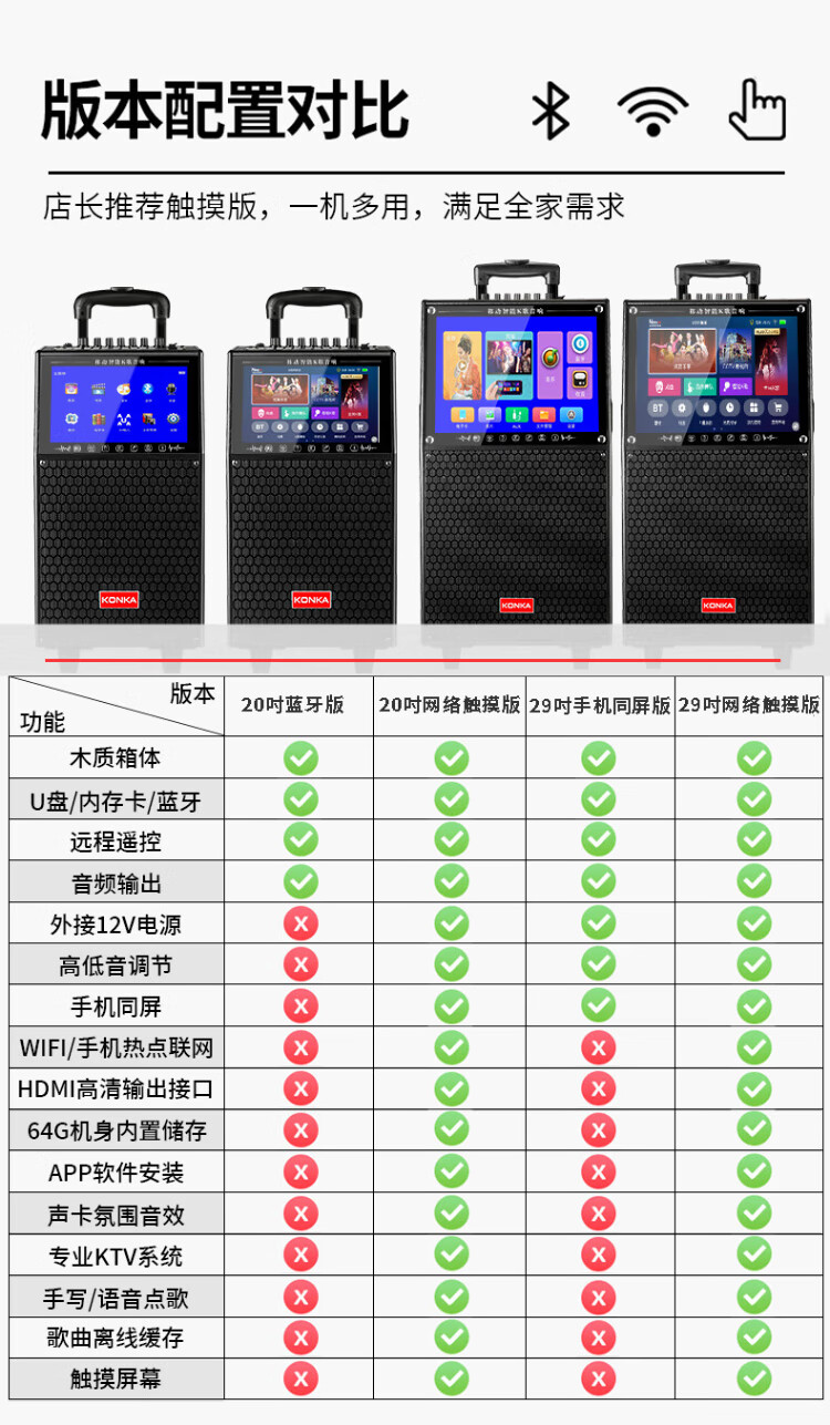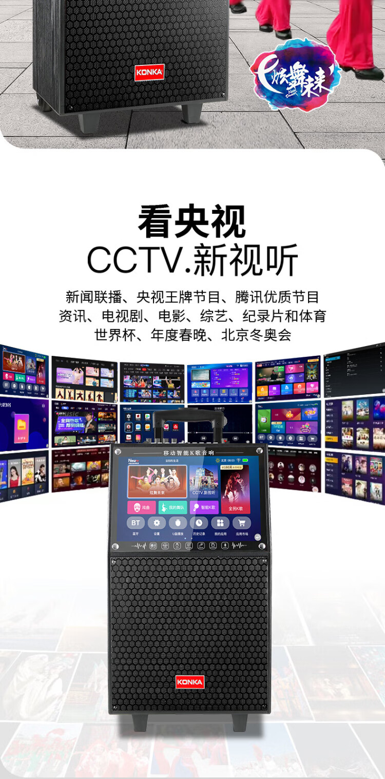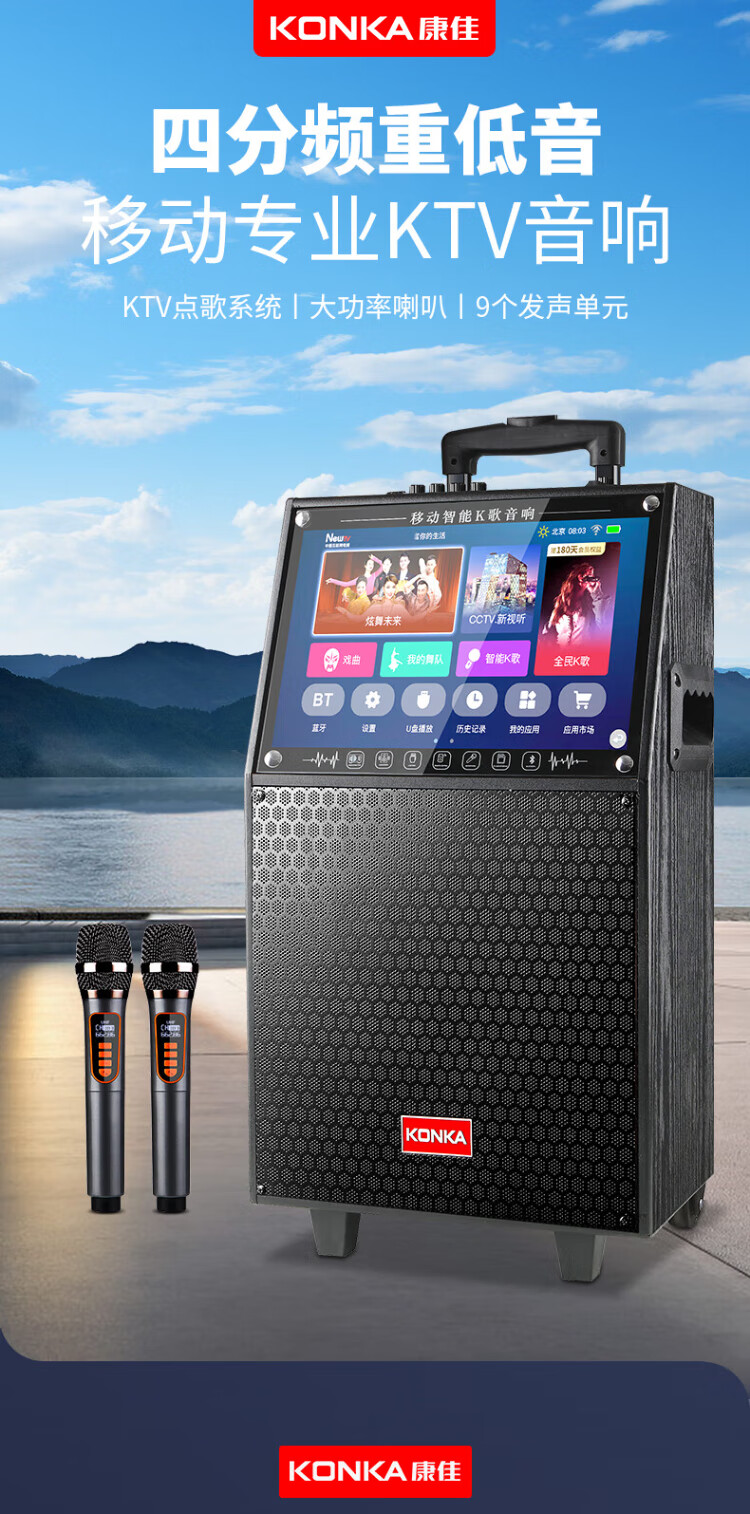 Konka square dance audio with display screen wireless microphone home singing karaoke all-in-one machine outdoor live performance sound card network touch song video trolley speaker 29-inch same-screen version + 1 microphone + 32GU disk