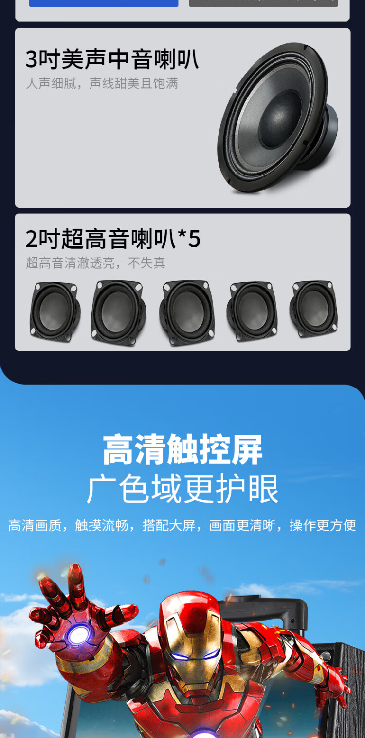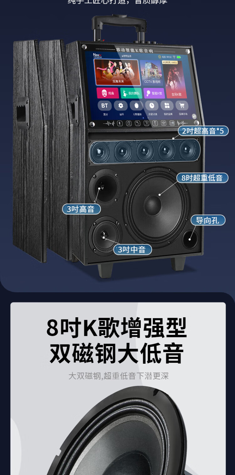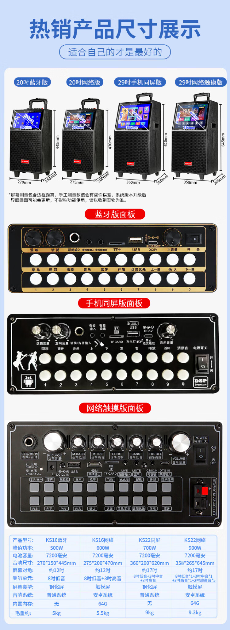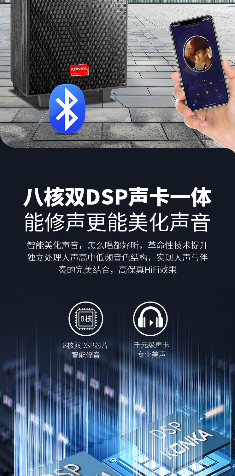 Konka square dance audio with display screen wireless microphone home singing karaoke all-in-one machine outdoor live performance sound card network touch song video trolley speaker 29-inch same-screen version + 1 microphone + 32GU disk