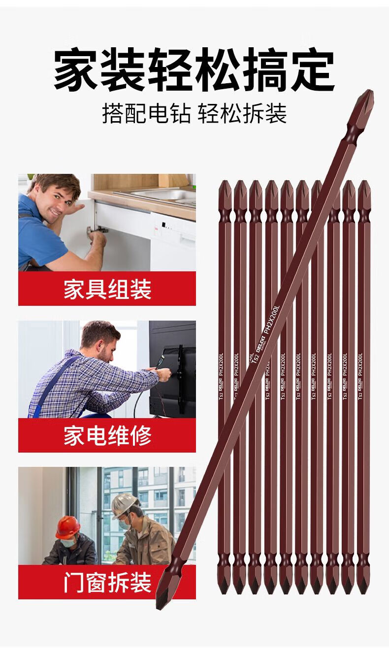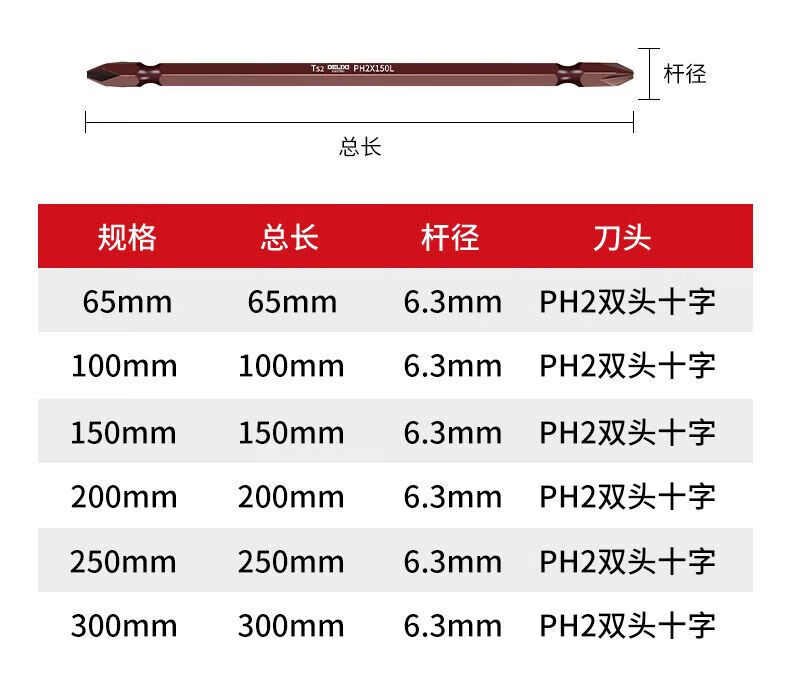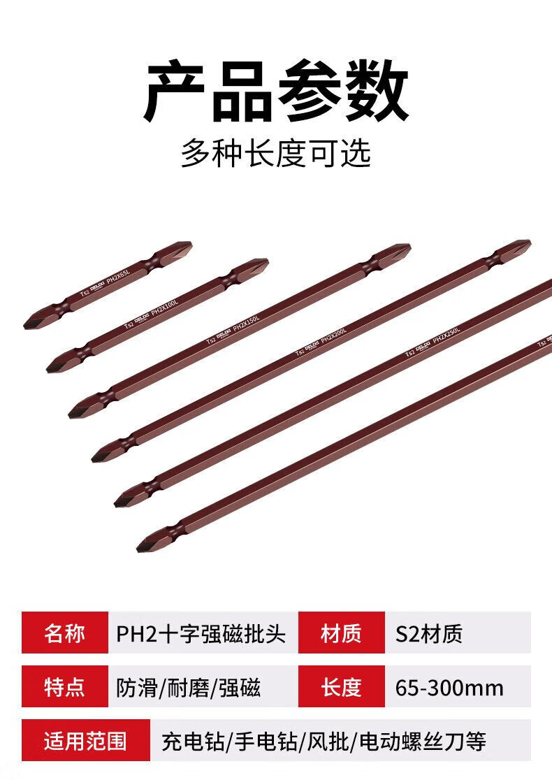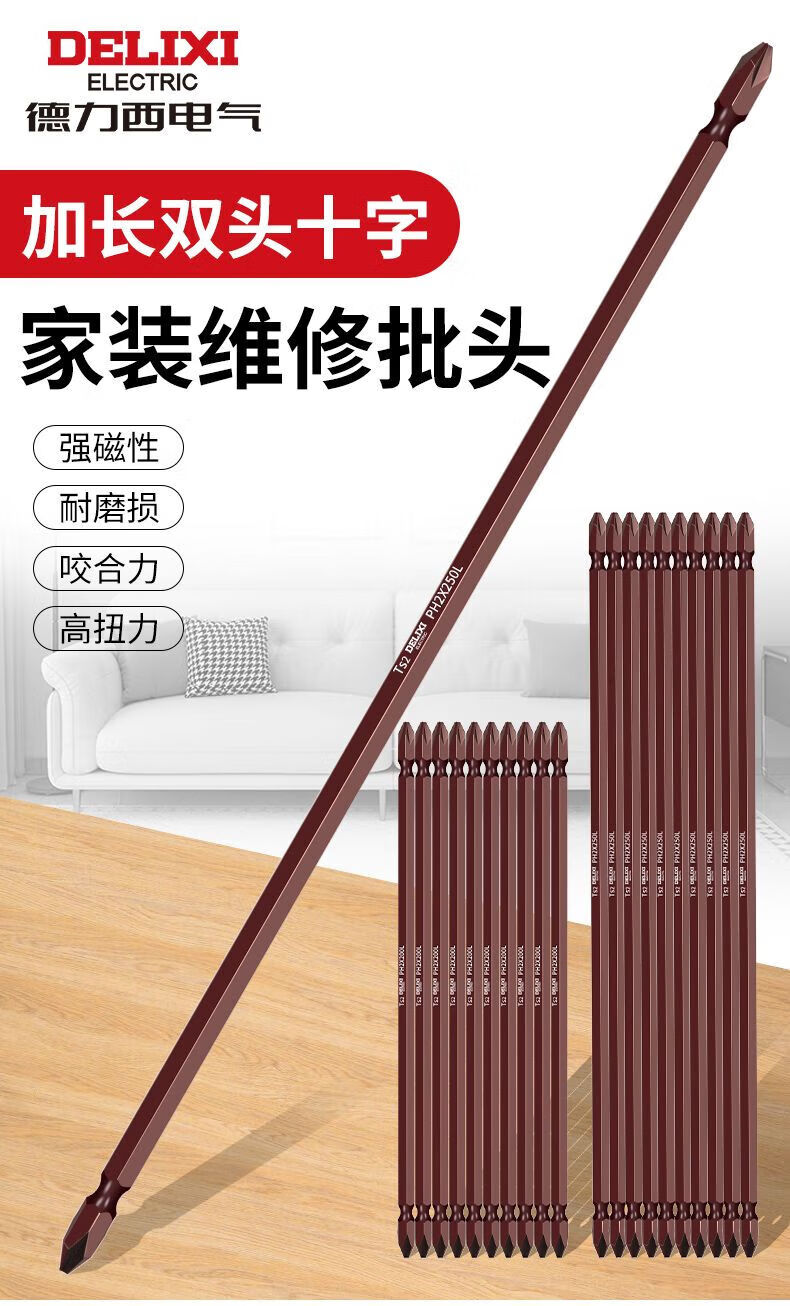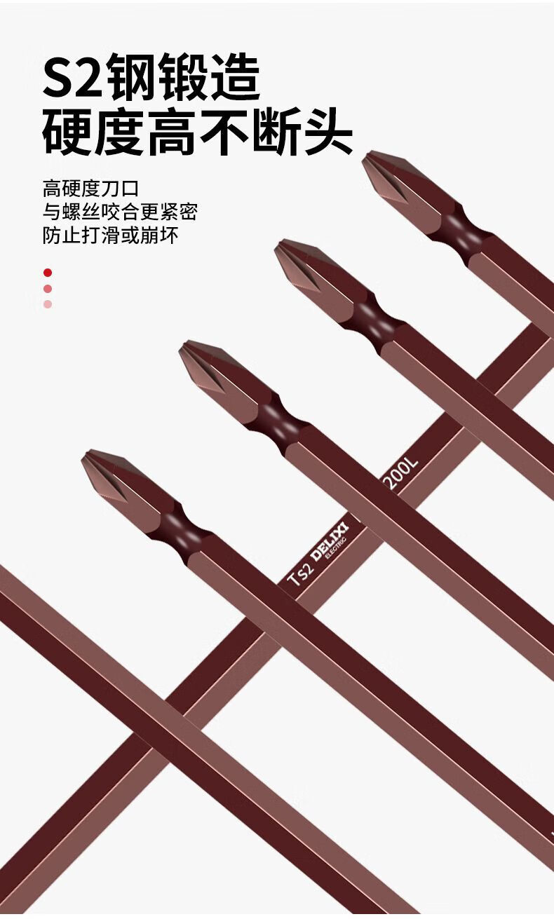 Delixi Electric extended cross bit strong magnetic super hard electric screwdriver hand drill beater electric bit set special 65mm 5 pieces