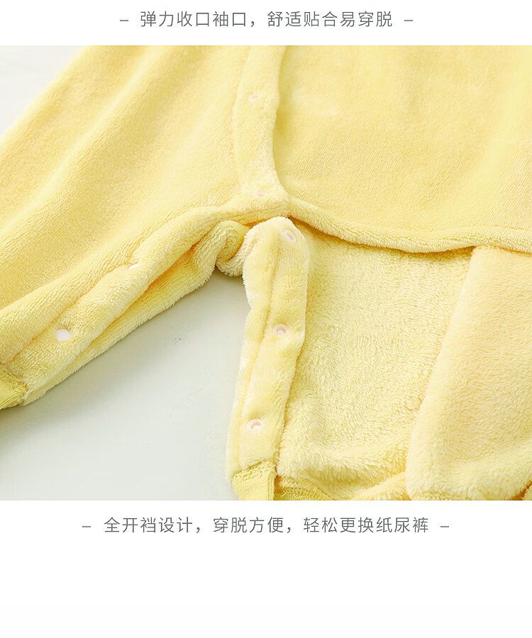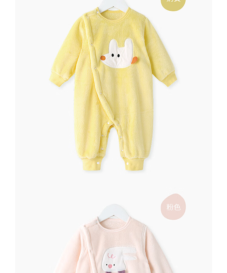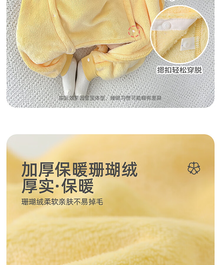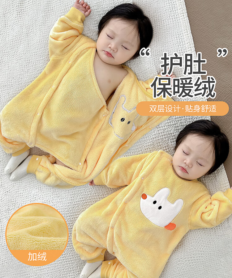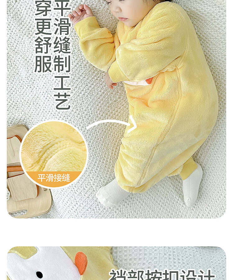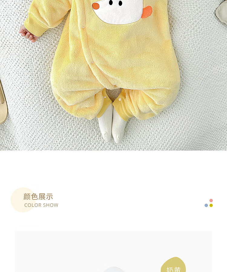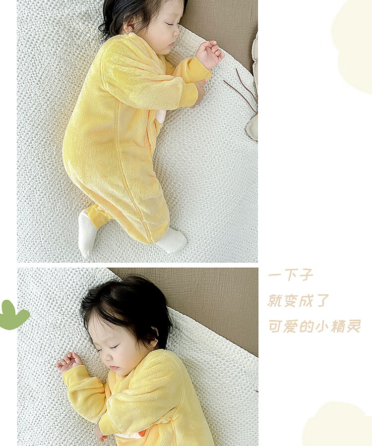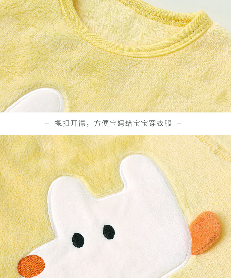 Qilodou baby coral velvet pajamas, autumn and winter plus velvet one-piece clothes for baby girls, winter thermal underwear, flannel winter clothes, custard 73cm