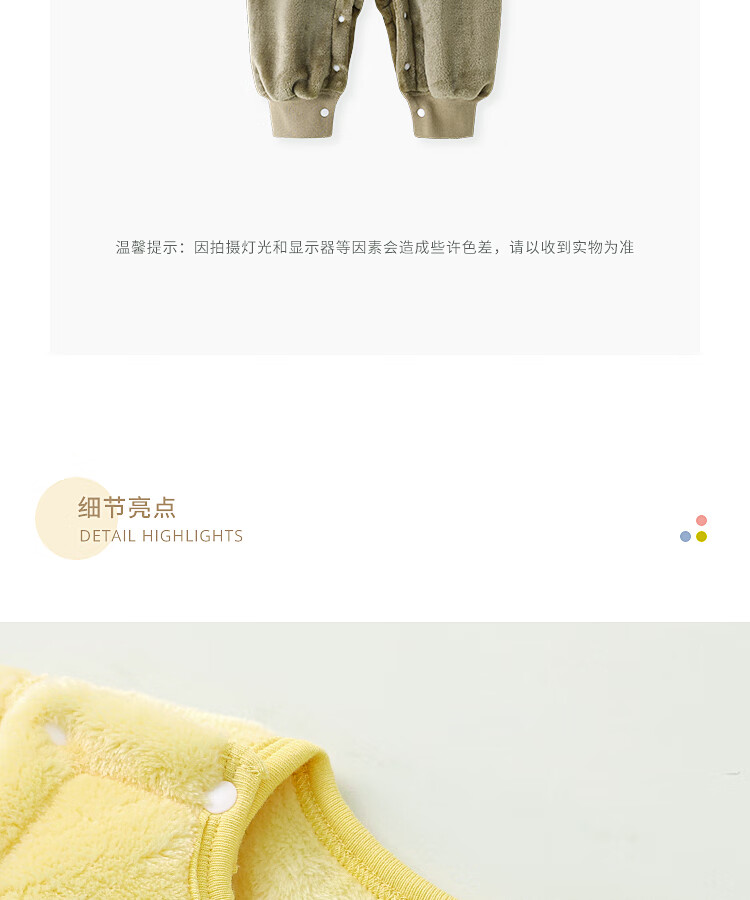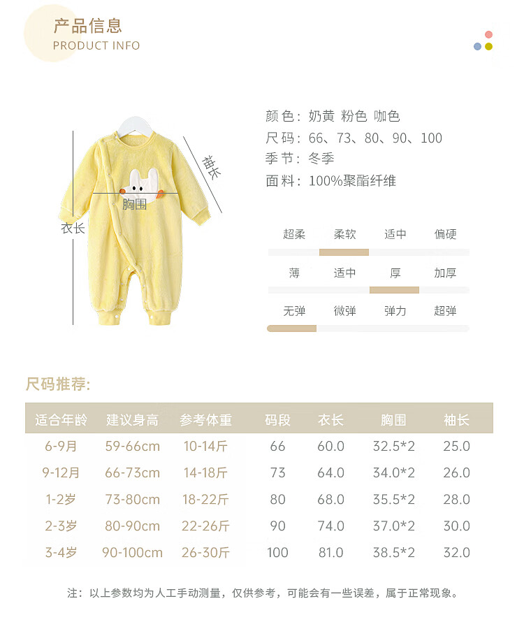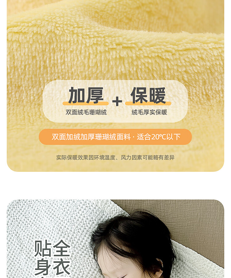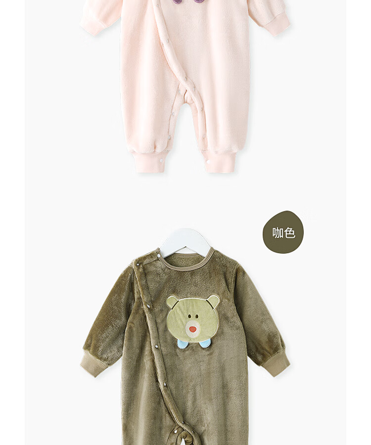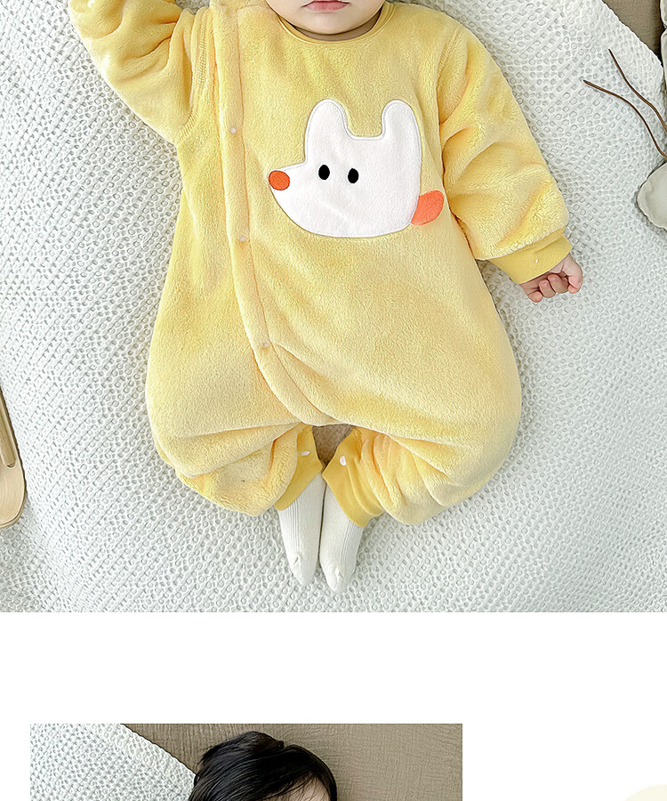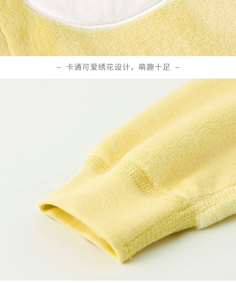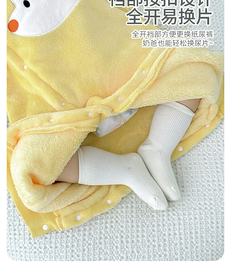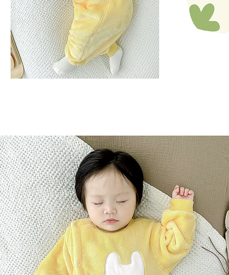 Qilodou baby coral velvet pajamas, autumn and winter plus velvet one-piece clothes for baby girls, winter thermal underwear, flannel winter clothes, custard 73cm