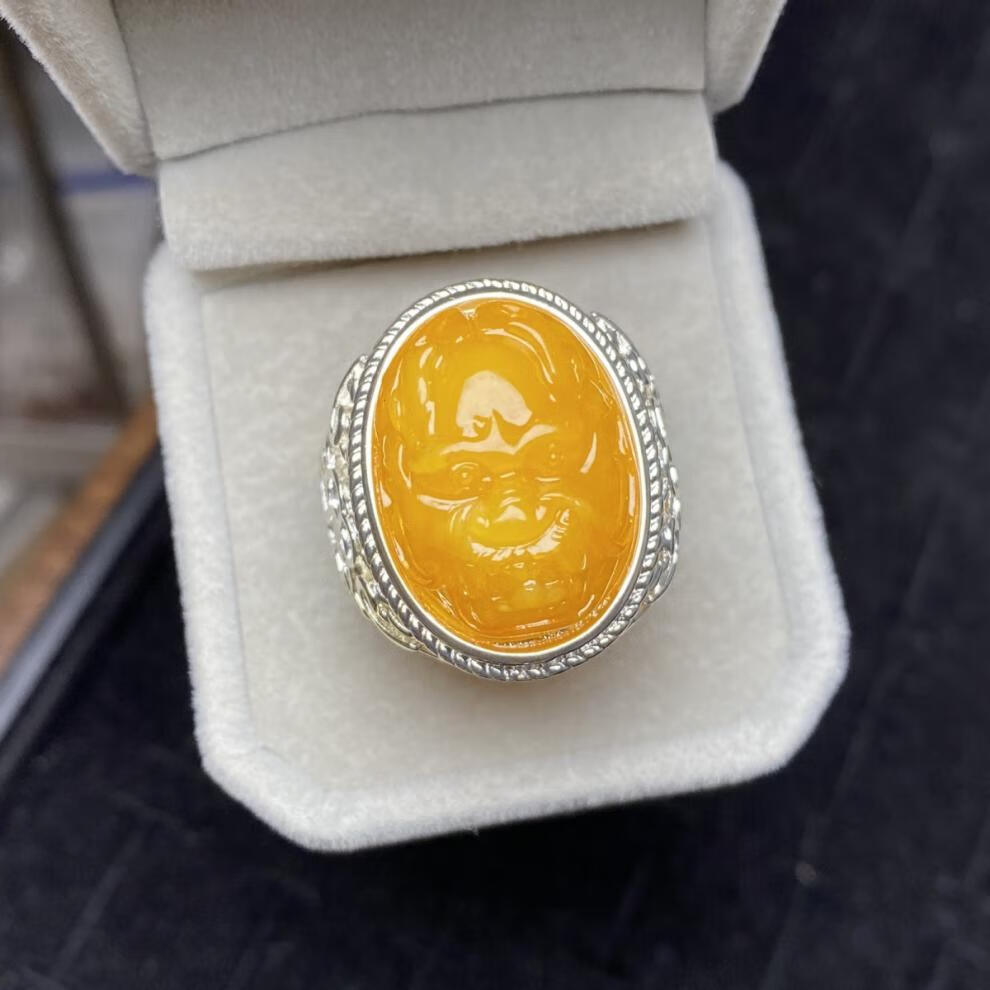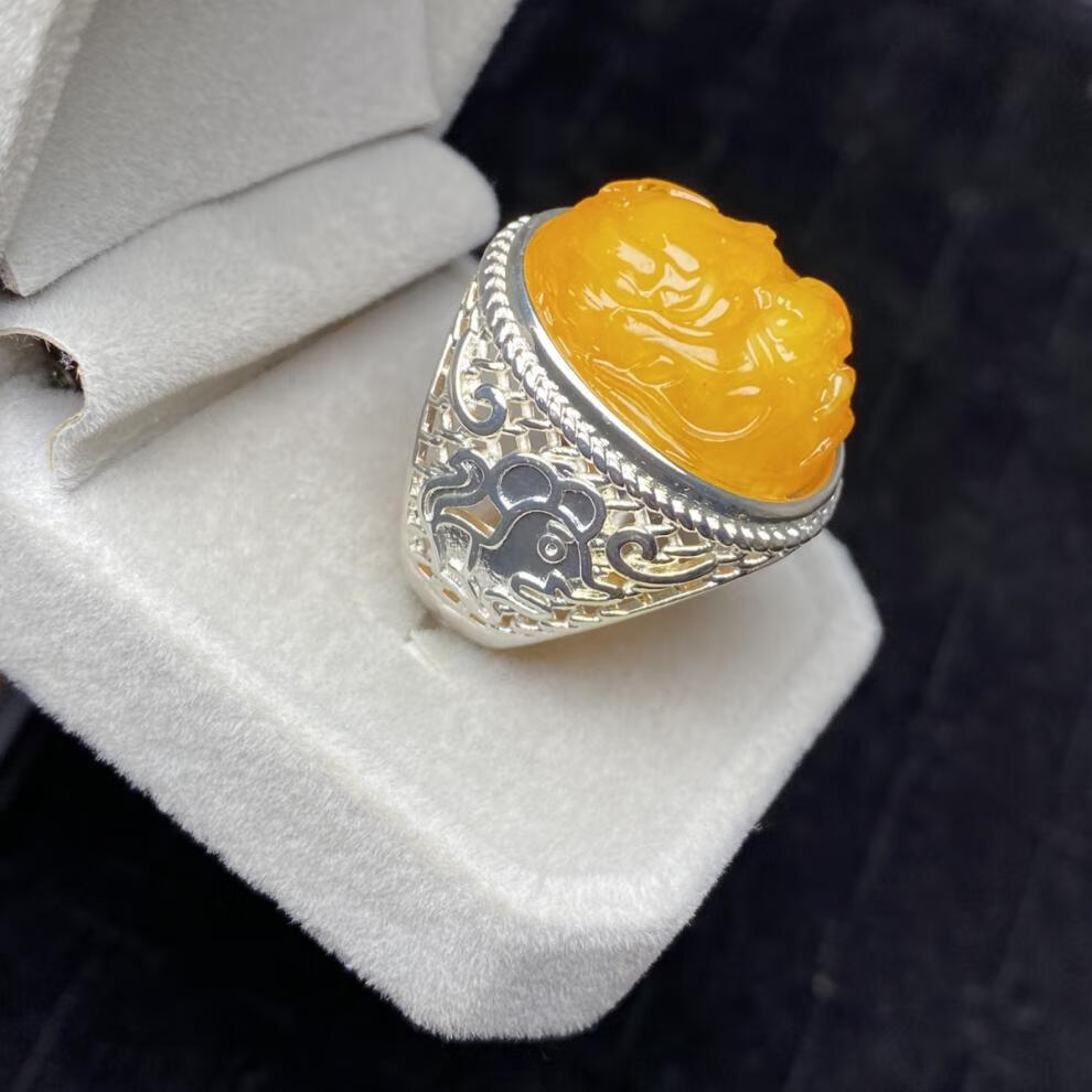Sanskrit beeswax carved large ring, faucet beeswax ring for men, fashionable and lively old honey, chicken fat yellow