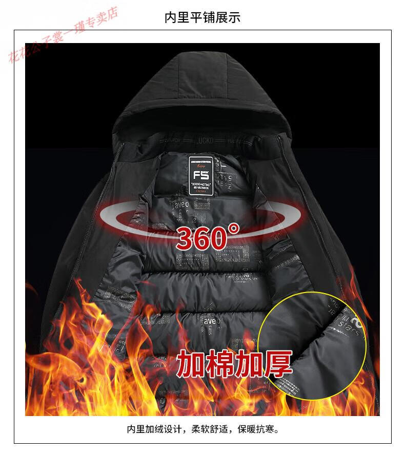 Playboy middle-aged and elderly winter cotton coat thickened dad down cotton coat middle-aged men's cotton padded jacket dad winter coat black L 175 suitable for 90-115 Jin Jin equals 0.5 kg