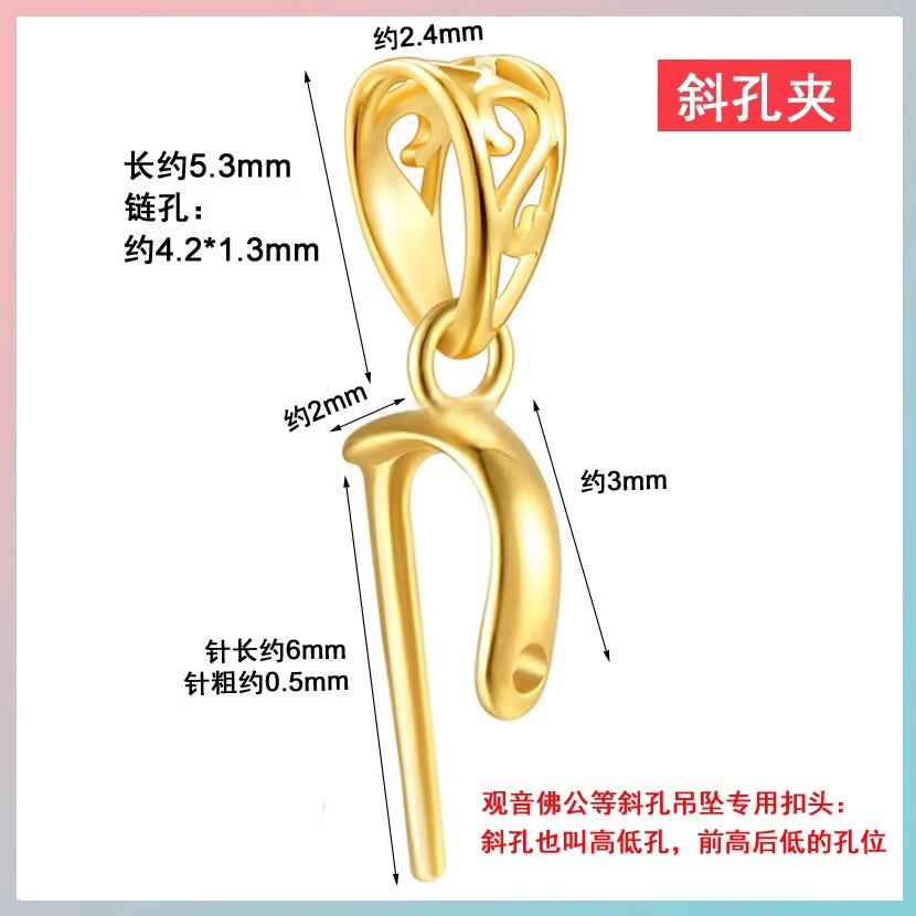 18k gold buckle head S hollow style jade buckle double-sided clip cow nostril pendant buckle Buddha oblique hole buckle thickened melon seed buckle 18K gold S hollow style front and rear clips_regular style