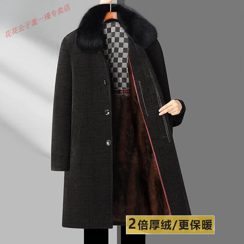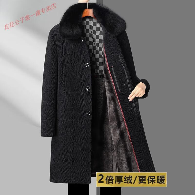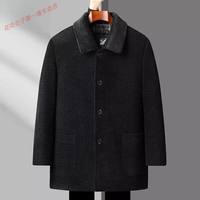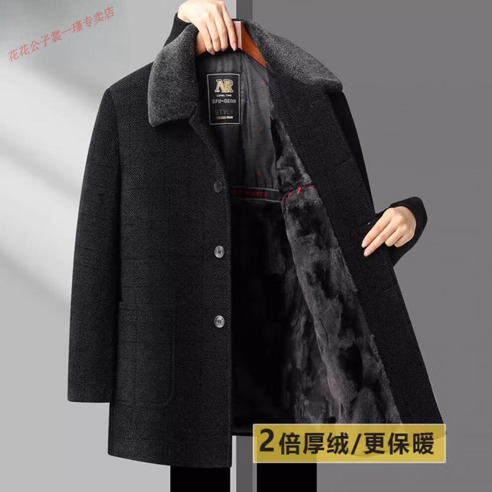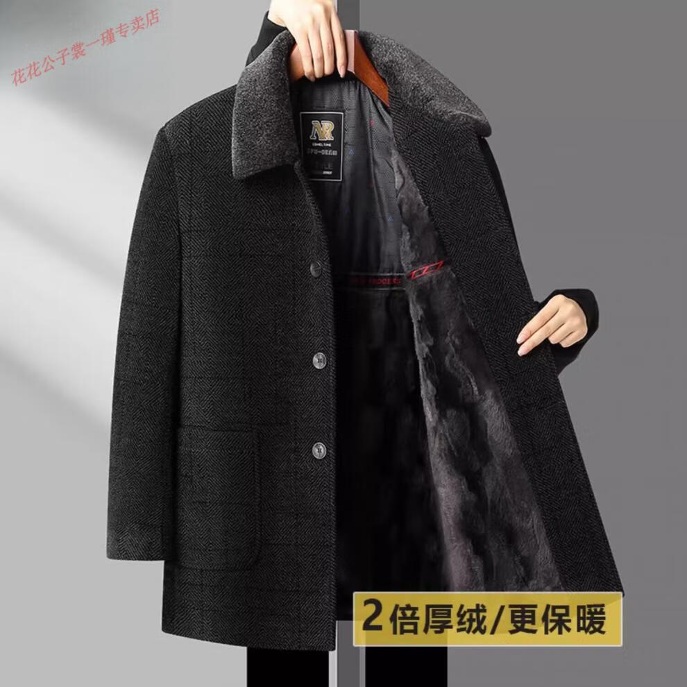 Playboy Dad Winter Jacket Chenille Mid-Length Down Jacket Middle-aged and Elderly Men's Jacket Father's Autumn and Winter Cotton Jacket LX802 Black Gray 2x Thick Velvet Quality Chenille M 170 90-110Jin Jin is equal to 0.5 kg