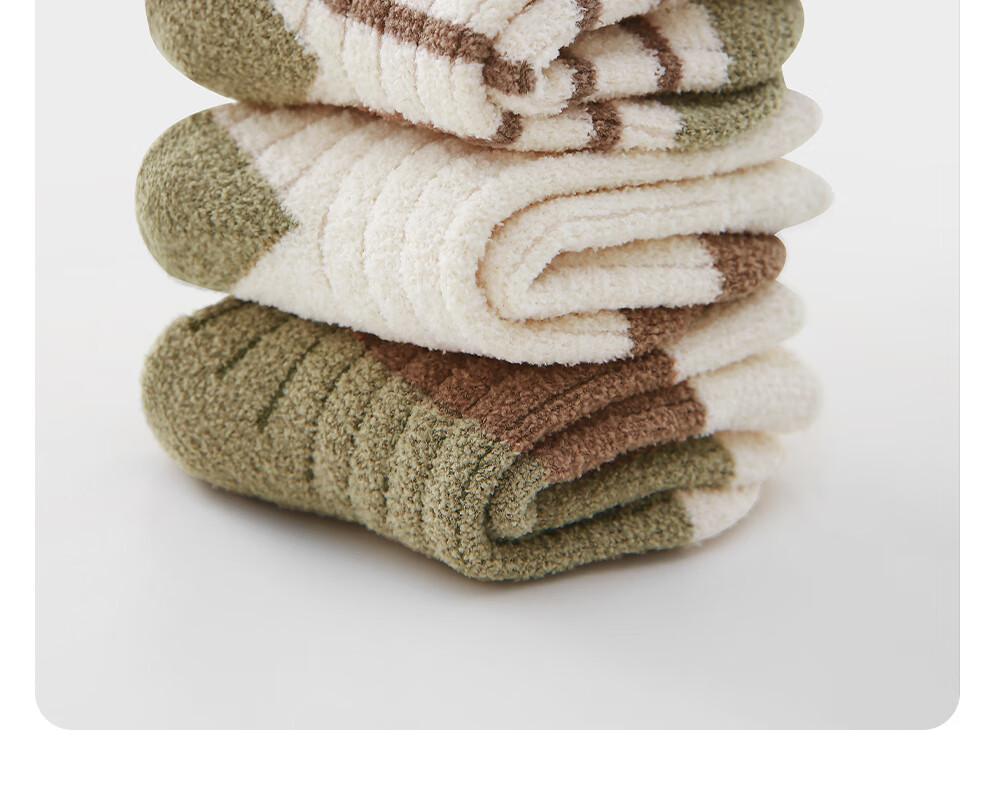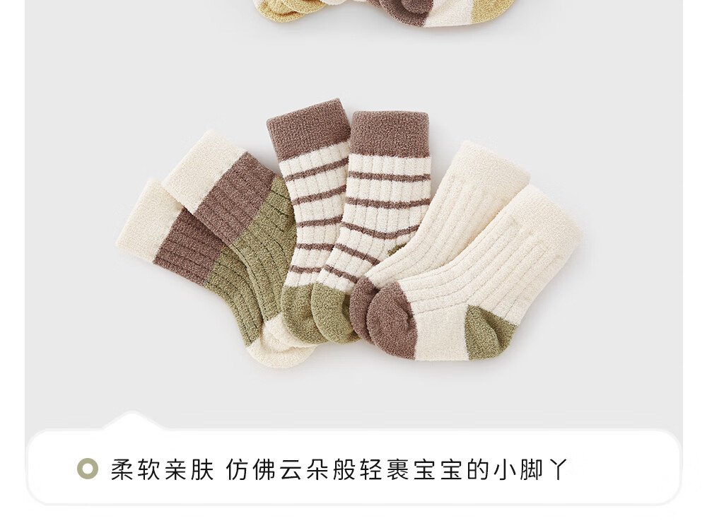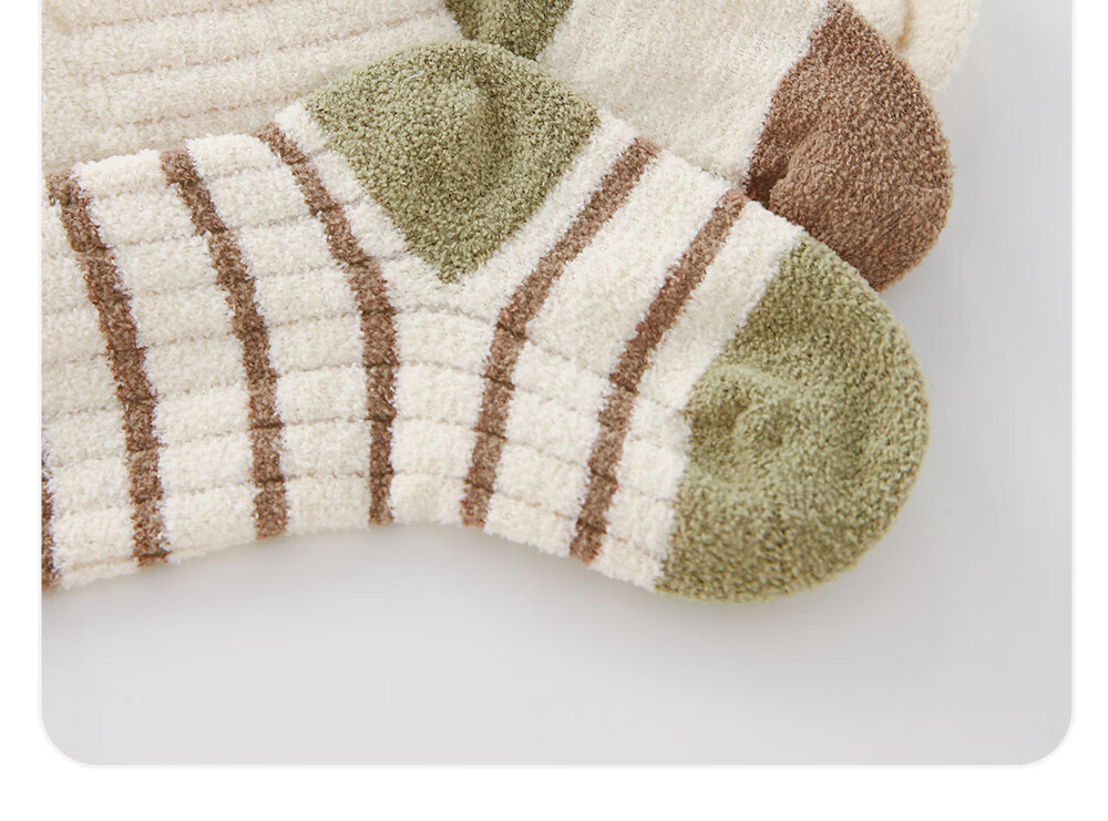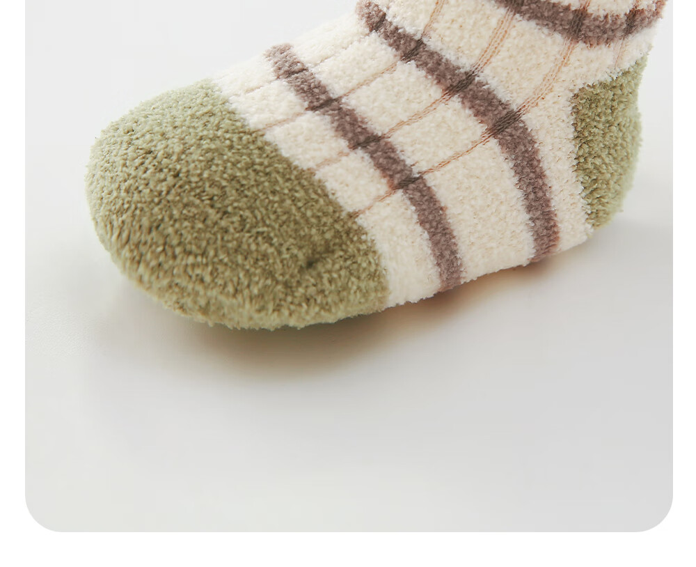 Aengbay Angbei baby socks autumn and winter striped new newborn warm fetal socks boneless socks baby mid-calf stockings green set 3 pairs 12-24 months