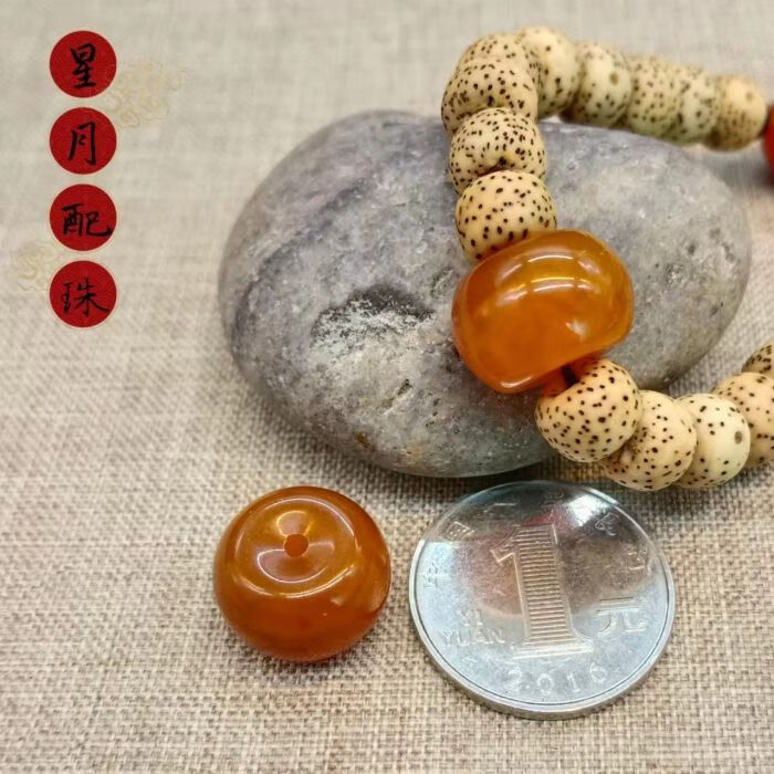 Shengli old beeswax trumpet-mouthed donut pancake pendant diamond star and moon bodhi bracelet top bead with bead accessories diameter 22 thick 14.5mm