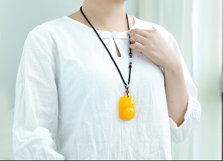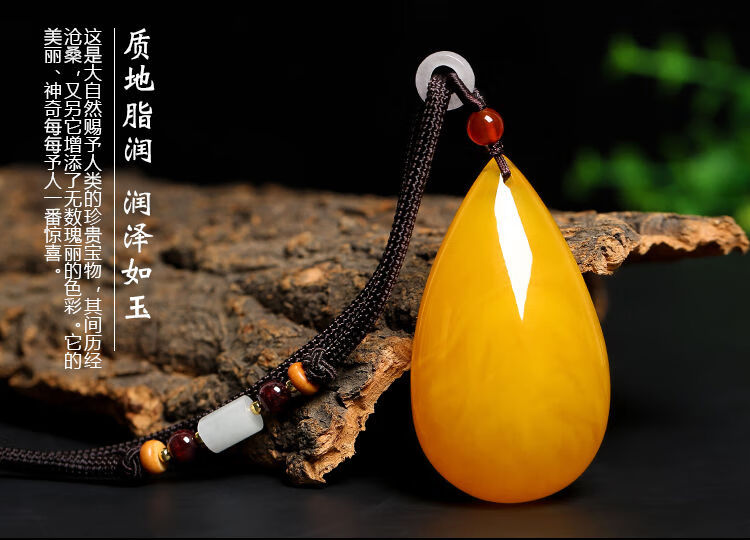 Holy glass beeswax water drop pendant long Daping brand sweater chain second generation amber Pixiu men and women lanyard necklace jewelry water drop lanyard pendant