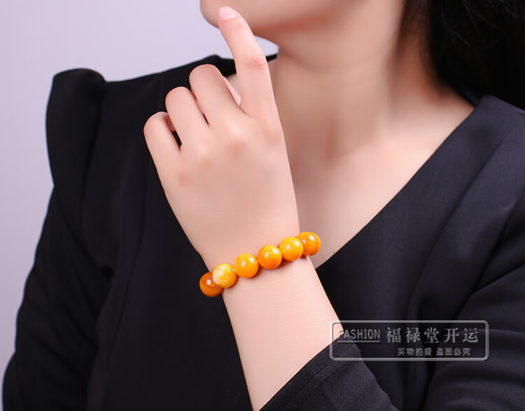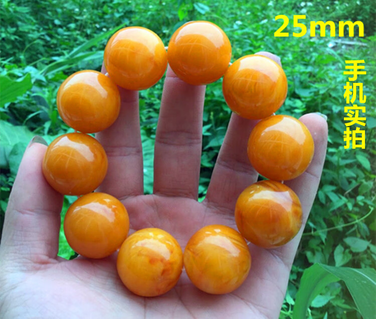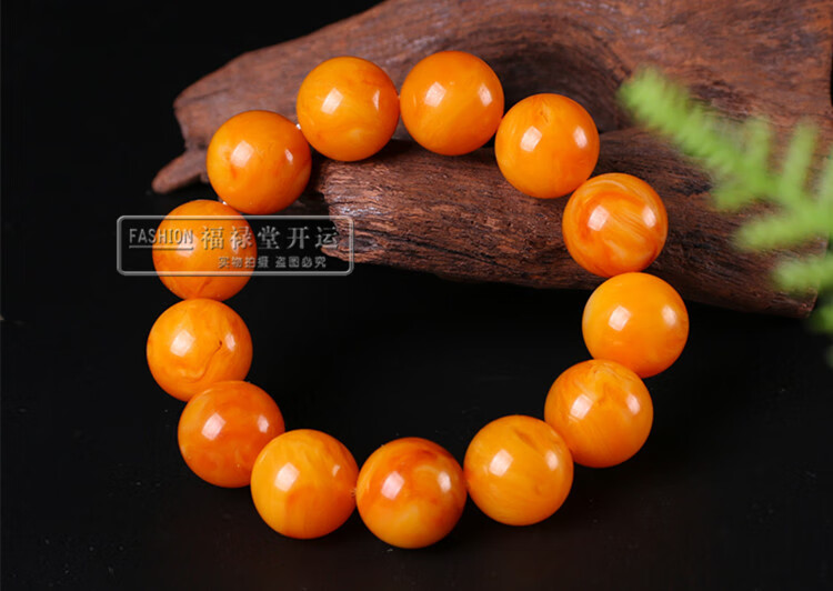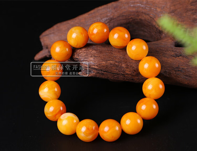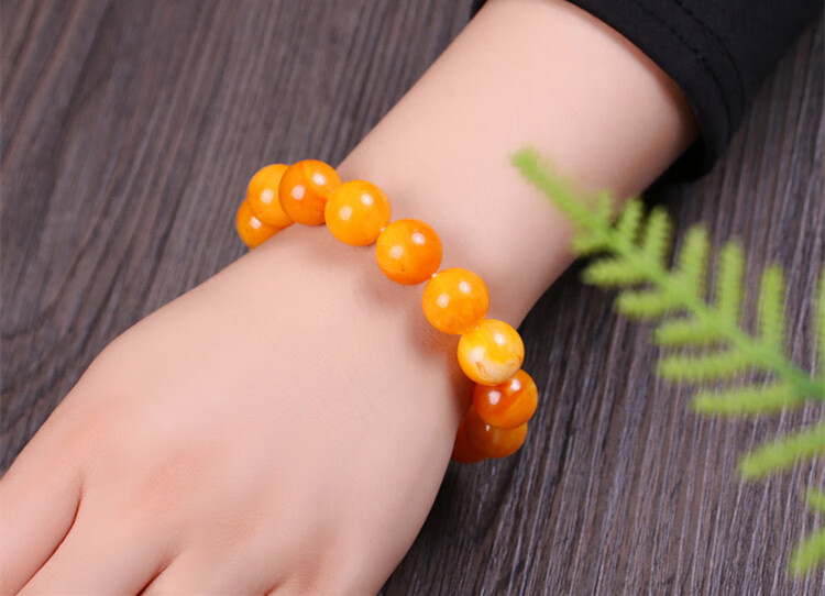 Holy glass is similar to natural chicken fat, yellow old beeswax bracelet, large amber Buddha bead bracelet for men and women, floating in salt water and fluorescent, bead diameter 16mm, 14 beads