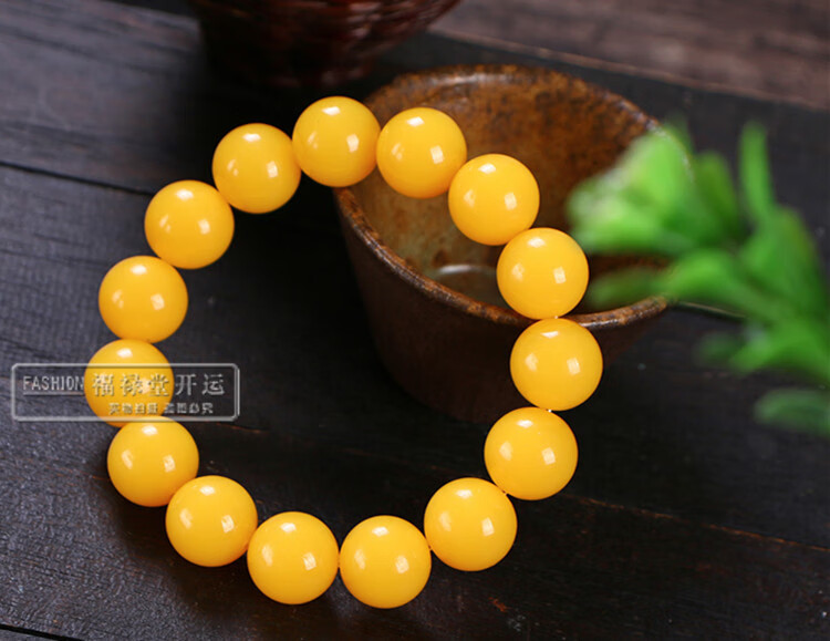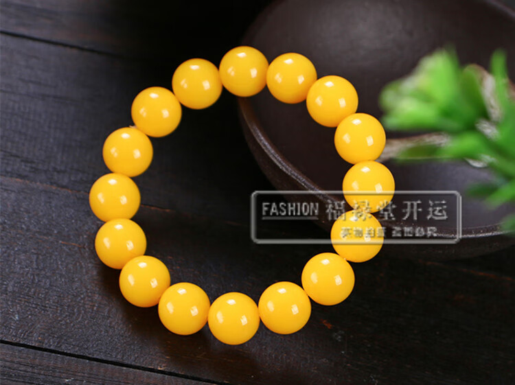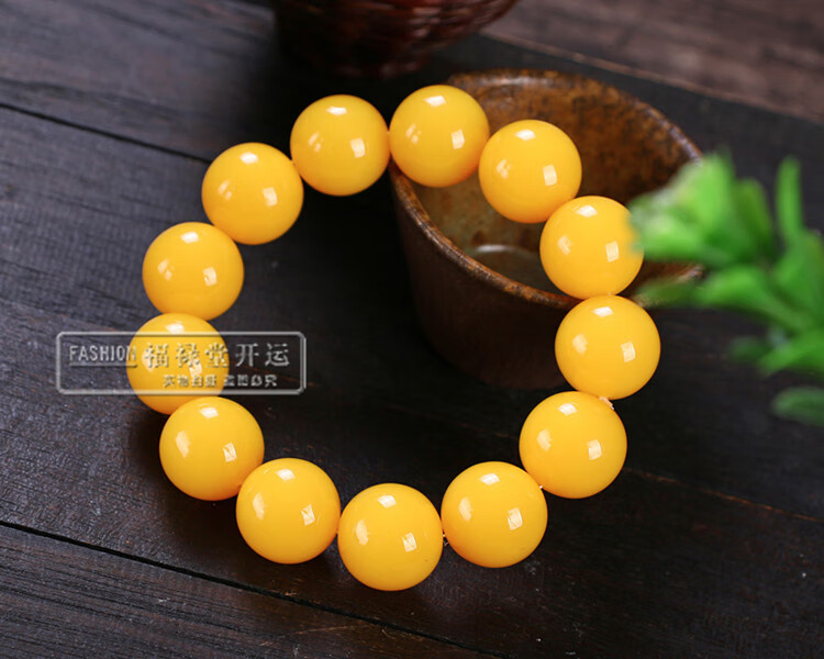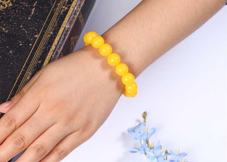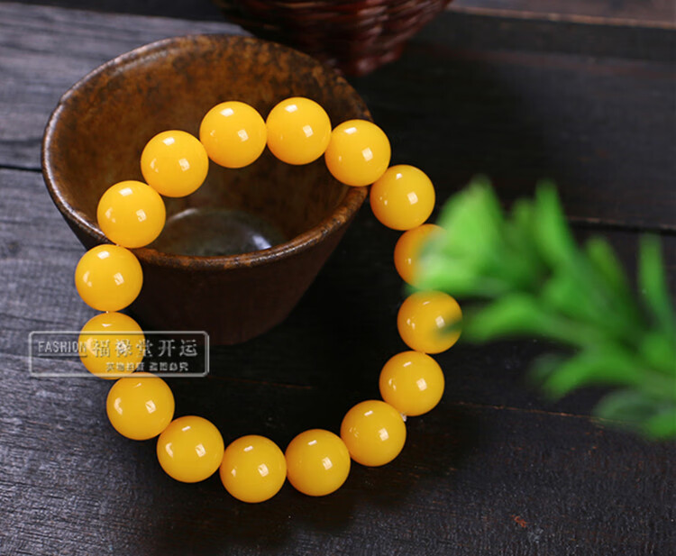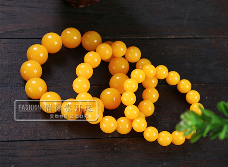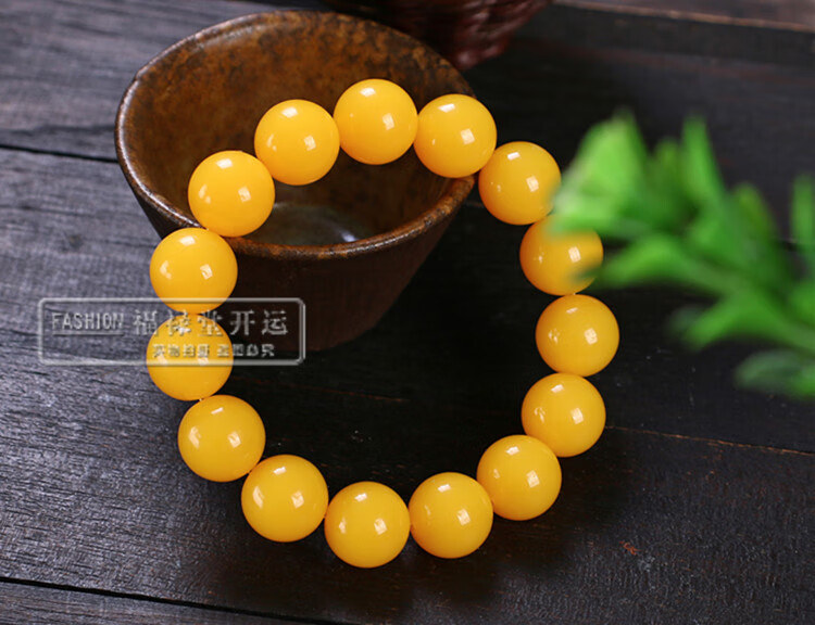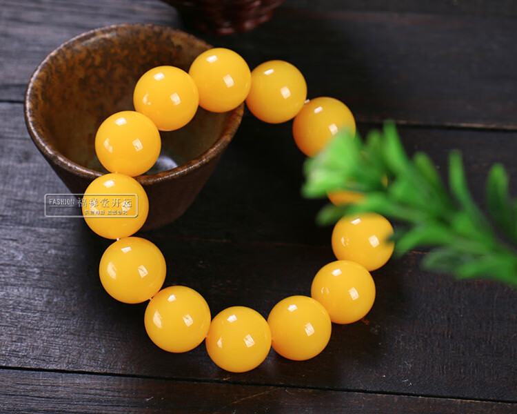 Holy Glass Baltic Sea Pure Yellow Beeswax Bracelet Single Circle Amber Round Bead Old Beeswax Bracelet as a Gift for Leaders Bead Diameter 16mm 14 Beads Slim Men's Style