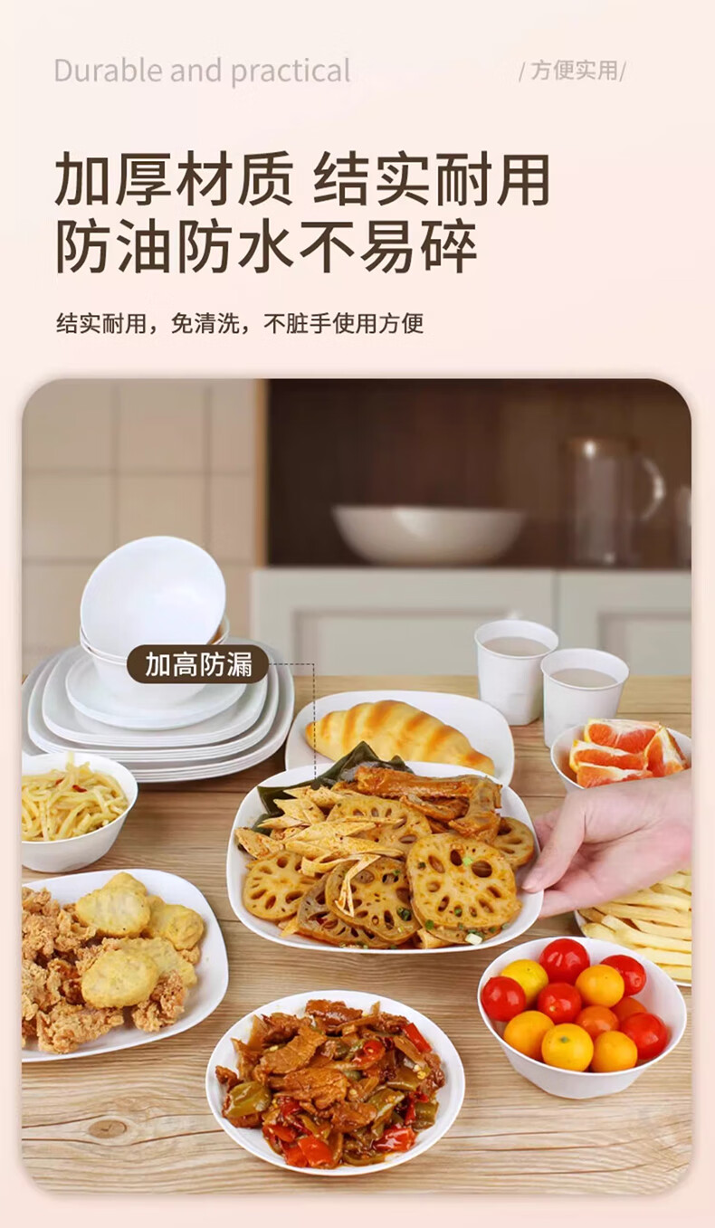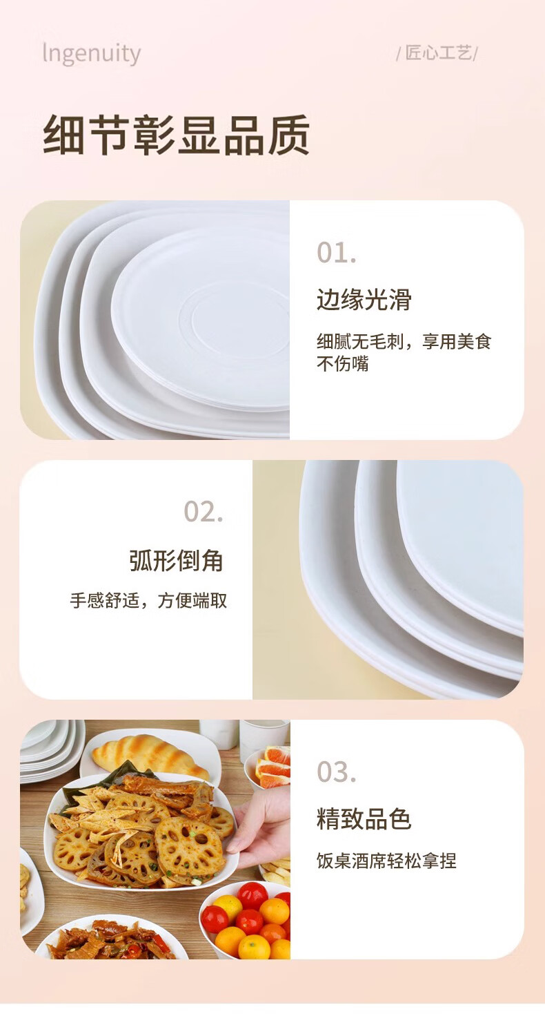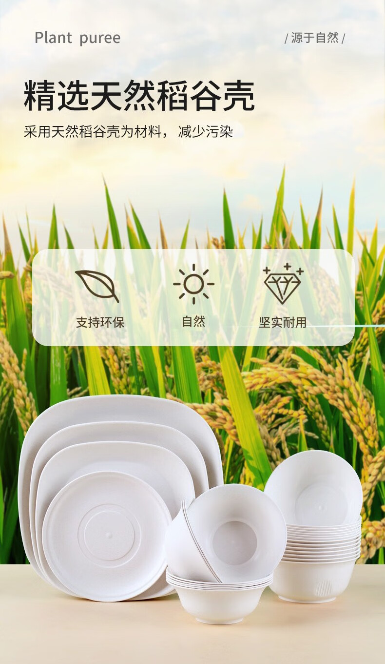 Qidian dinner plate disposable rice husk plate thickened high temperature resistant dish dish barbecue household dish food grade tableware thickened 22.5cm square plate 50 pieces