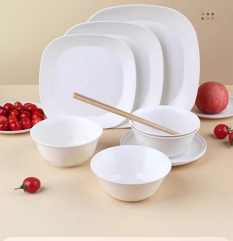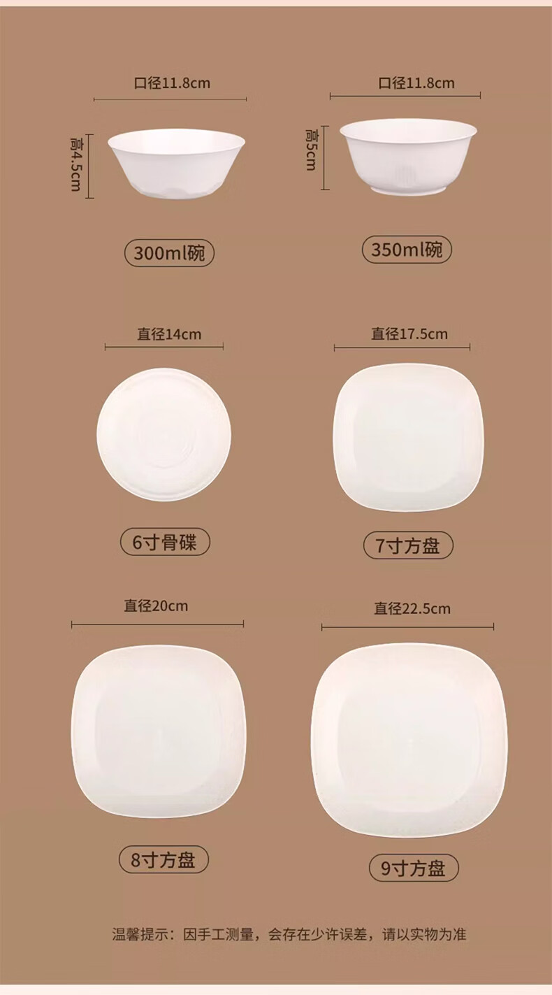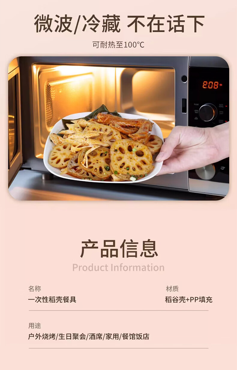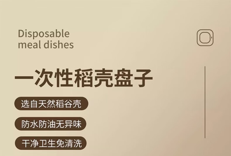 Qidian dinner plate disposable rice husk plate thickened high temperature resistant dish dish barbecue household dish food grade tableware thickened 22.5cm square plate 50 pieces