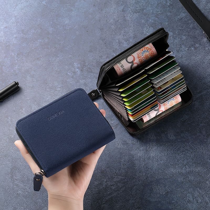 QUEEN TRIP simple card bag for men, multiple card slots, large capacity, anti-theft driver's license, bank card, anti-demagnetization, multi-function wallet, royal blue, medium organ, 24 card slots