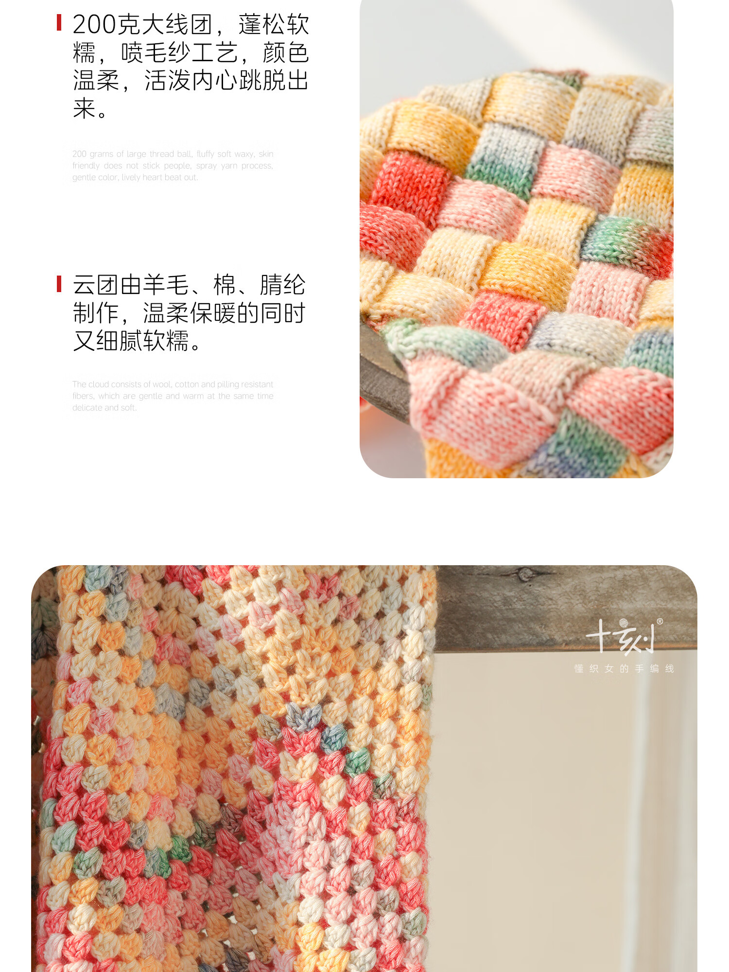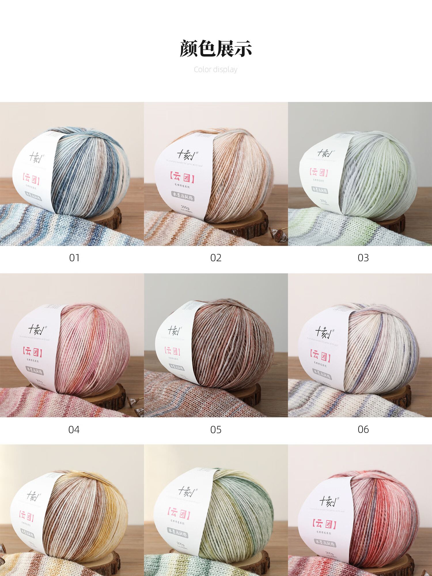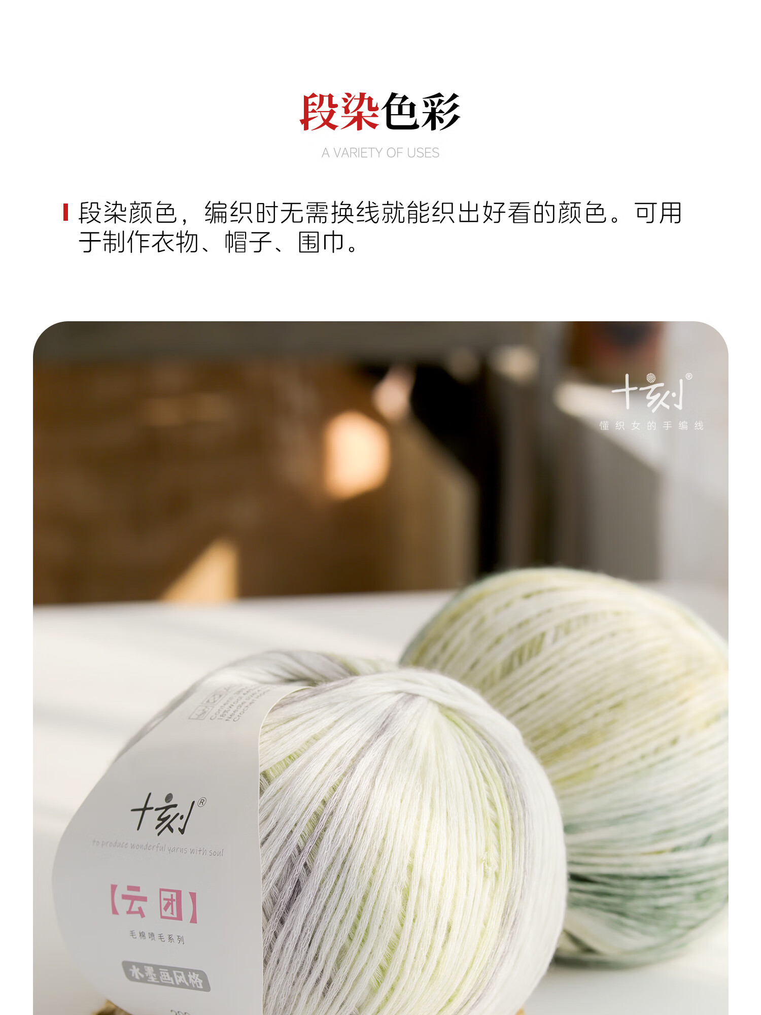 Shiqiyun Tuan Gradient Color Wool Cotton Spray Wool Yarn Scarf Hat Knitting Handmade Skin Friendly and Soft Yun Tuan YT14 200g per ball 1 free white piece for any 3 orders