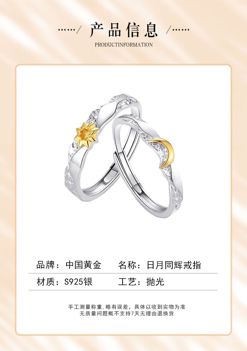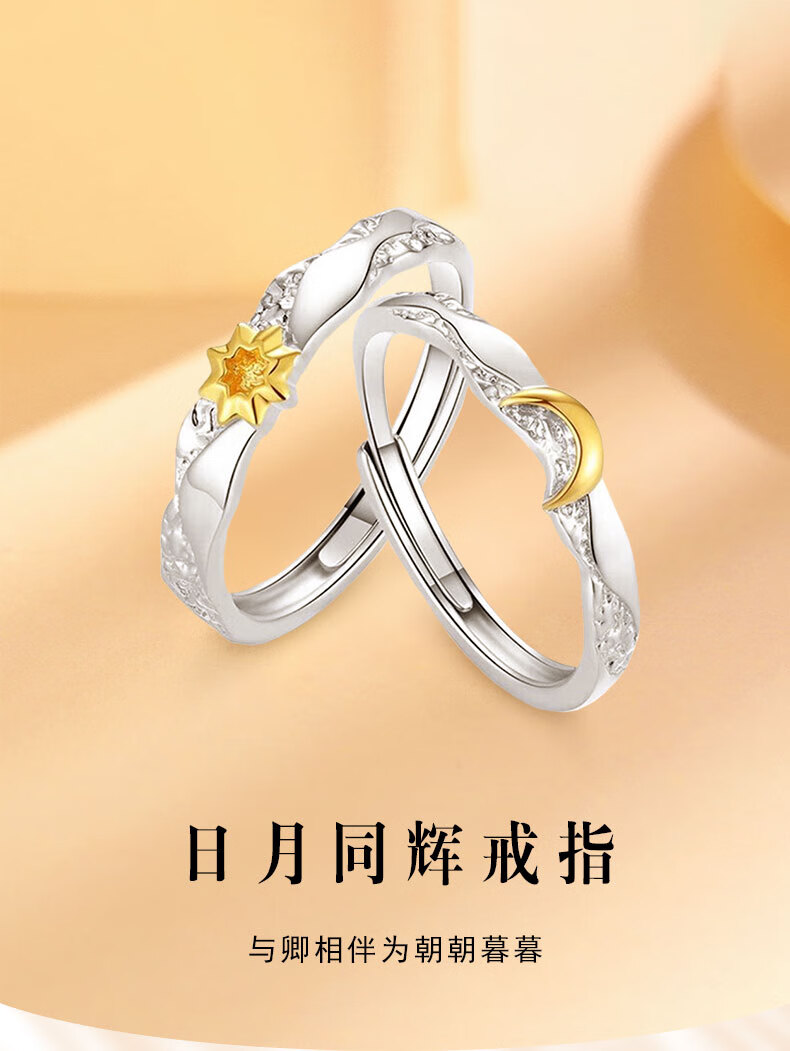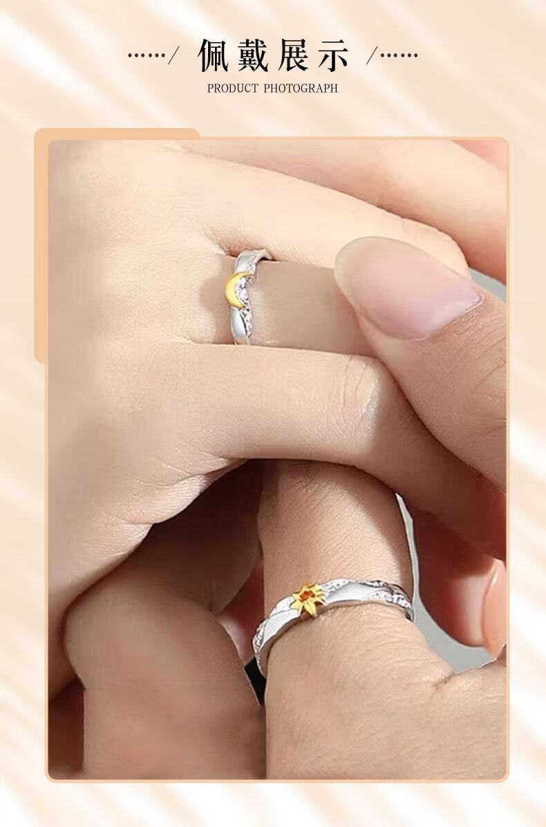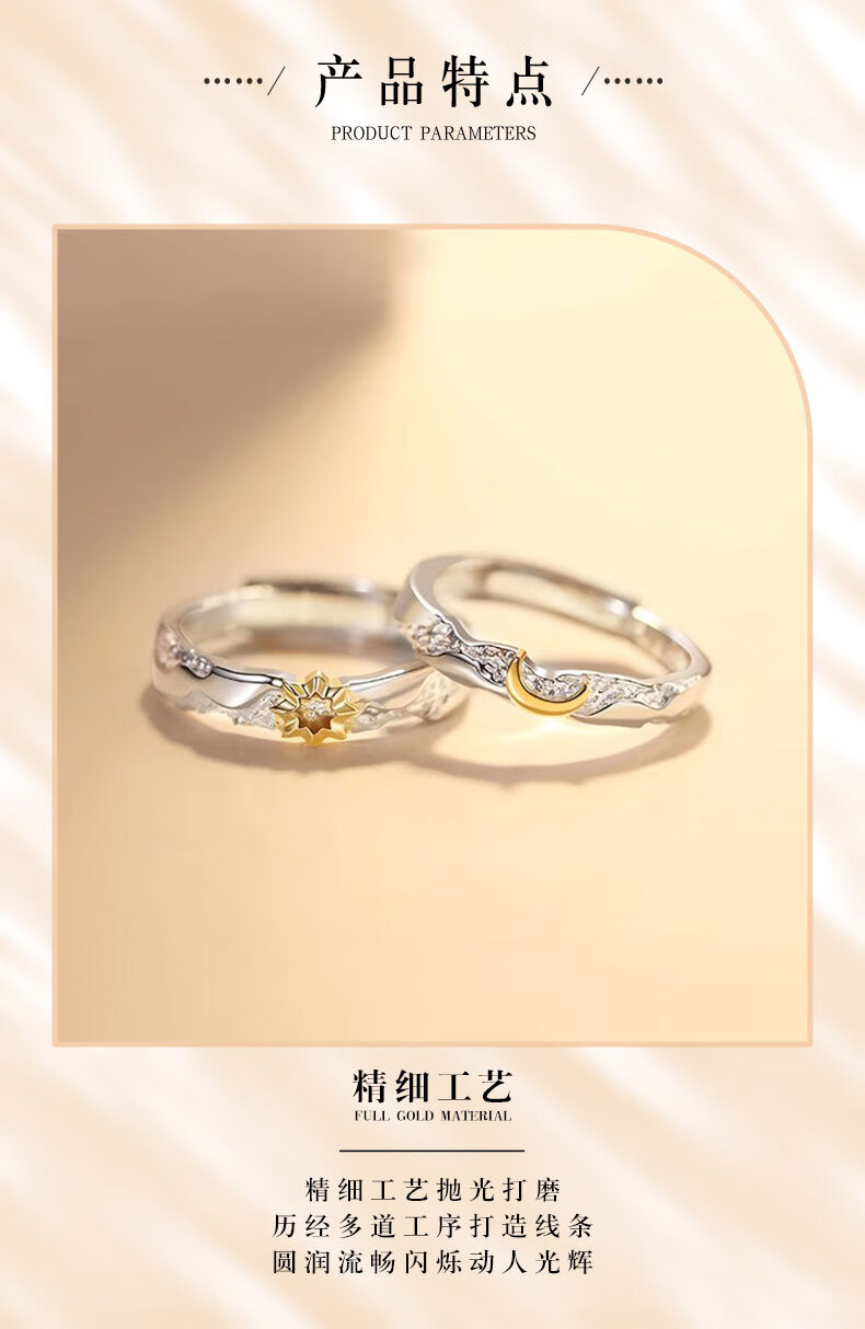 CHINA GOLD S925 Silver Sun and Moon Couple Rings Men and Women Rings Jewelry Valentine's Day Birthday Gifts for Girlfriends Sun and Moon Couple Rings Delivered Today/Next Day