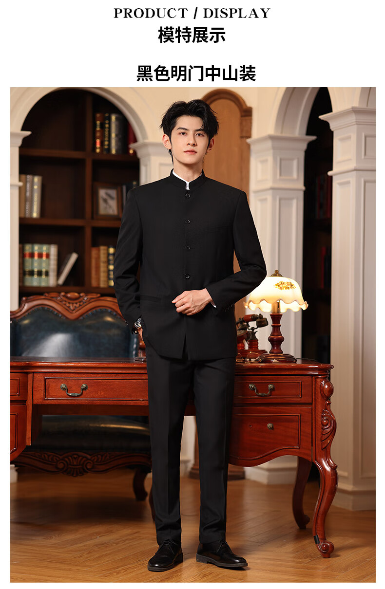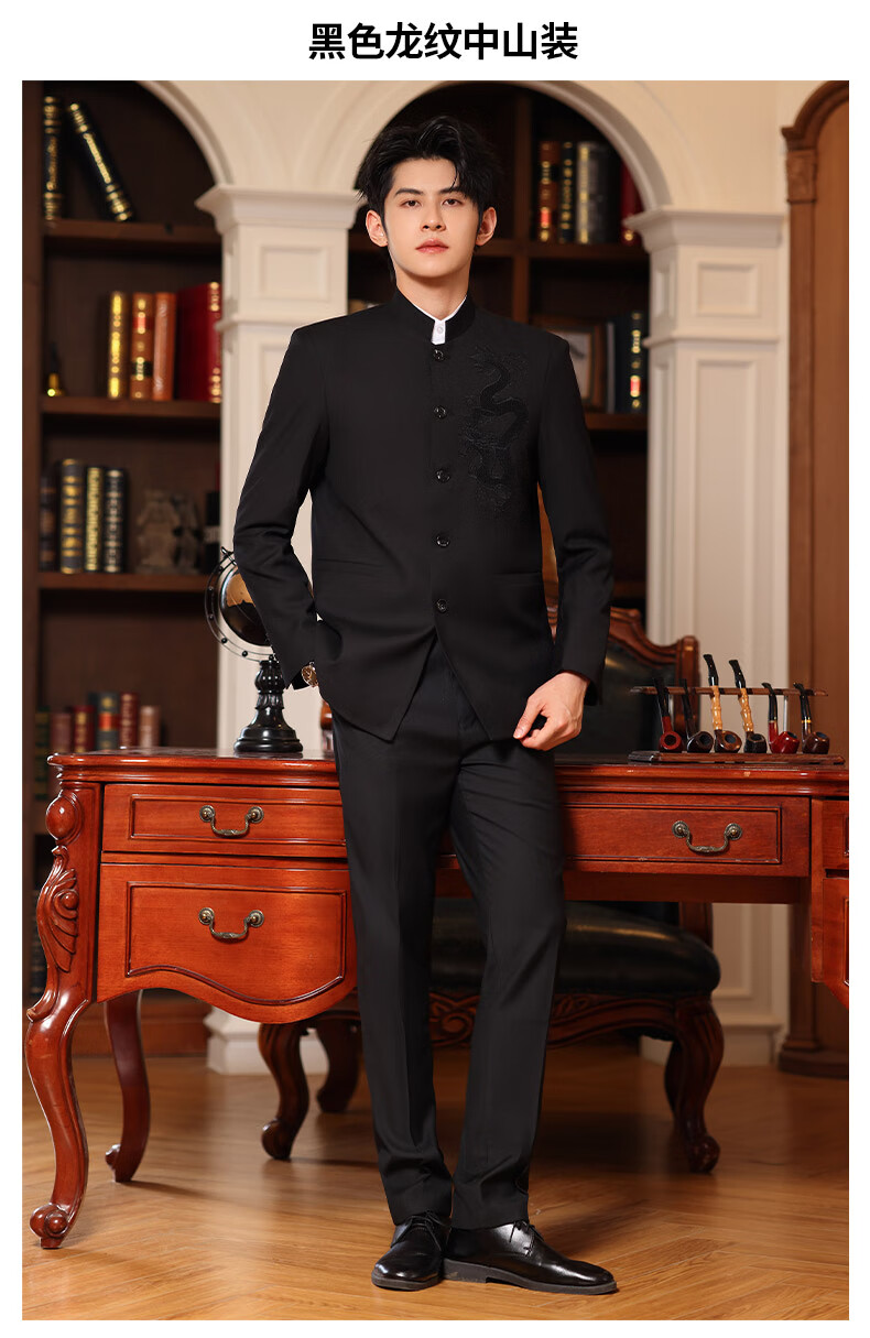 Pierre Cardin Chinese tunic men's suit, middle-aged and young people, slim-fitting Chinese stand-up collar, performing Chinese style wedding, groomsmen, Chinese style, navy blue clothes and pants 165, weight 100 to 110 Jin Jin is equal to about 0.5 kilograms