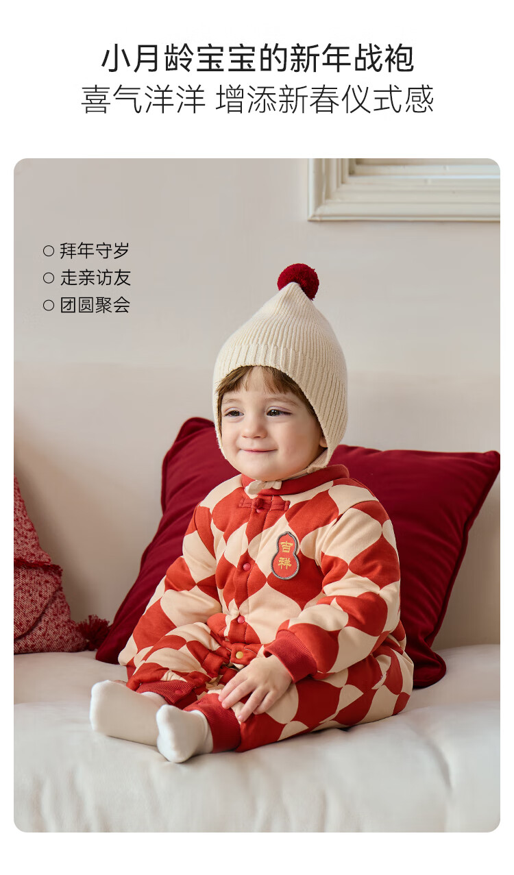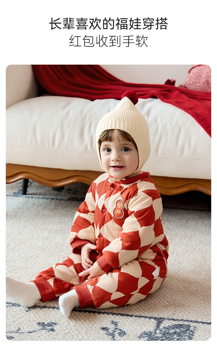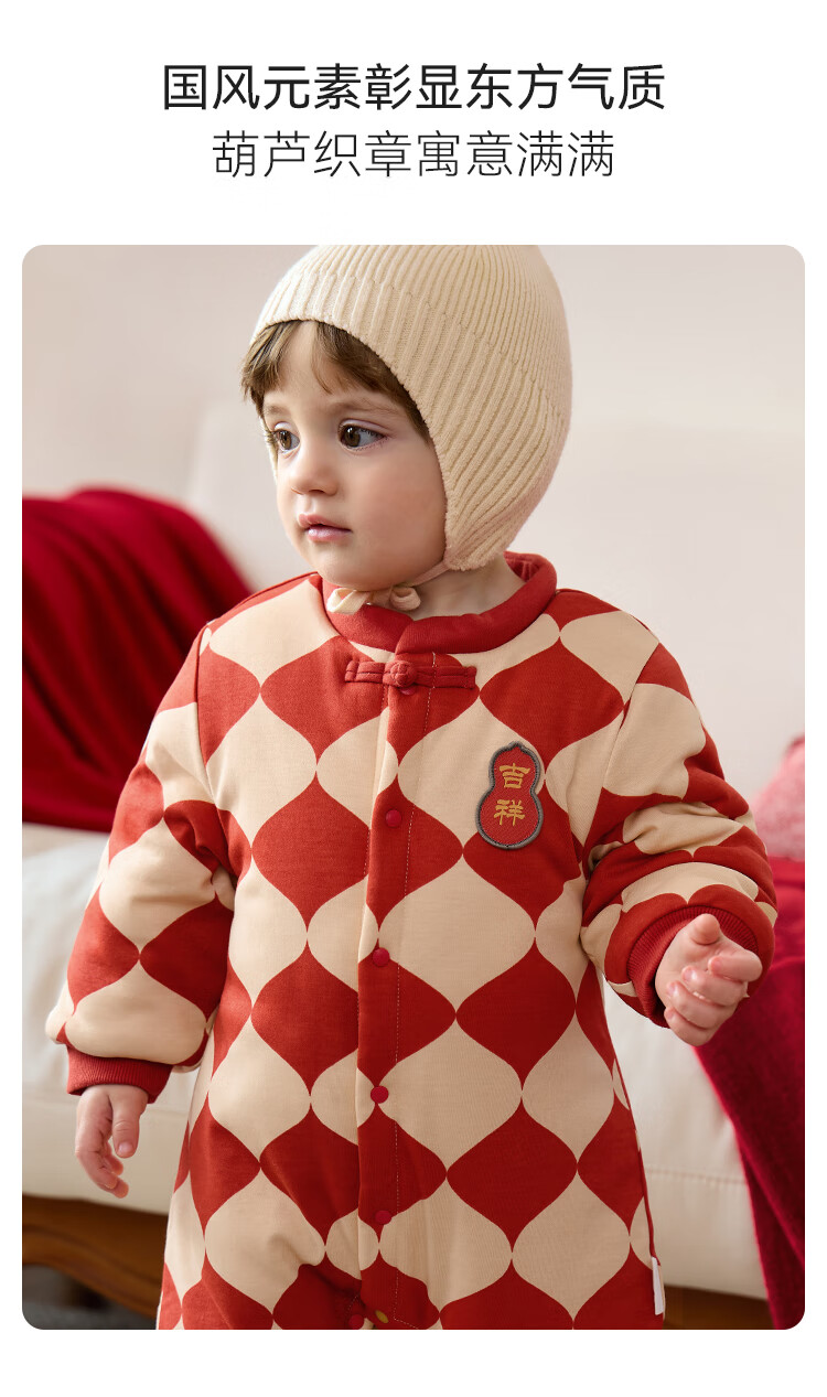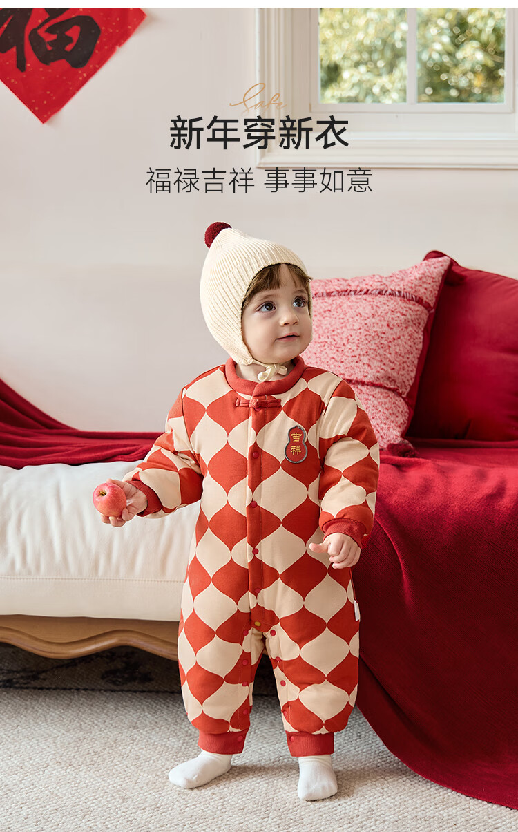 Babylove clearance baby cotton clothes winter one-piece clothespin cotton Chinese style infant and toddler New Year's greeting clothes Ha Yi Fulu Jixiang Fulu Jixiang 90cm