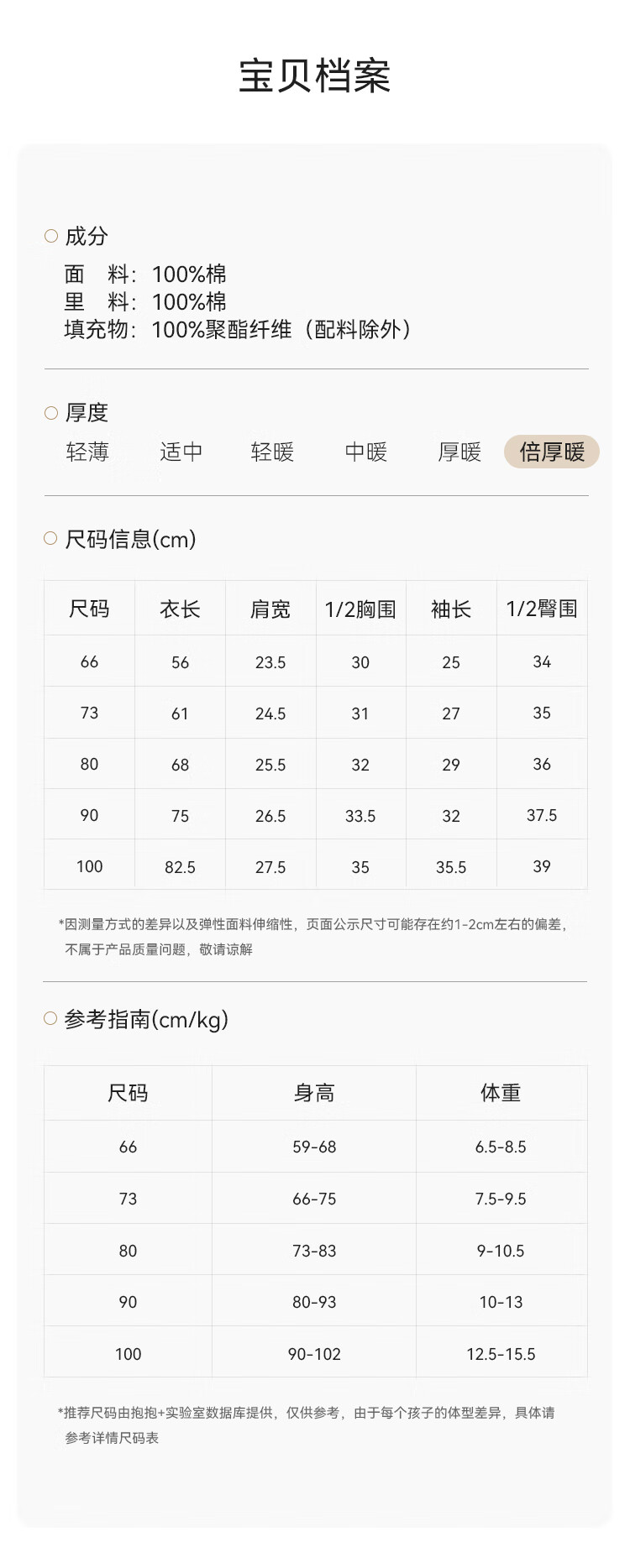 Size (cm) 42 44 46 48 50