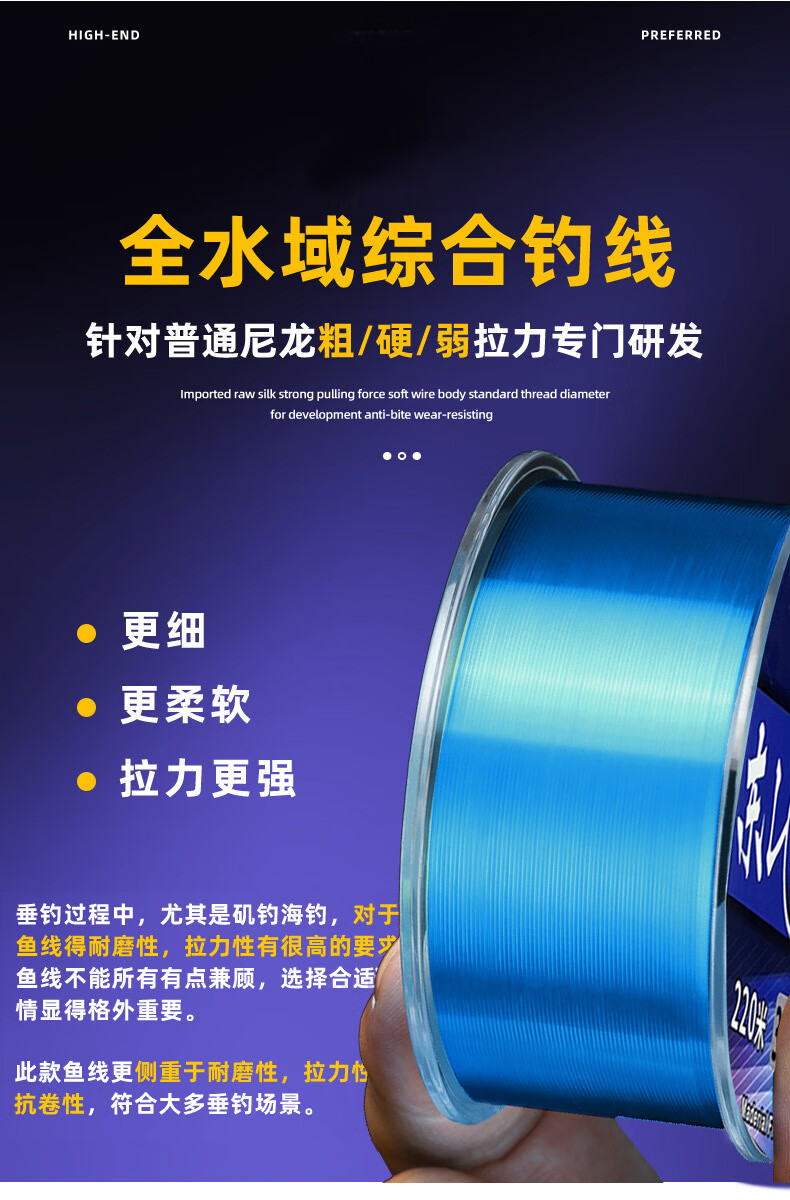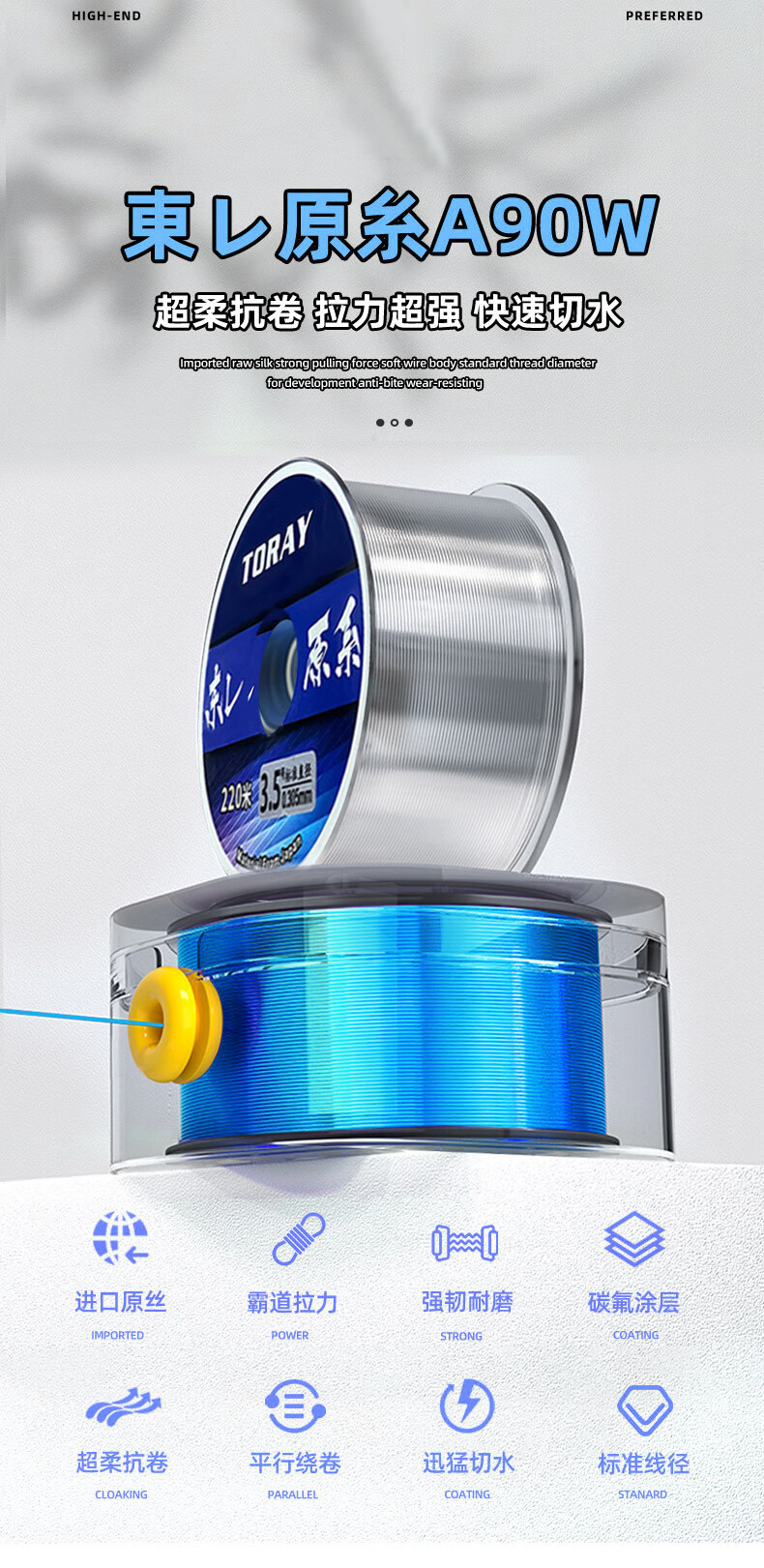 Japan imported fishing line main line super strong super soft sub-line high-end Taiwan fishing lure nylon line raw silk 220 meters buy one get one free Toray raw silk-Lake Blue 8.0