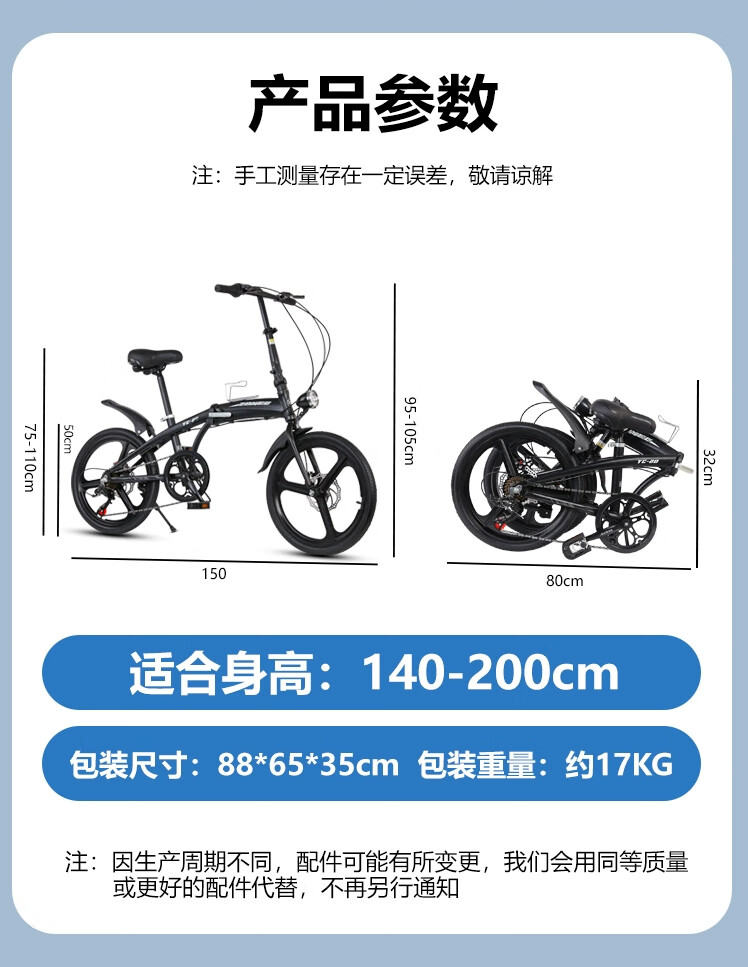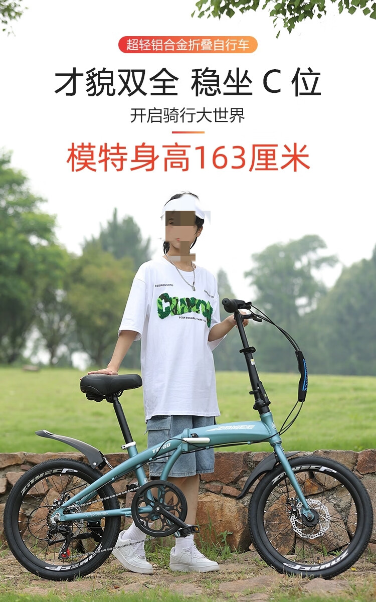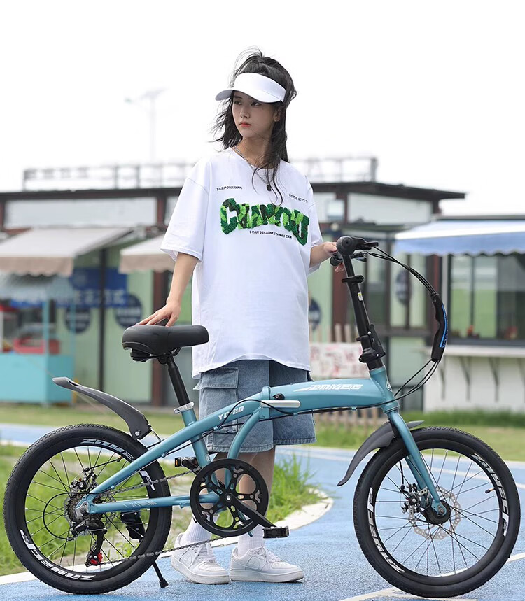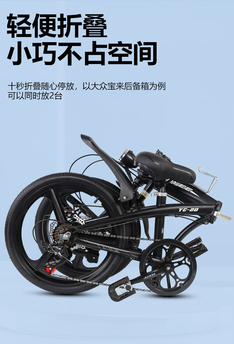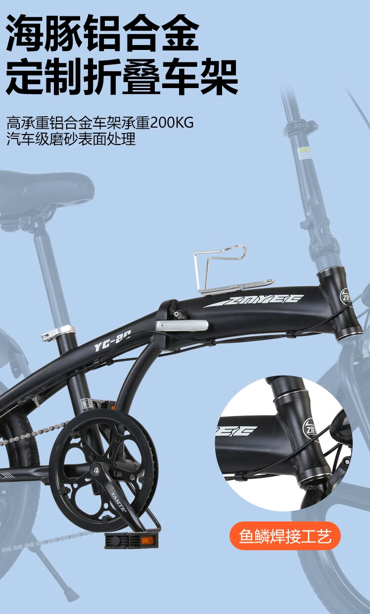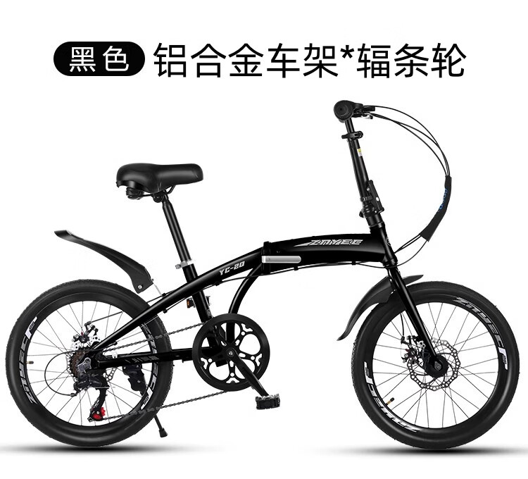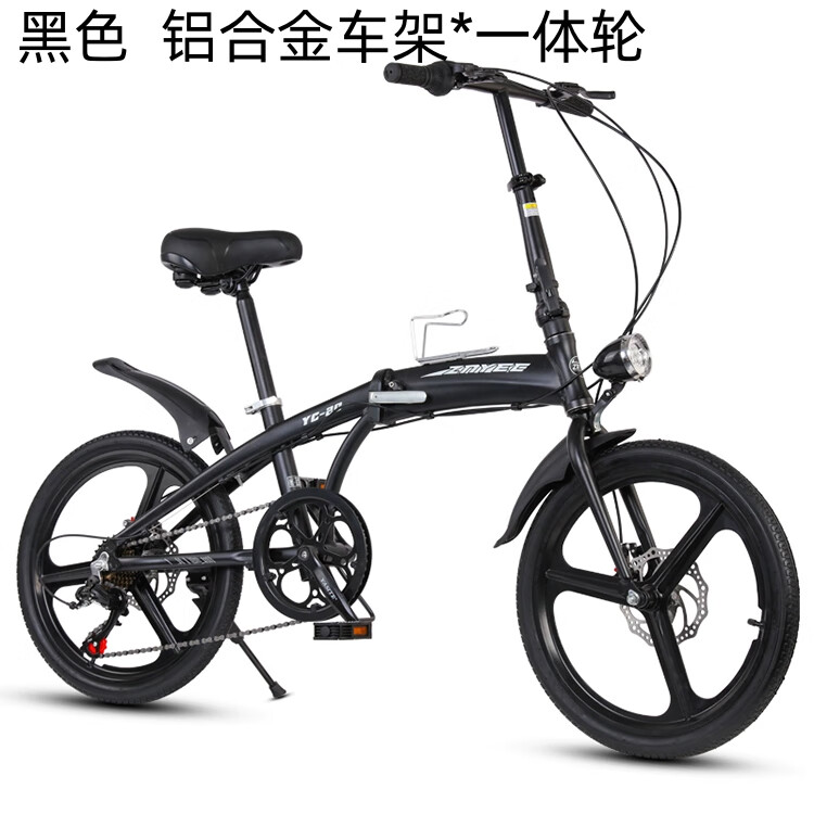 DOMNT aluminum alloy folding bicycle for adult male and female middle school students, ultra-light and portable mini small wheel leisure bicycle, matte black + one-piece wheel + aluminum alloy frame